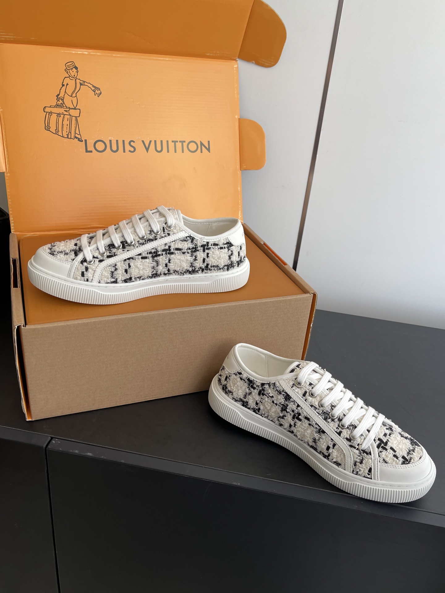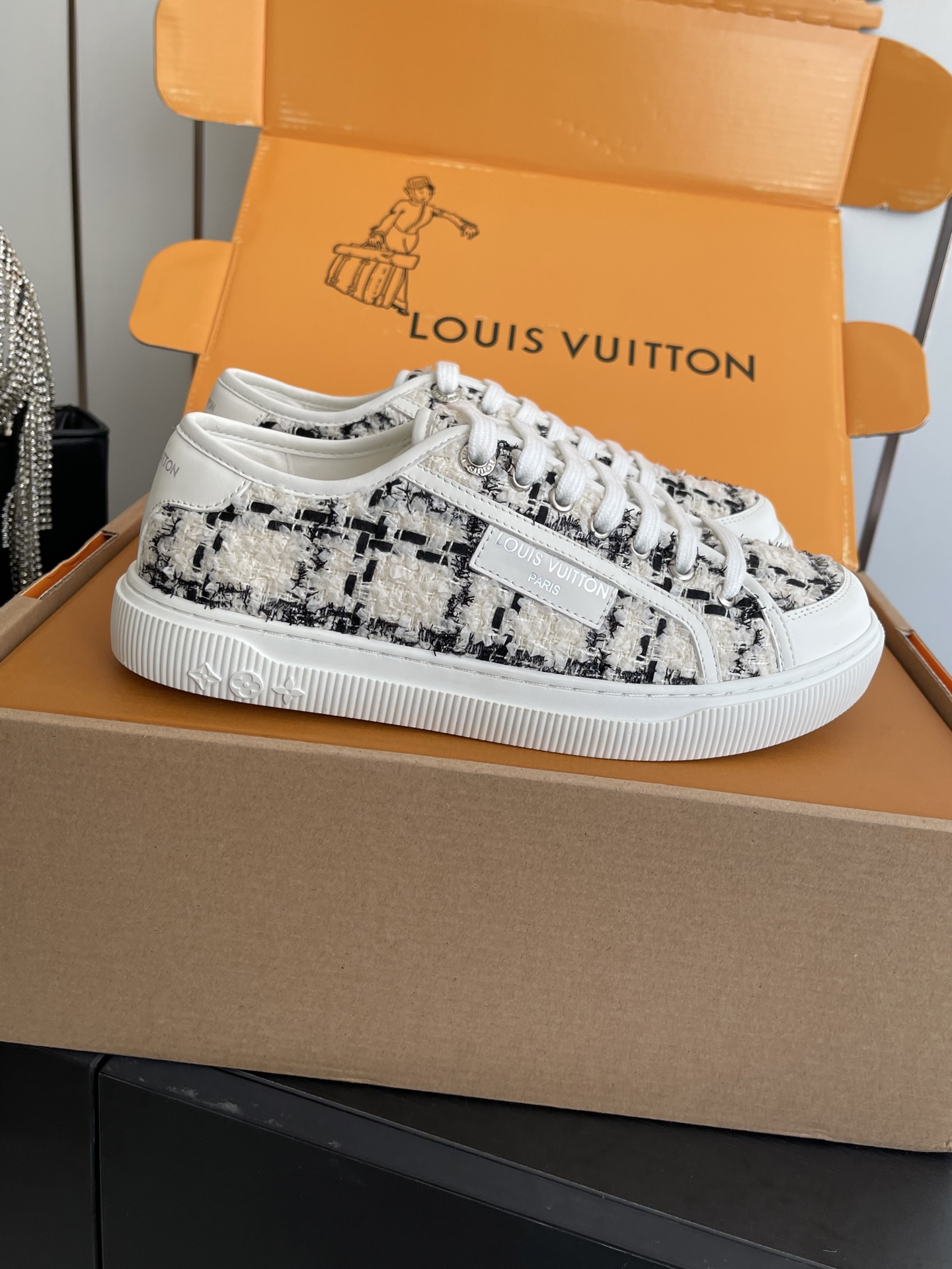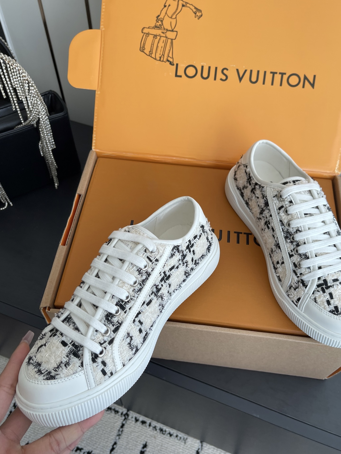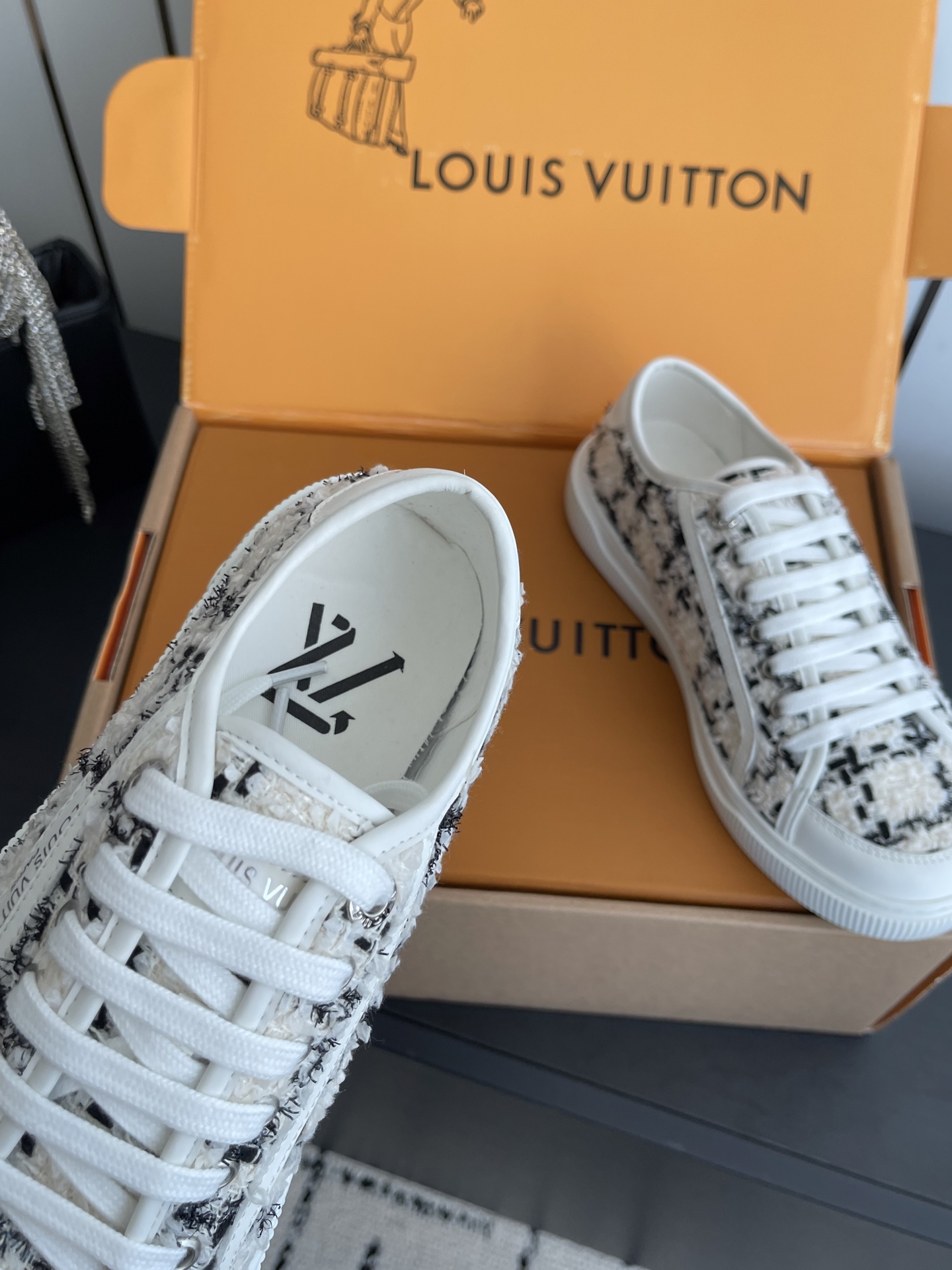 这款鞋子是AAAAA 1:1 质量 (非常棒). 使用了和原版一模一样的材料. 商标部分也保持了和路易威登/Louis Vuitton一样. 图片拍摄是实物鞋子拍摄, 您所收到的实物保证和我们图片一模一样.