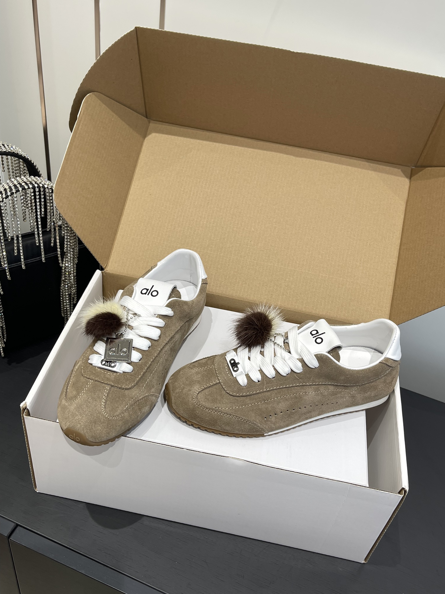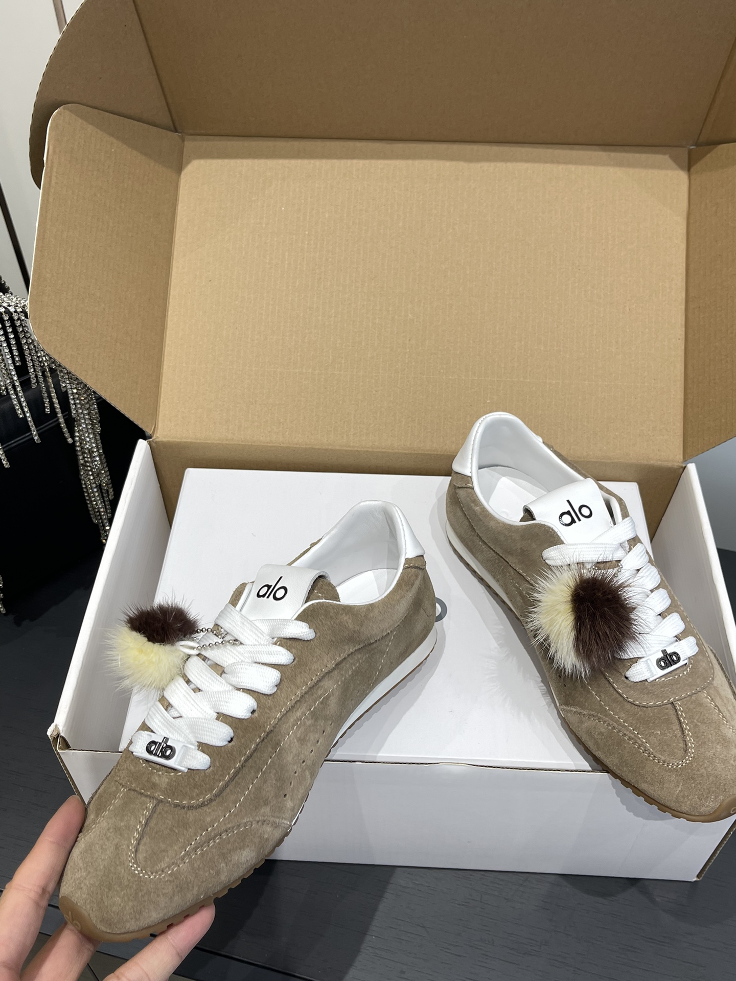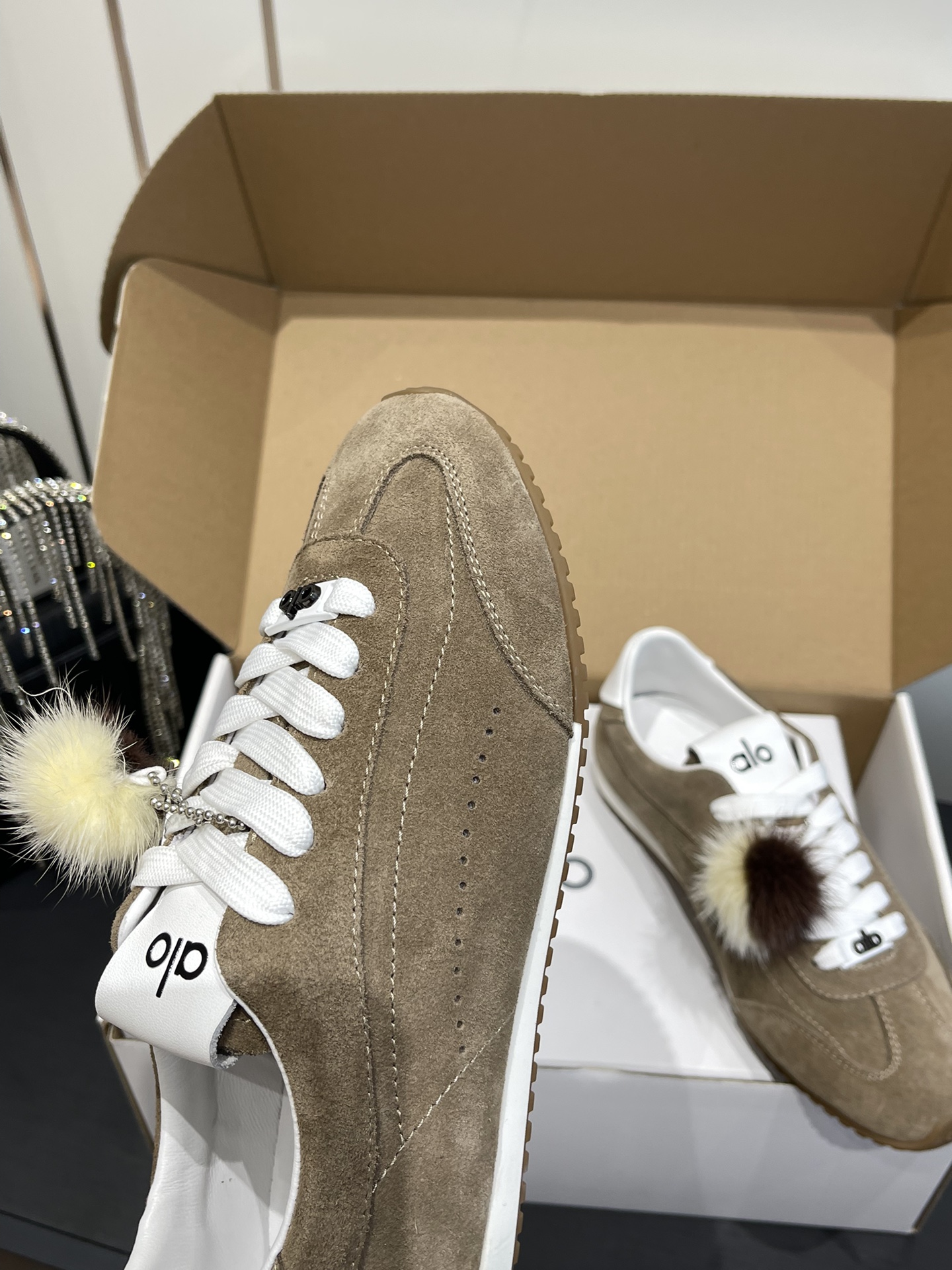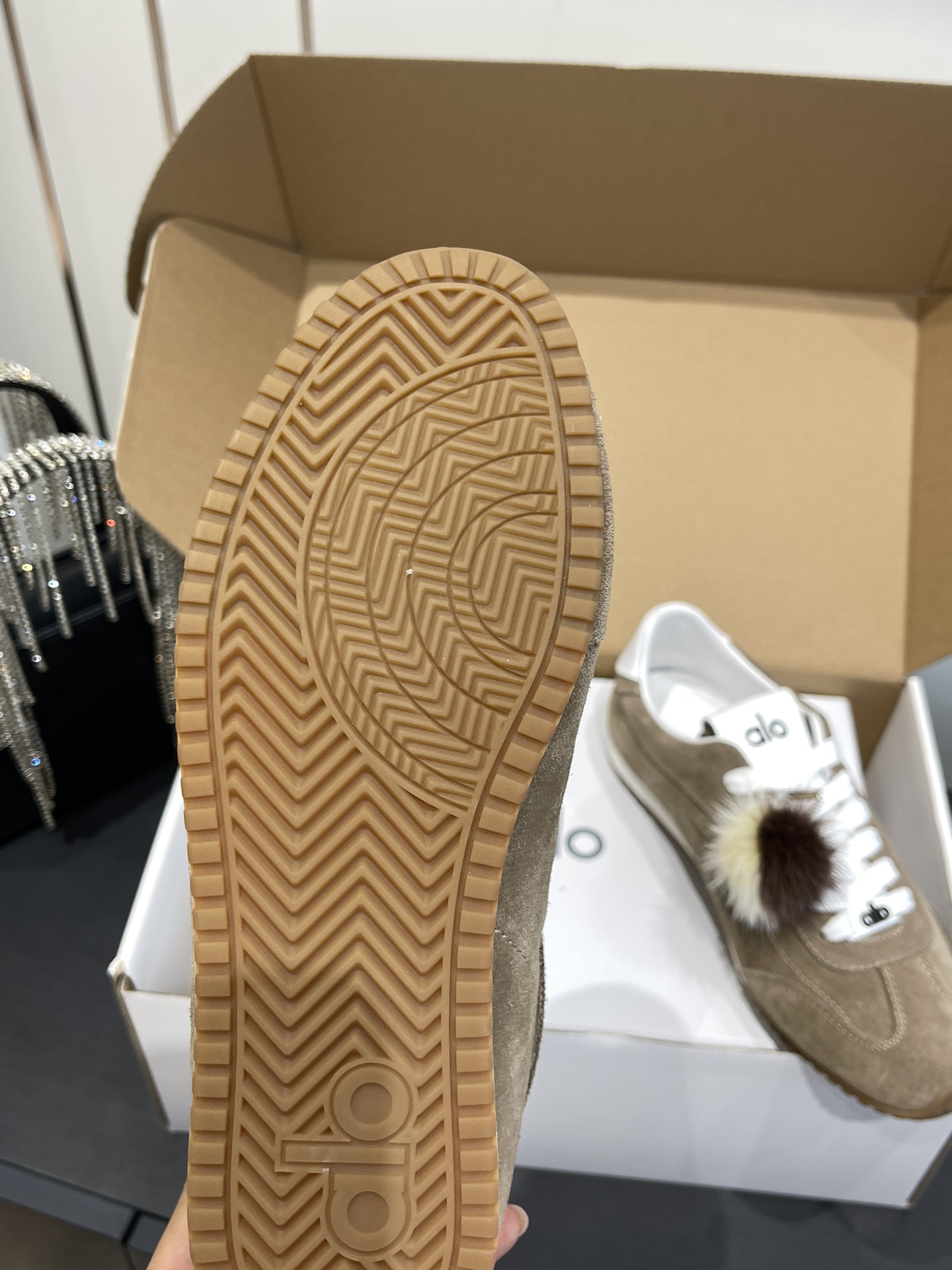 这款鞋子是AAAAA 1:1 质量 (非常棒). 使用了和原版一模一样的材料. 商标部分也保持了和Alo Yoga一样. 图片拍摄是实物鞋子拍摄, 您所收到的实物保证和我们图片一模一样.