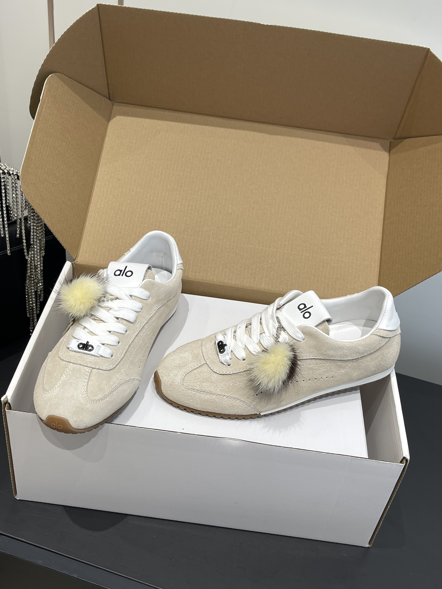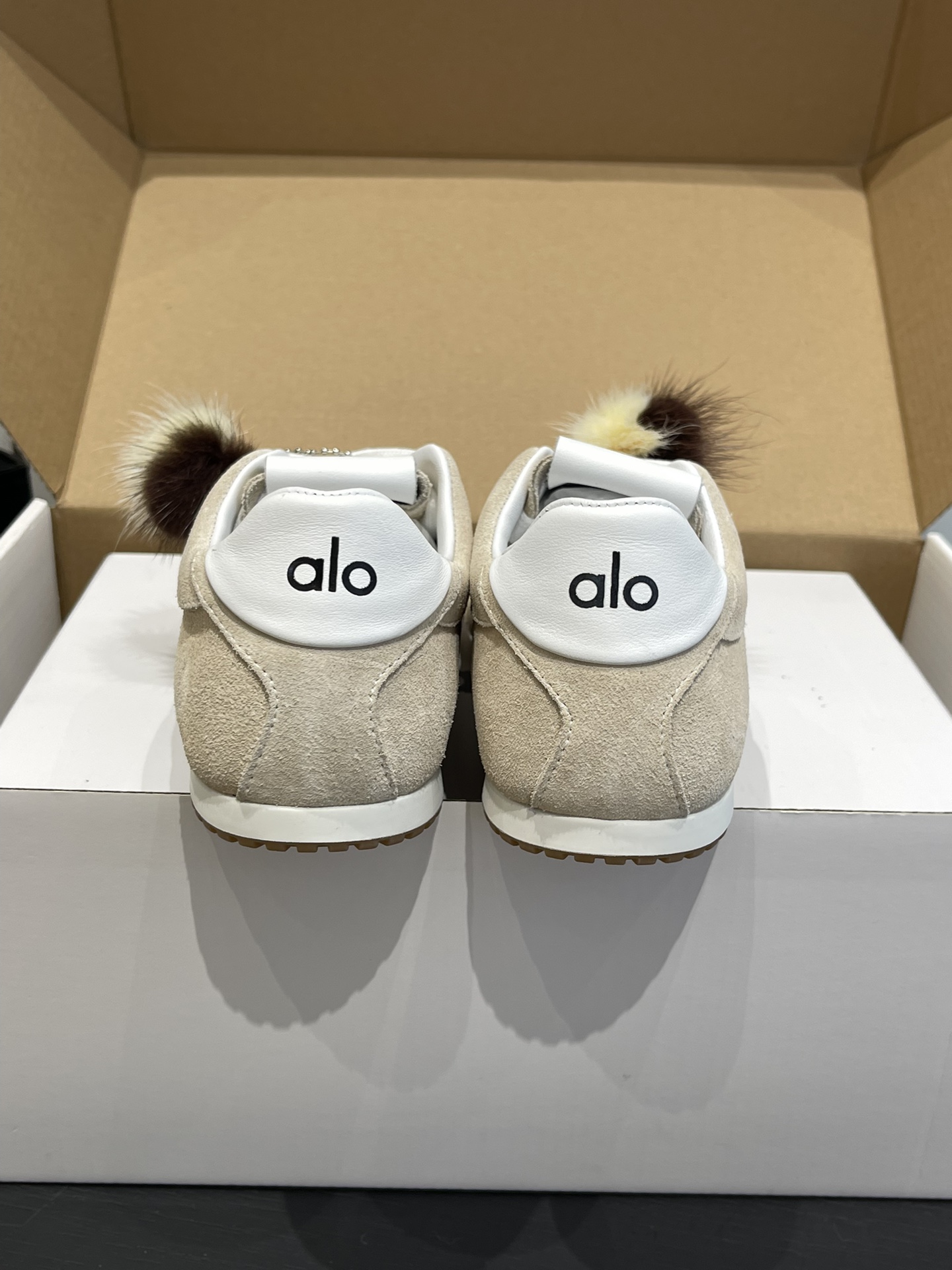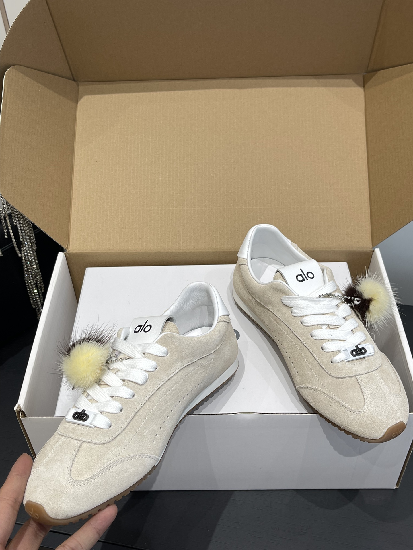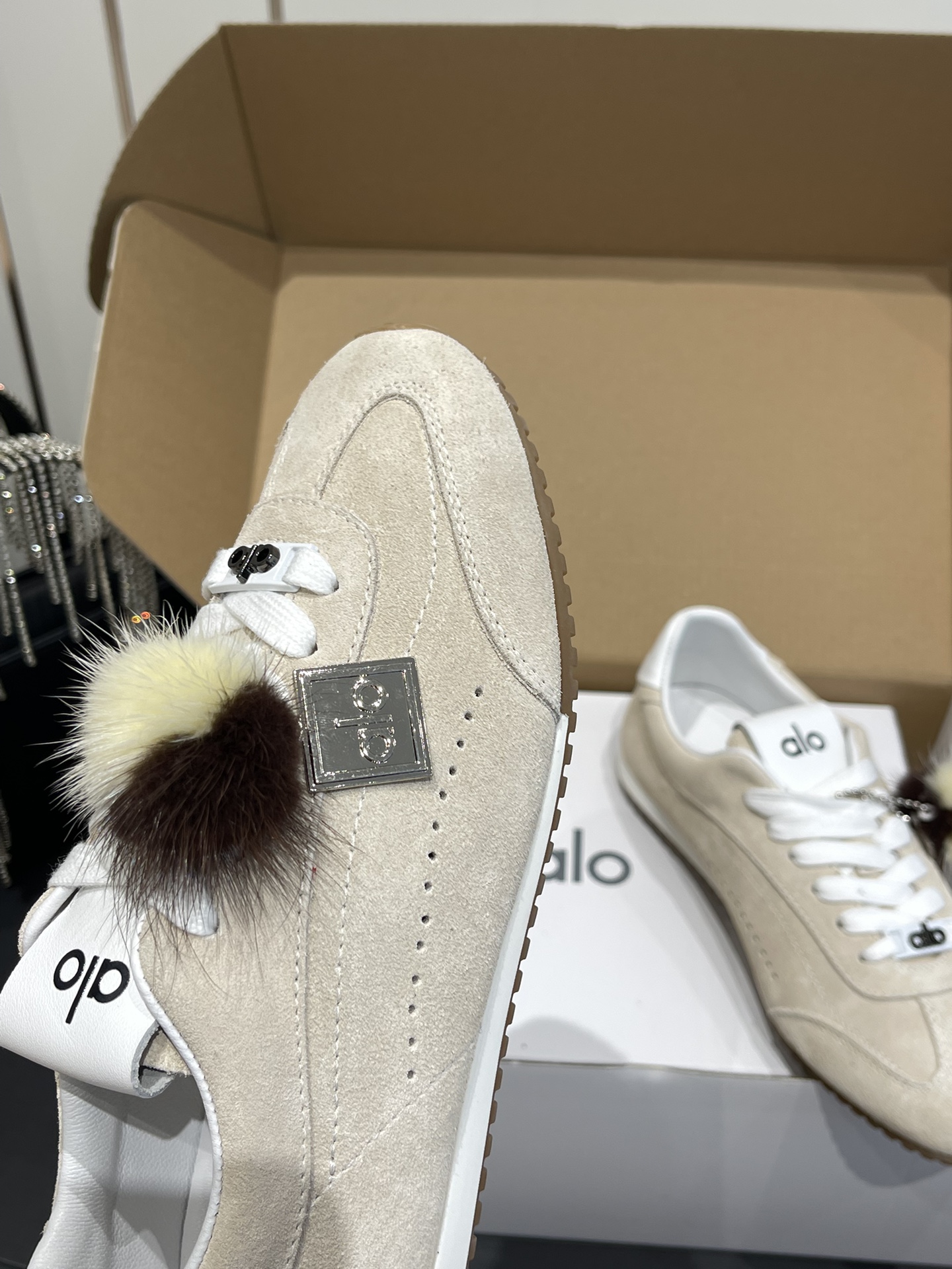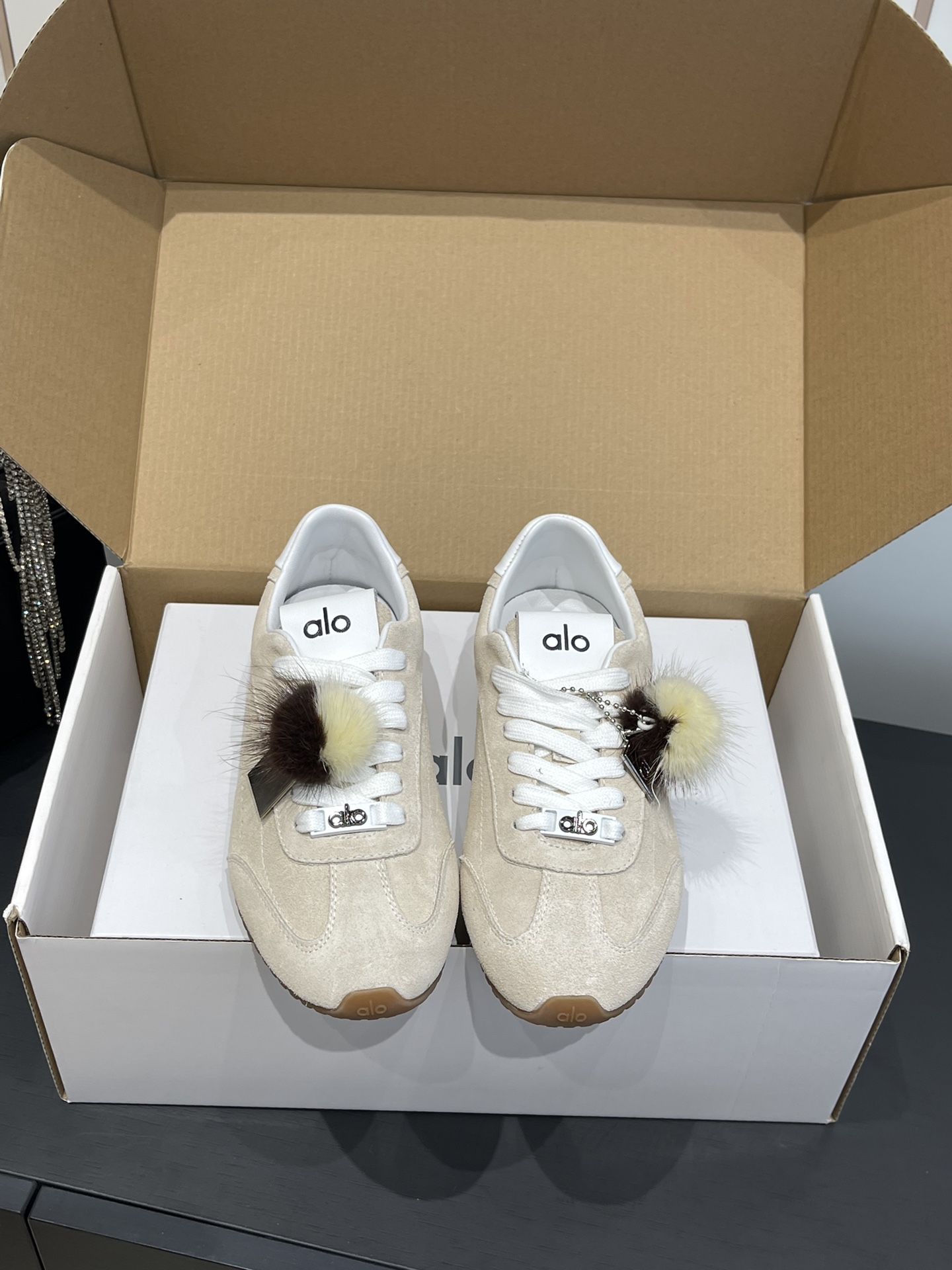 这款鞋子是AAAAA 1:1 质量 (非常棒). 使用了和原版一模一样的材料. 商标部分也保持了和Alo Yoga一样. 图片拍摄是实物鞋子拍摄, 您所收到的实物保证和我们图片一模一样.