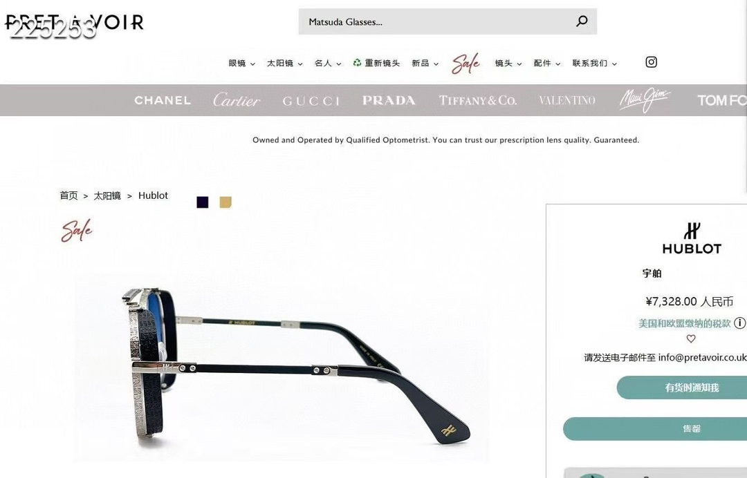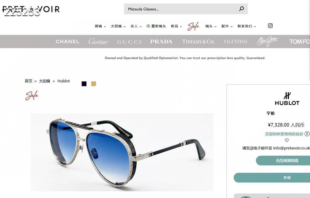 这款太阳眼镜是AAAAA 1:1 质量 (非常棒). 使用了和原版一模一样的材料. 商标部分也保持了和Hublot一样. 图片拍摄是实物太阳眼镜拍摄, 您所收到的实物保证和我们图片一模一样.