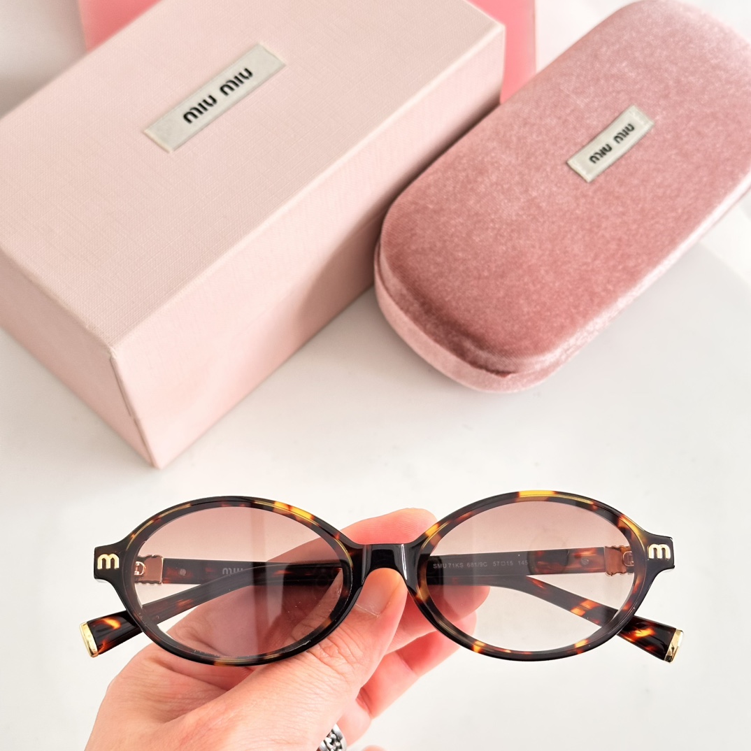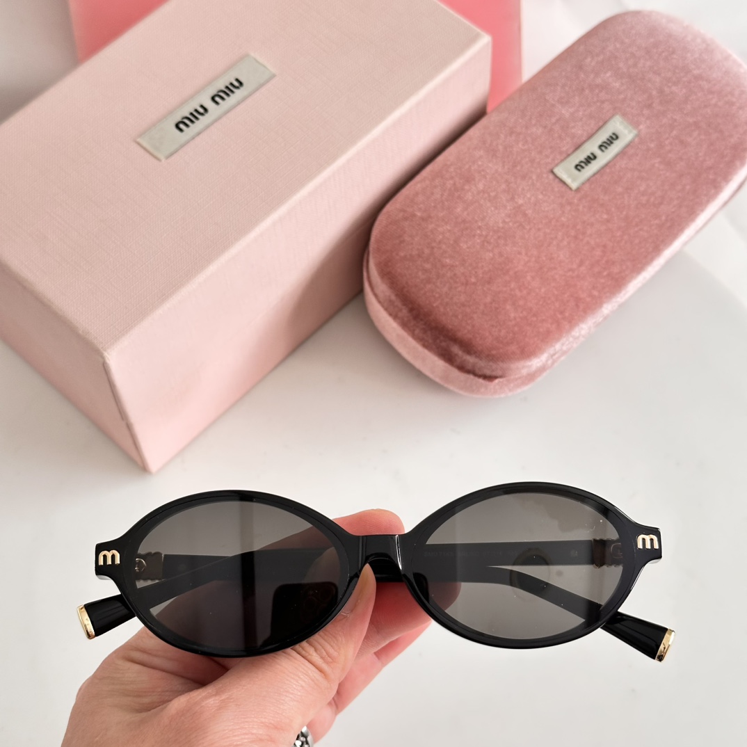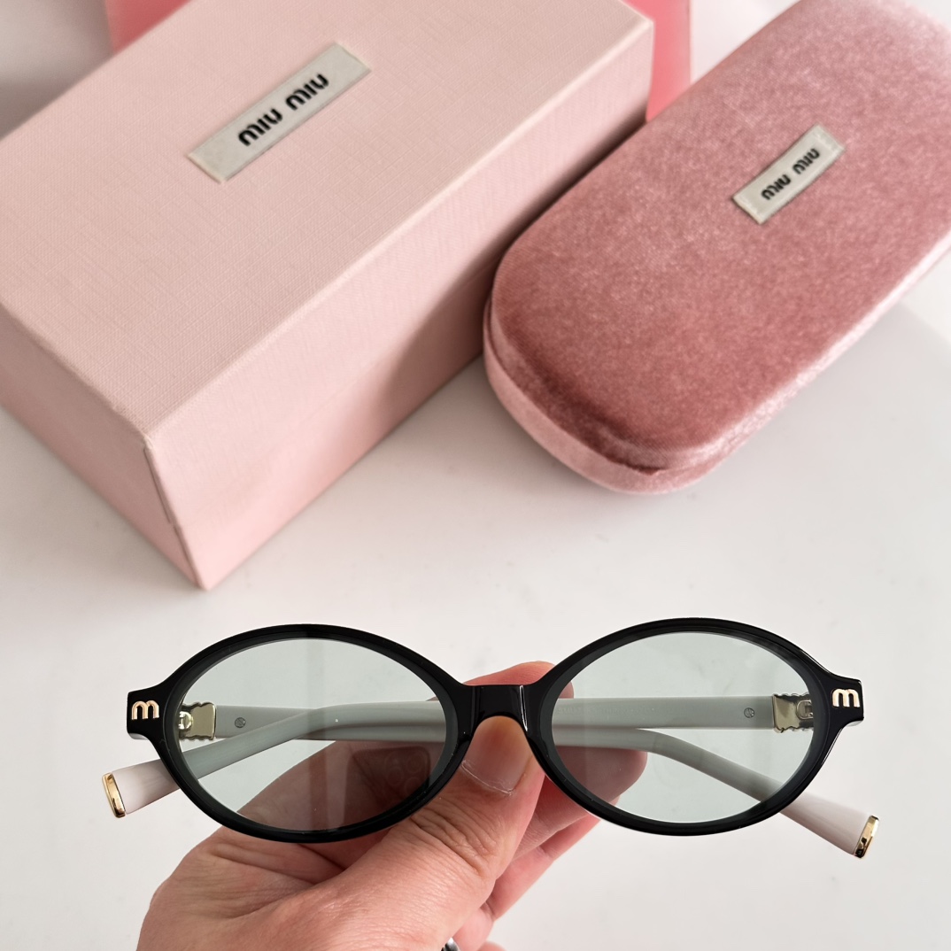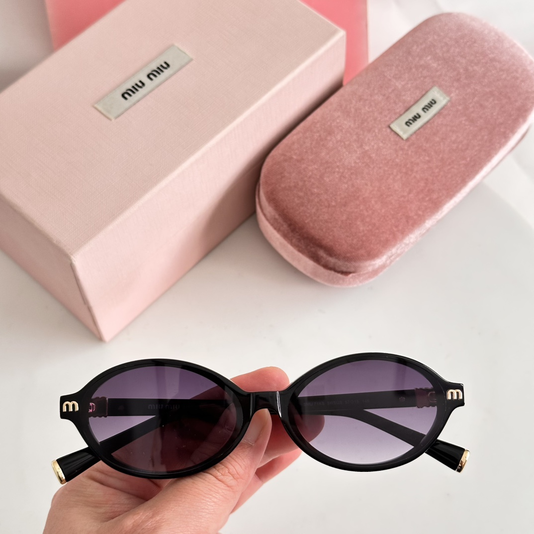 这款太阳眼镜是AAAAA 1:1 质量 (非常棒). 使用了和原版一模一样的材料. 商标部分也保持了和缪缪/Miu Miu一样. 图片拍摄是实物太阳眼镜拍摄, 您所收到的实物保证和我们图片一模一样.