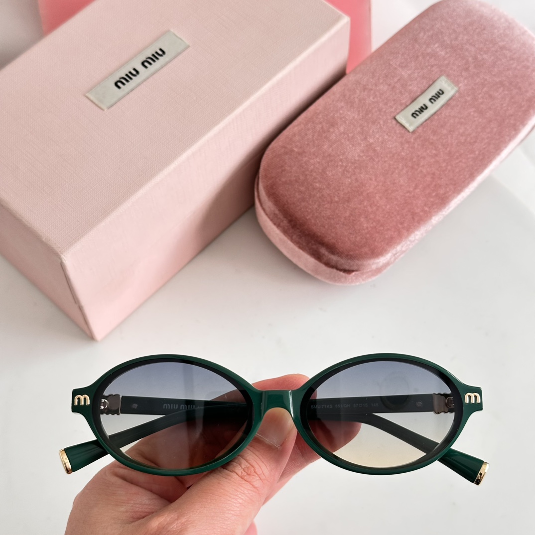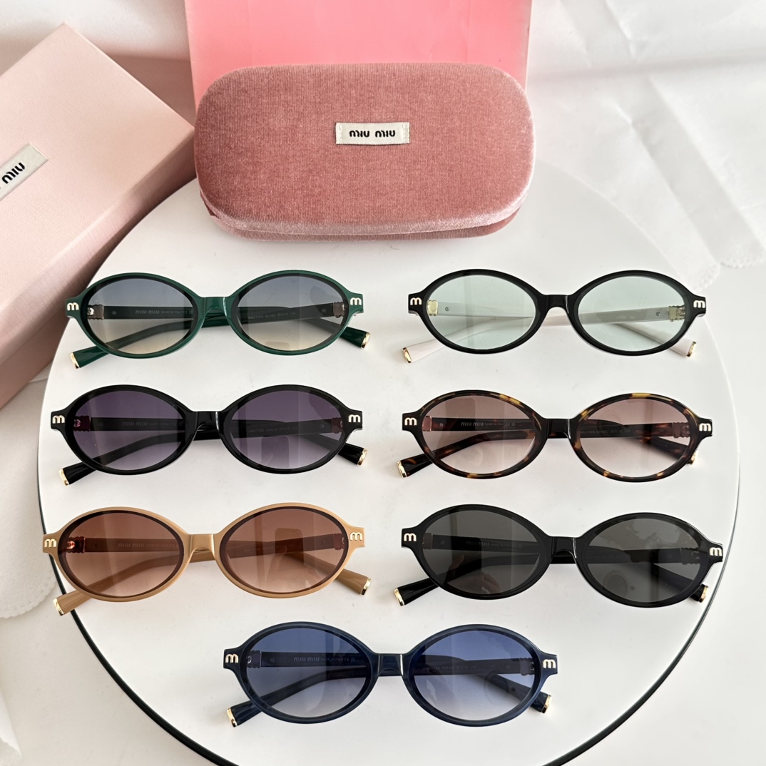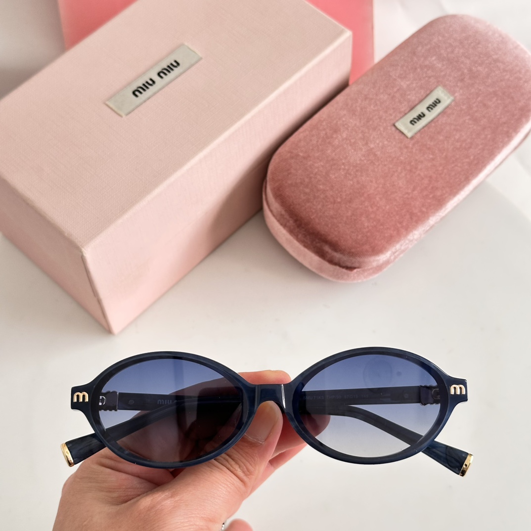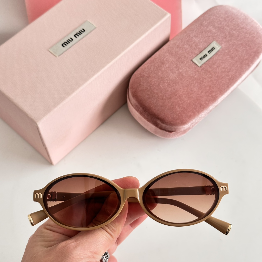 这款太阳眼镜是AAAAA 1:1 质量 (非常棒). 使用了和原版一模一样的材料. 商标部分也保持了和缪缪/Miu Miu一样. 图片拍摄是实物太阳眼镜拍摄, 您所收到的实物保证和我们图片一模一样.