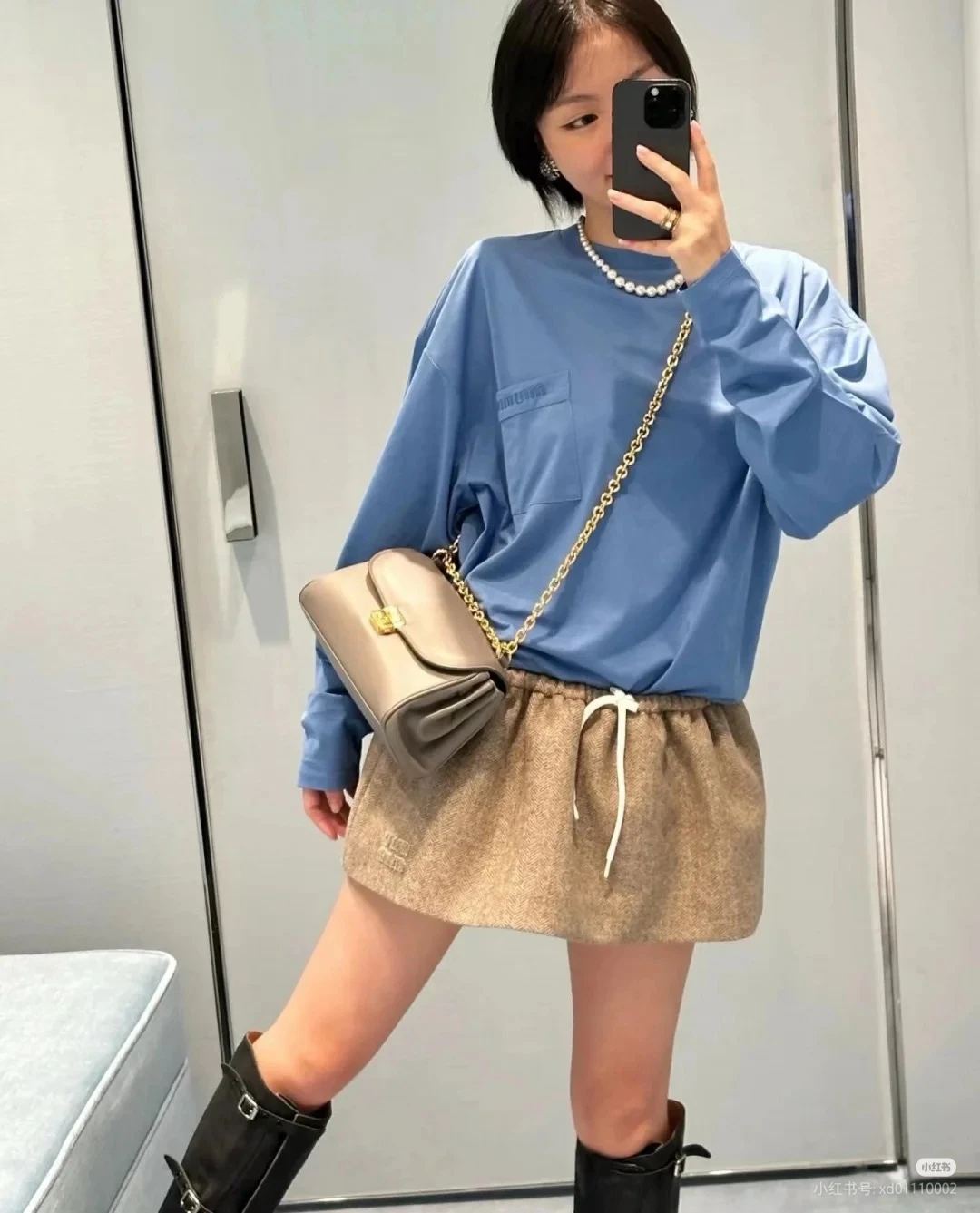 这款衣服是AAAAA 1:1 质量 (非常棒). 使用了和原版一模一样的材料. 商标部分也保持了和缪缪/Miu Miu一样. 图片拍摄是实物衣服拍摄, 您所收到的实物保证和我们图片一模一样.