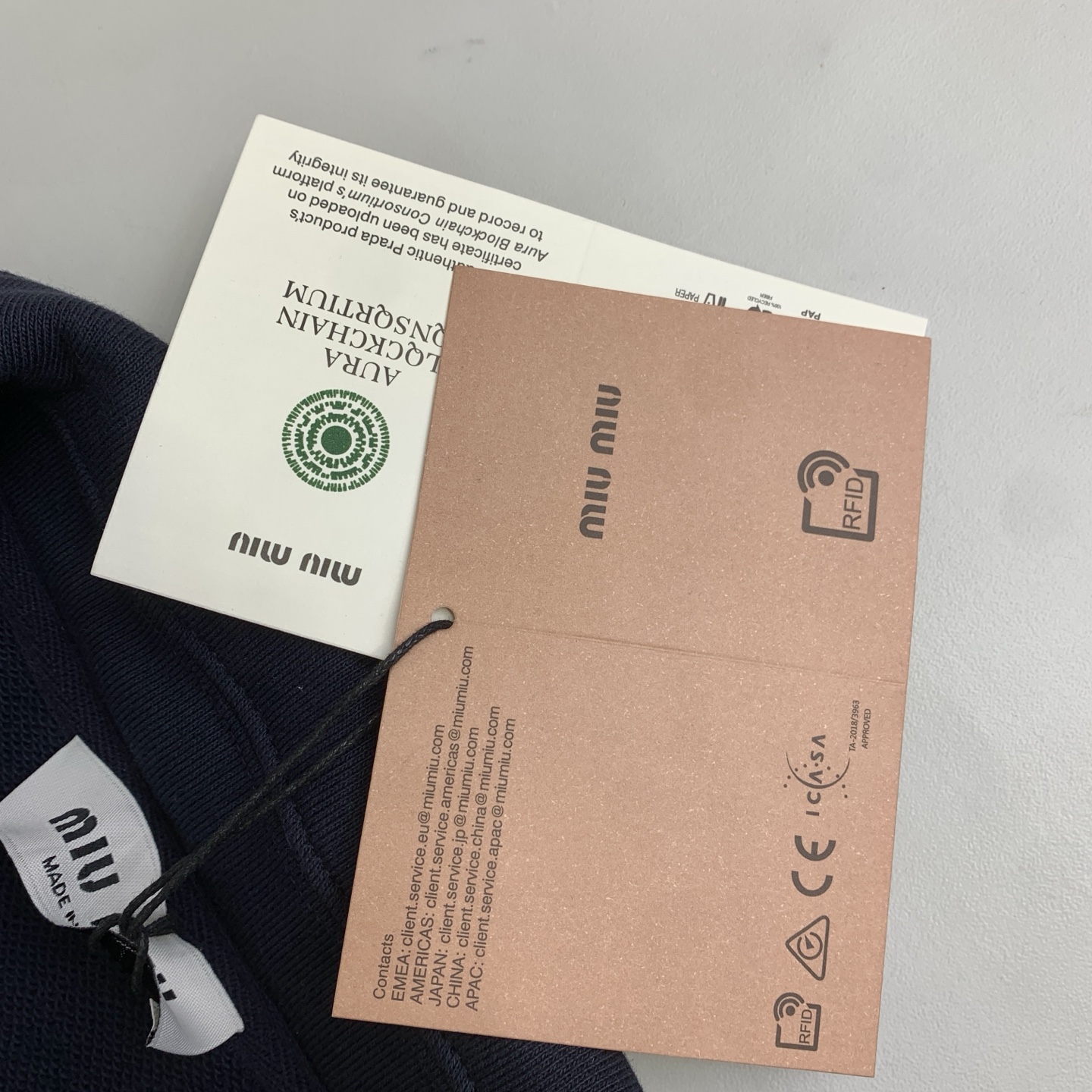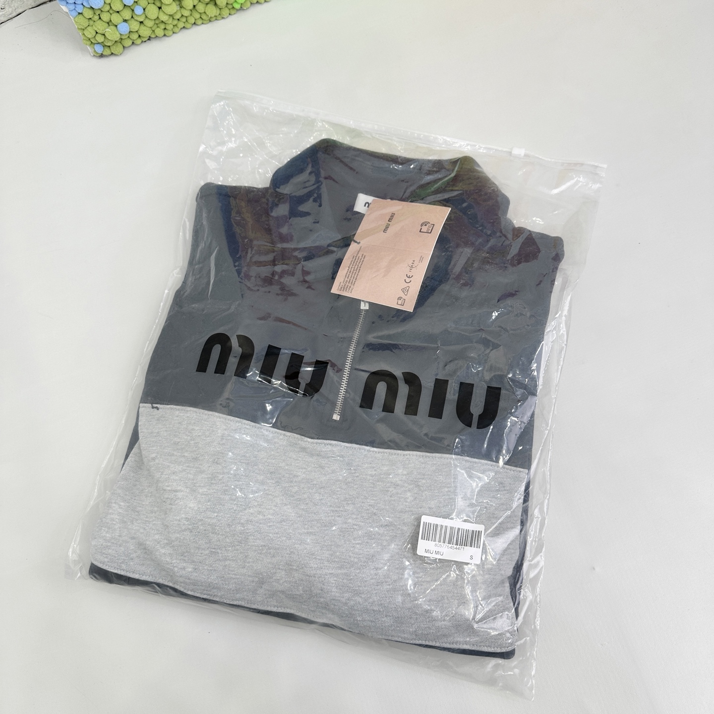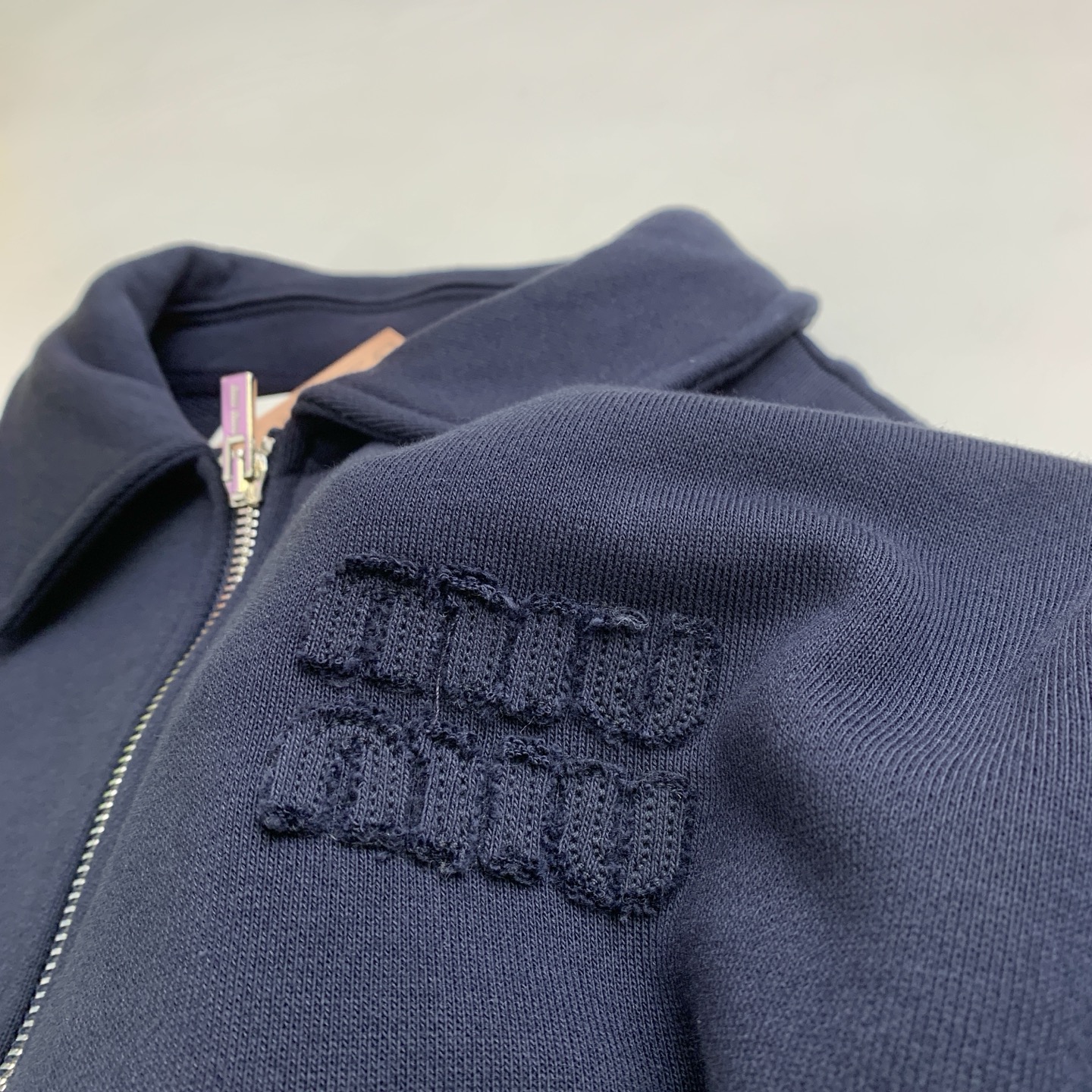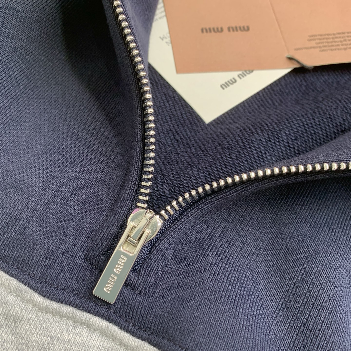这款衣服是AAAAA 1:1 质量 (非常棒). 使用了和原版一模一样的材料. 商标部分也保持了和缪缪/Miu Miu一样. 图片拍摄是实物衣服拍摄, 您所收到的实物保证和我们图片一模一样.