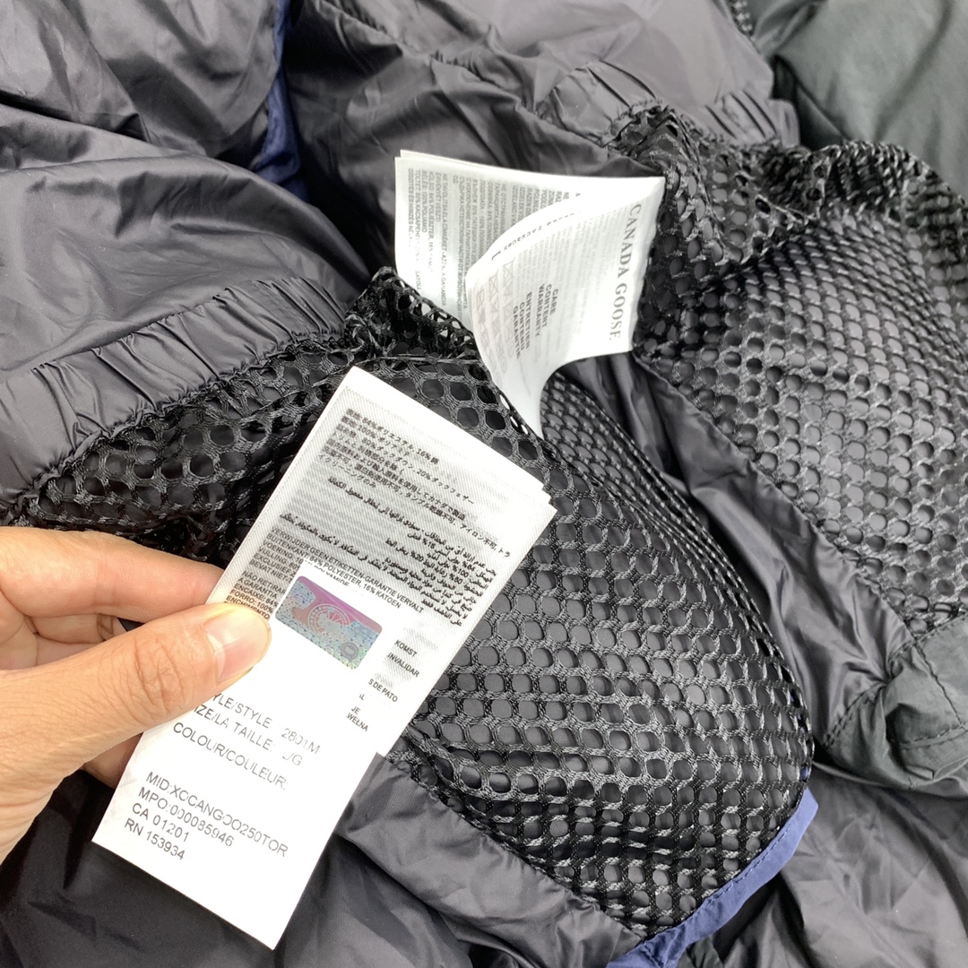 这款衣服是AAAAA 1:1 质量 (非常棒). 使用了和原版一模一样的材料. 商标部分也保持了和Canada Goose一样. 图片拍摄是实物衣服拍摄, 您所收到的实物保证和我们图片一模一样.