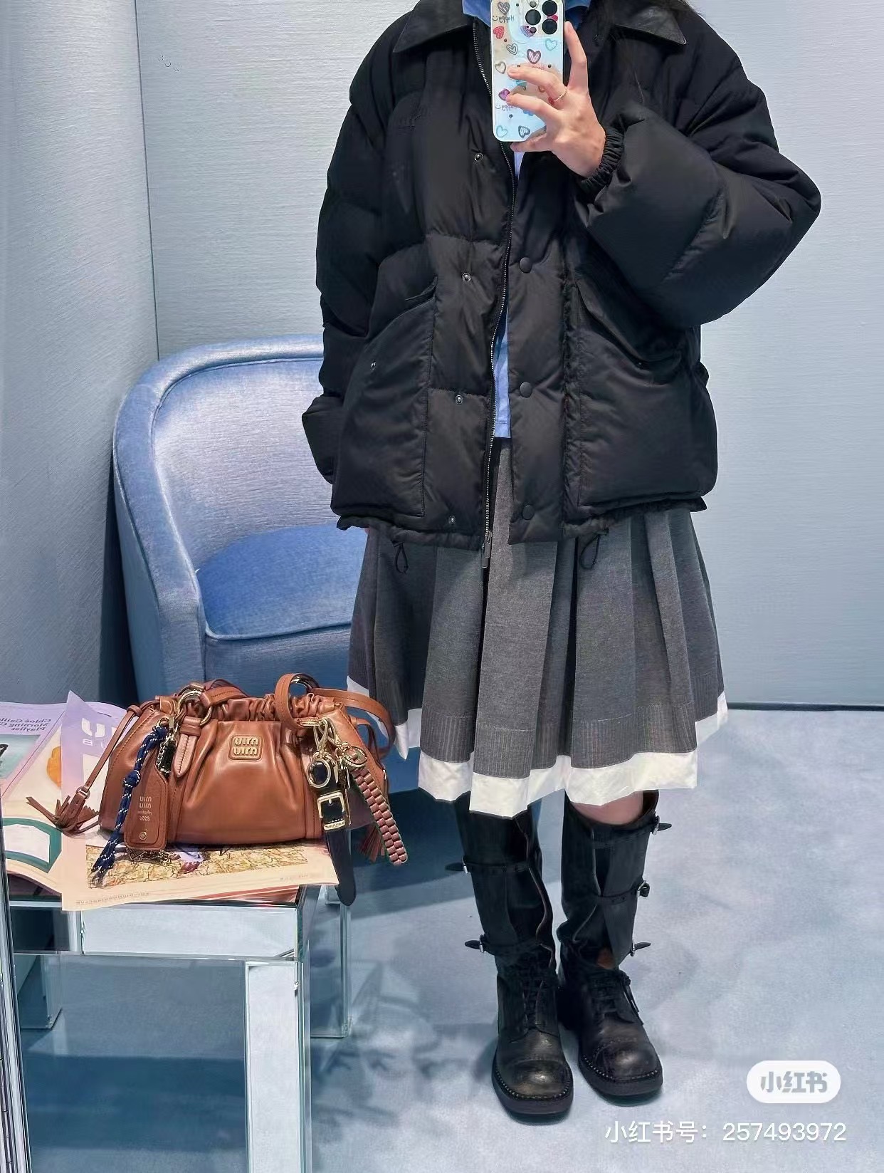 这款衣服是AAAAA 1:1 质量 (非常棒). 使用了和原版一模一样的材料. 商标部分也保持了和缪缪/Miu Miu一样. 图片拍摄是实物衣服拍摄, 您所收到的实物保证和我们图片一模一样.