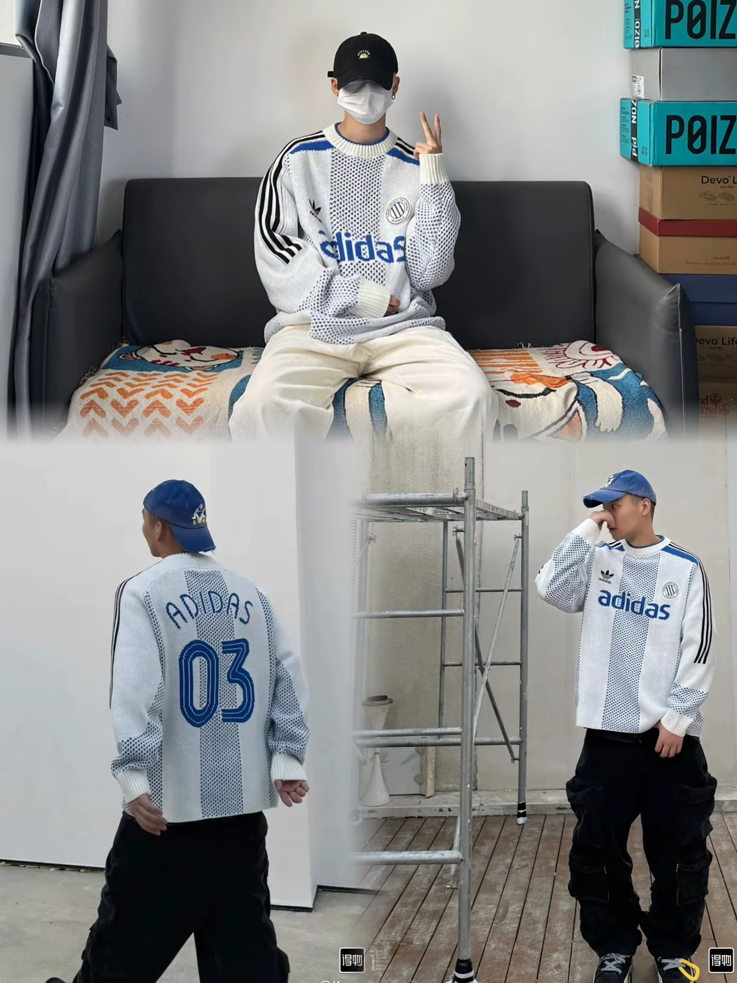 这款衣服是AAAAA 1:1 质量 (非常棒). 使用了和原版一模一样的材料. 商标部分也保持了和阿迪达斯/Adidas一样. 图片拍摄是实物衣服拍摄, 您所收到的实物保证和我们图片一模一样.