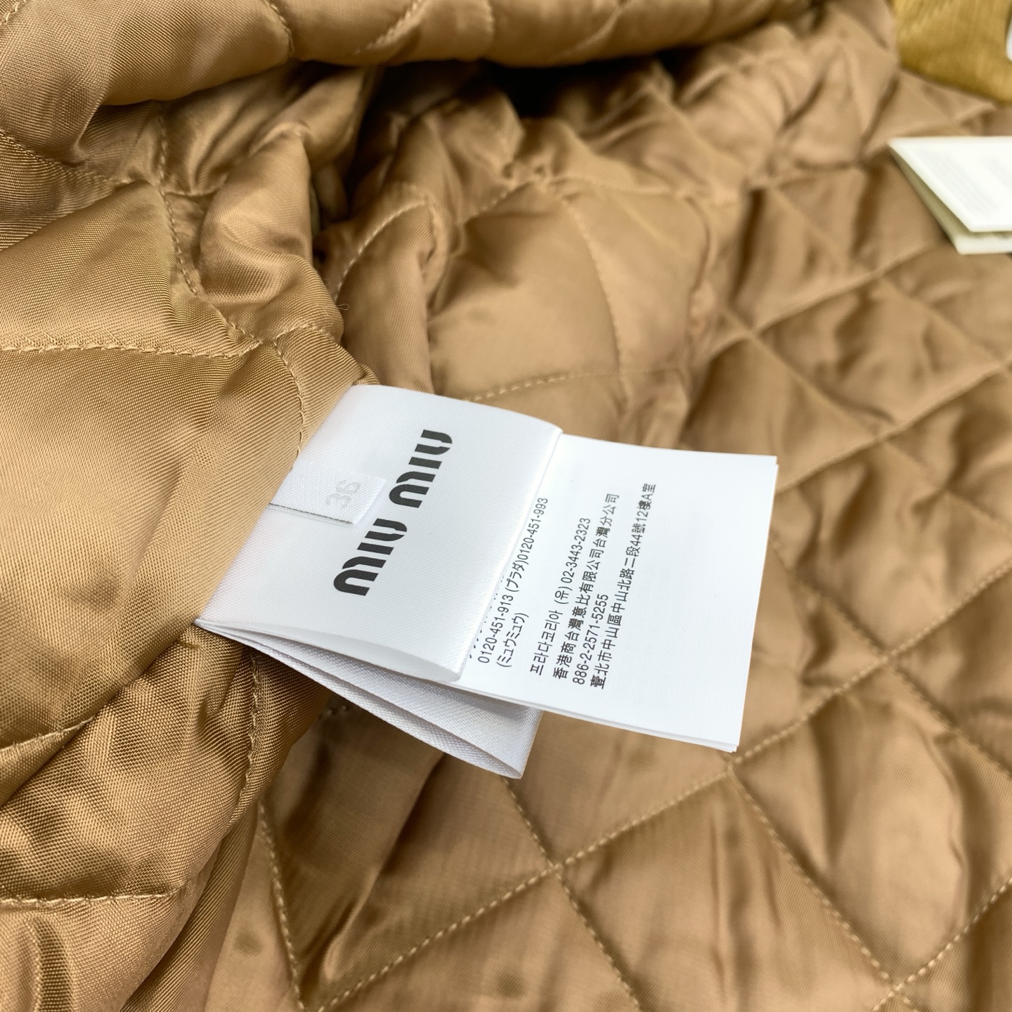这款衣服是AAAAA 1:1 质量 (非常棒). 使用了和原版一模一样的材料. 商标部分也保持了和缪缪/Miu Miu一样. 图片拍摄是实物衣服拍摄, 您所收到的实物保证和我们图片一模一样.