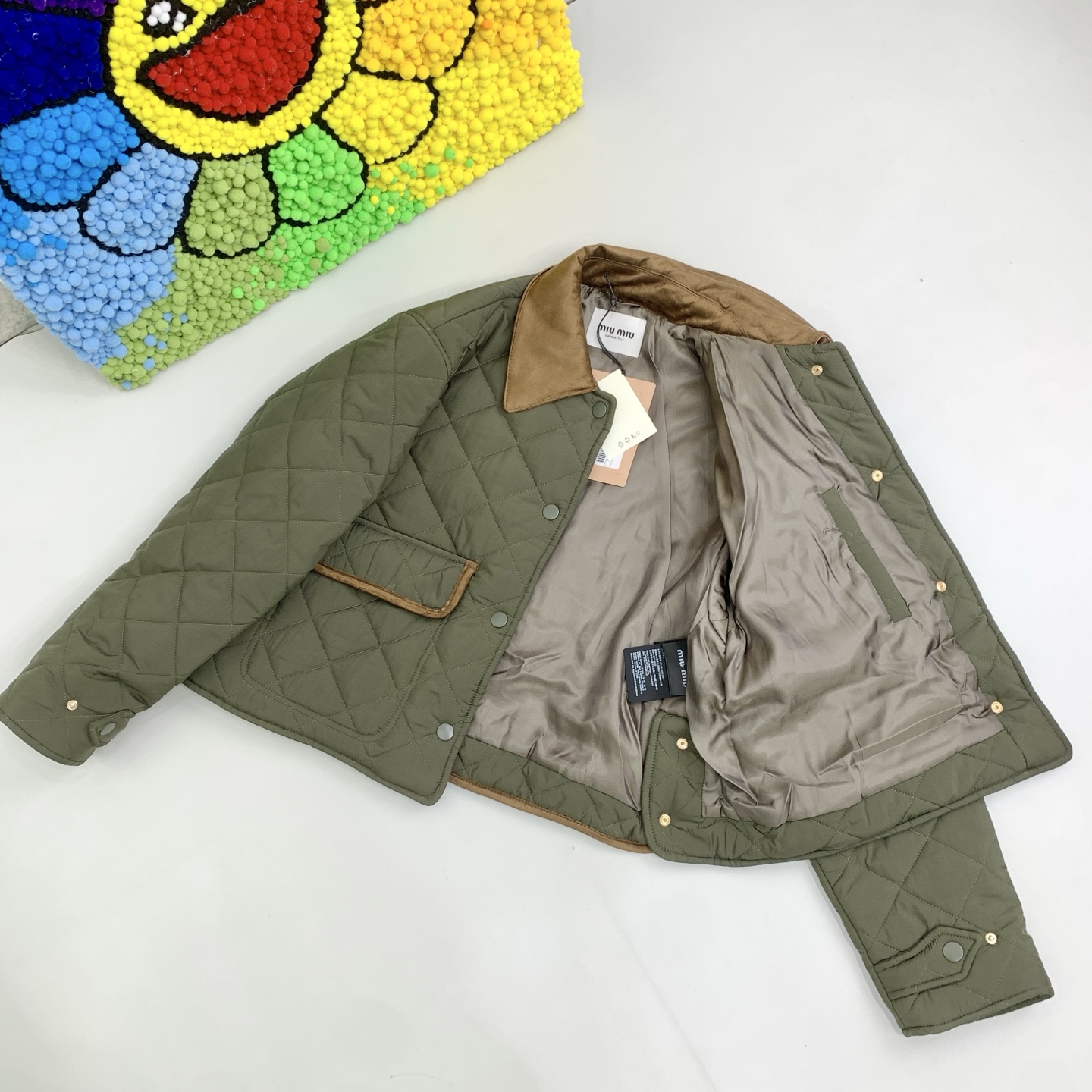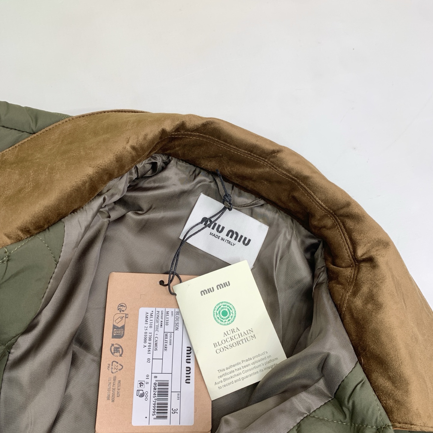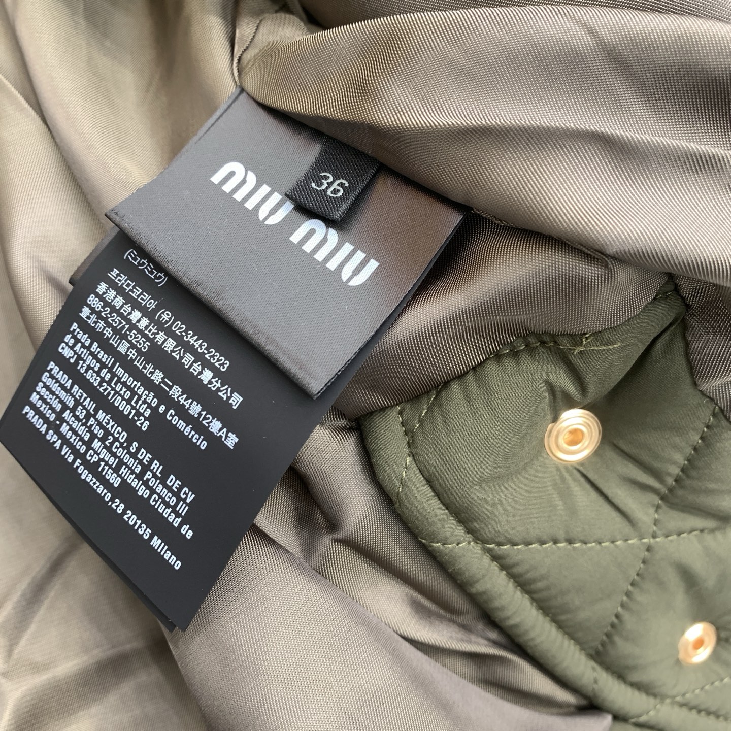 这款衣服是AAAAA 1:1 质量 (非常棒). 使用了和原版一模一样的材料. 商标部分也保持了和缪缪/Miu Miu一样. 图片拍摄是实物衣服拍摄, 您所收到的实物保证和我们图片一模一样.