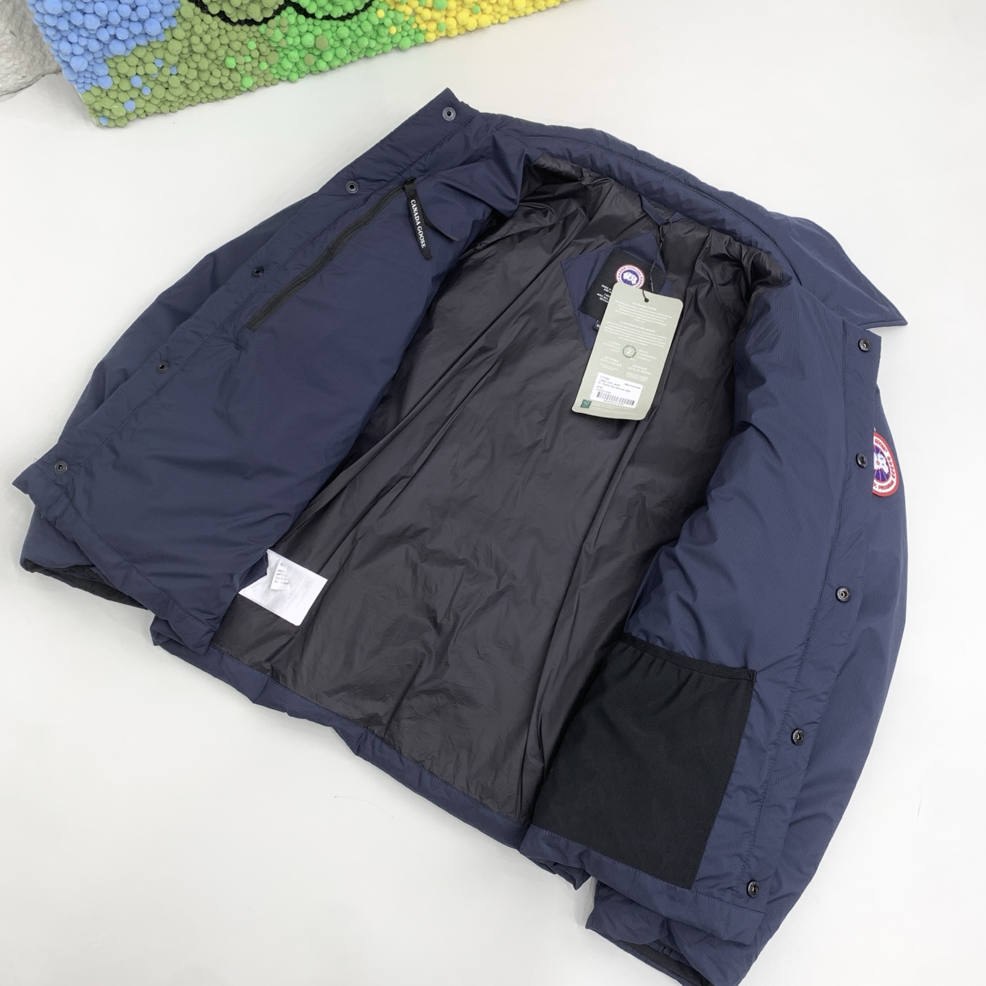 这款衣服是AAAAA 1:1 质量 (非常棒). 使用了和原版一模一样的材料. 商标部分也保持了和Canada Goose一样. 图片拍摄是实物衣服拍摄, 您所收到的实物保证和我们图片一模一样.