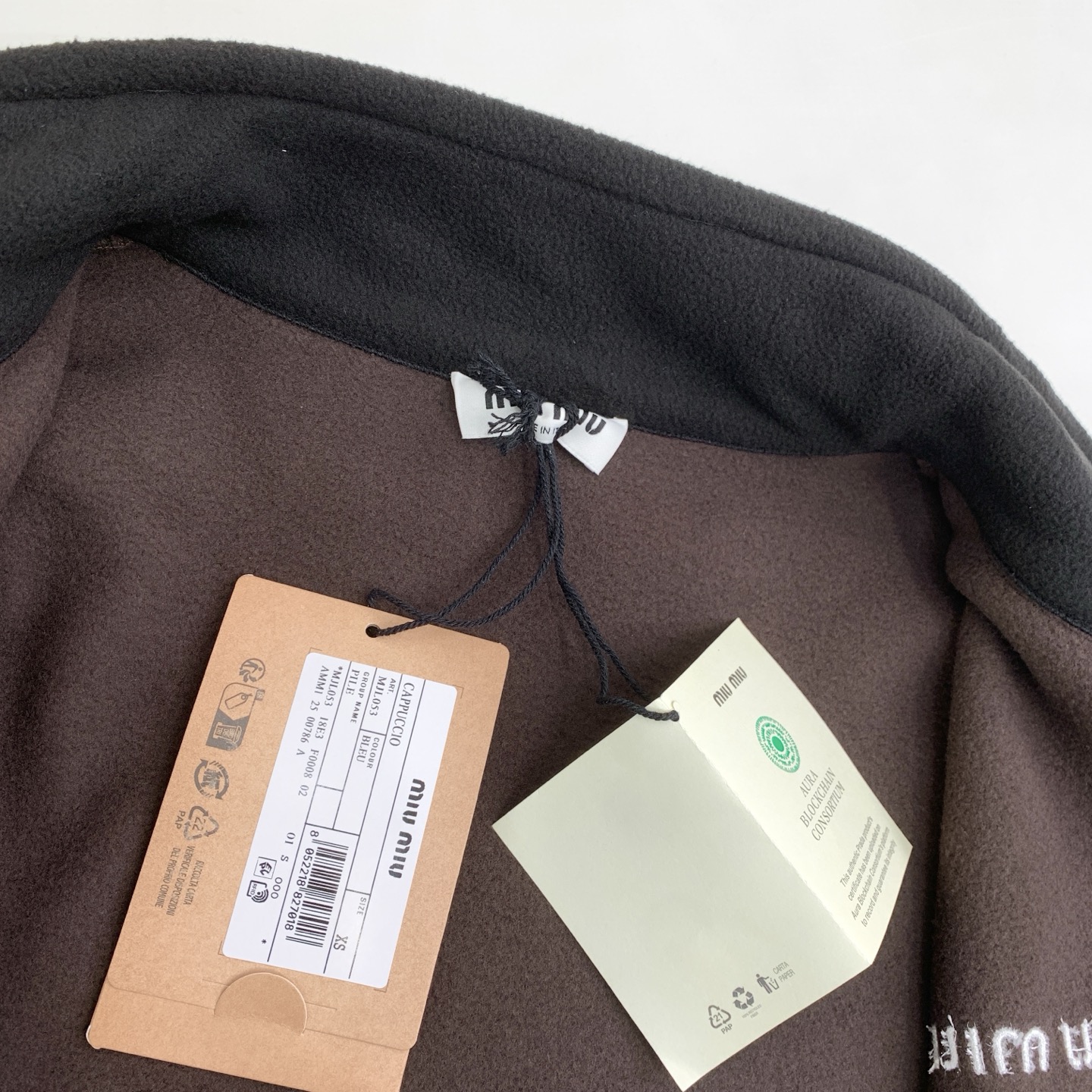 这款衣服是AAAAA 1:1 质量 (非常棒). 使用了和原版一模一样的材料. 商标部分也保持了和缪缪/Miu Miu一样. 图片拍摄是实物衣服拍摄, 您所收到的实物保证和我们图片一模一样.
