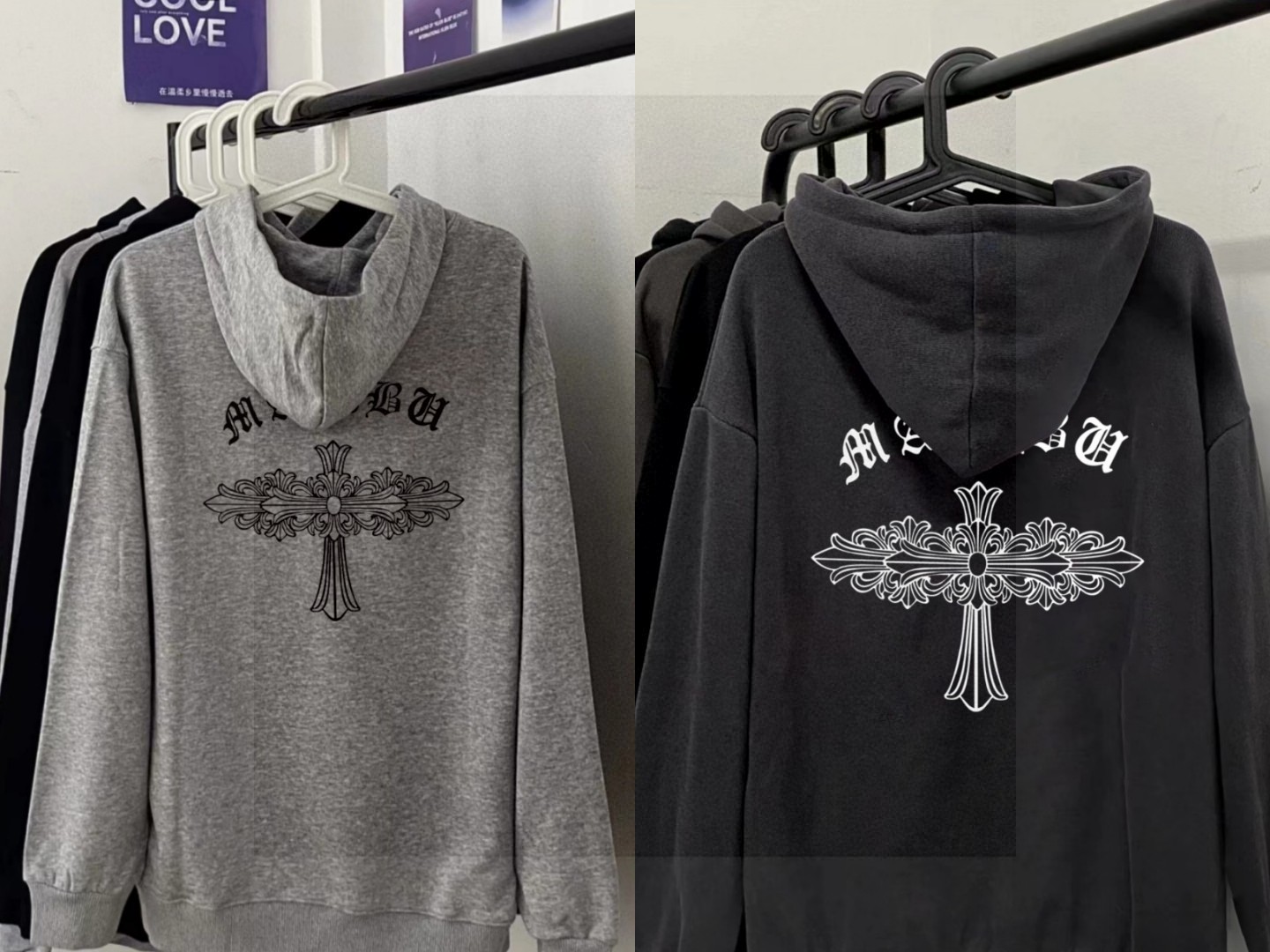 这款衣服是AAAAA 1:1 质量 (非常棒). 使用了和原版一模一样的材料. 商标部分也保持了和克罗心/Chrome Hearts一样. 图片拍摄是实物衣服拍摄, 您所收到的实物保证和我们图片一模一样.