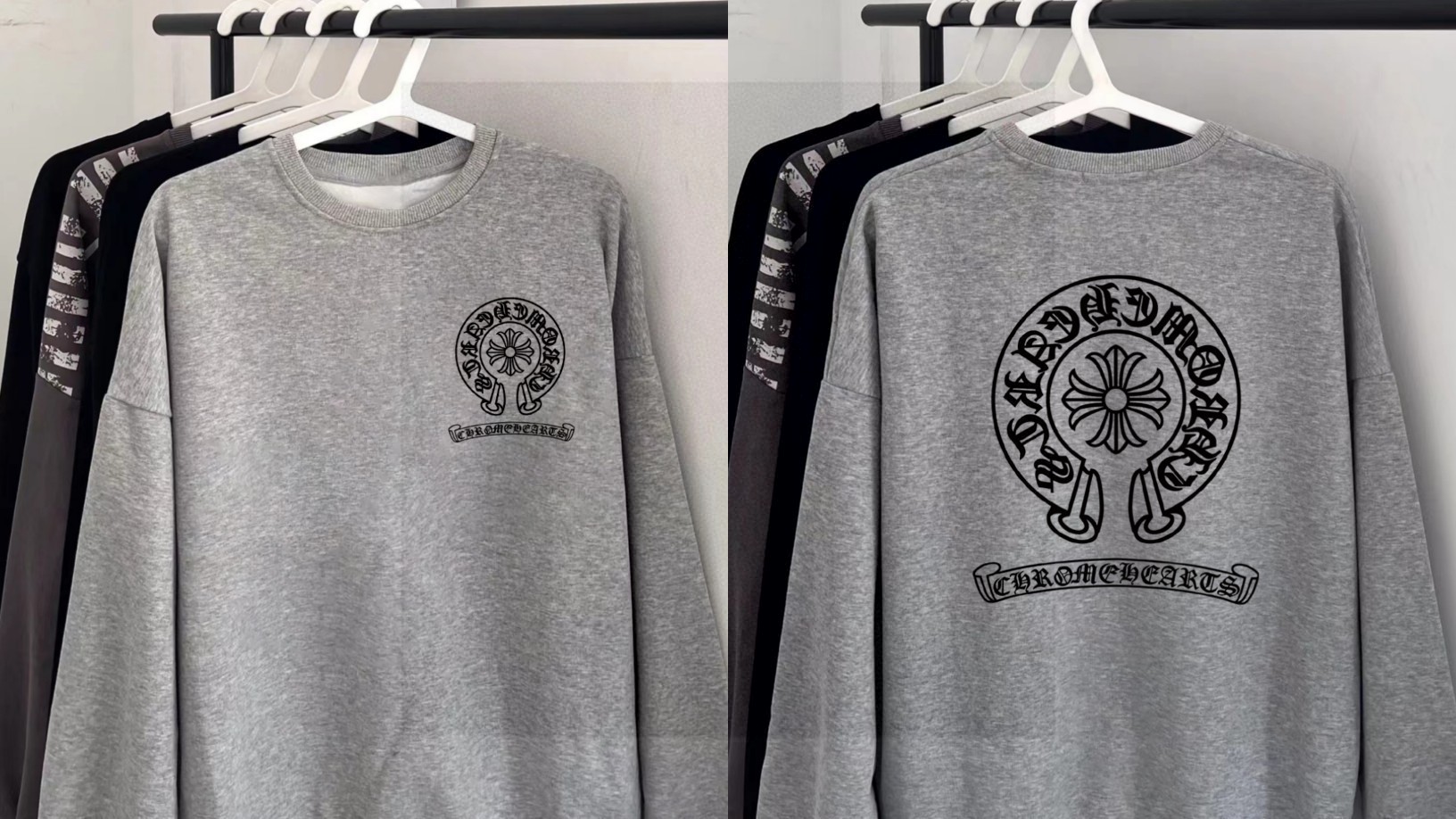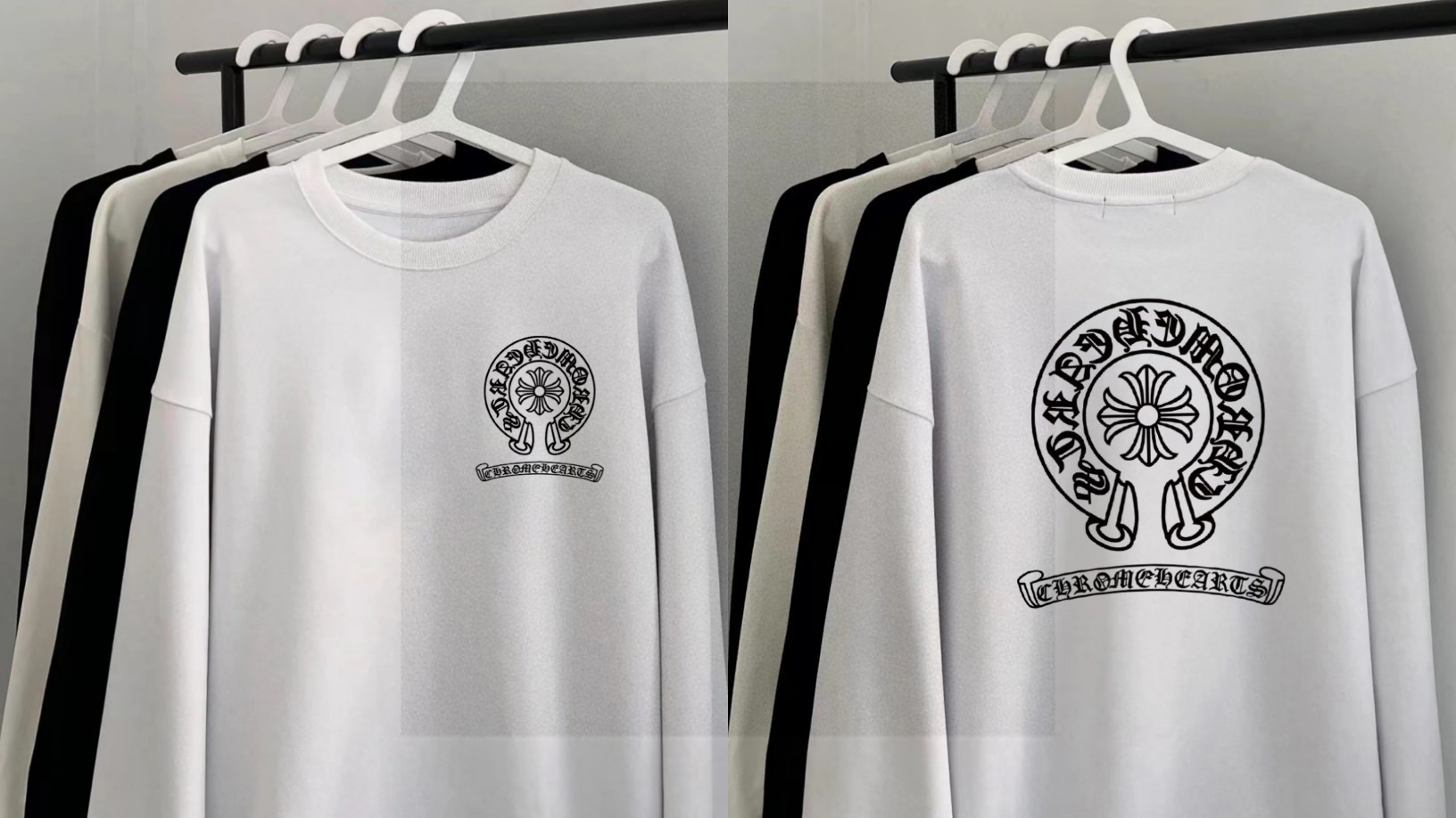 这款衣服是AAAAA 1:1 质量 (非常棒). 使用了和原版一模一样的材料. 商标部分也保持了和克罗心/Chrome Hearts一样. 图片拍摄是实物衣服拍摄, 您所收到的实物保证和我们图片一模一样.