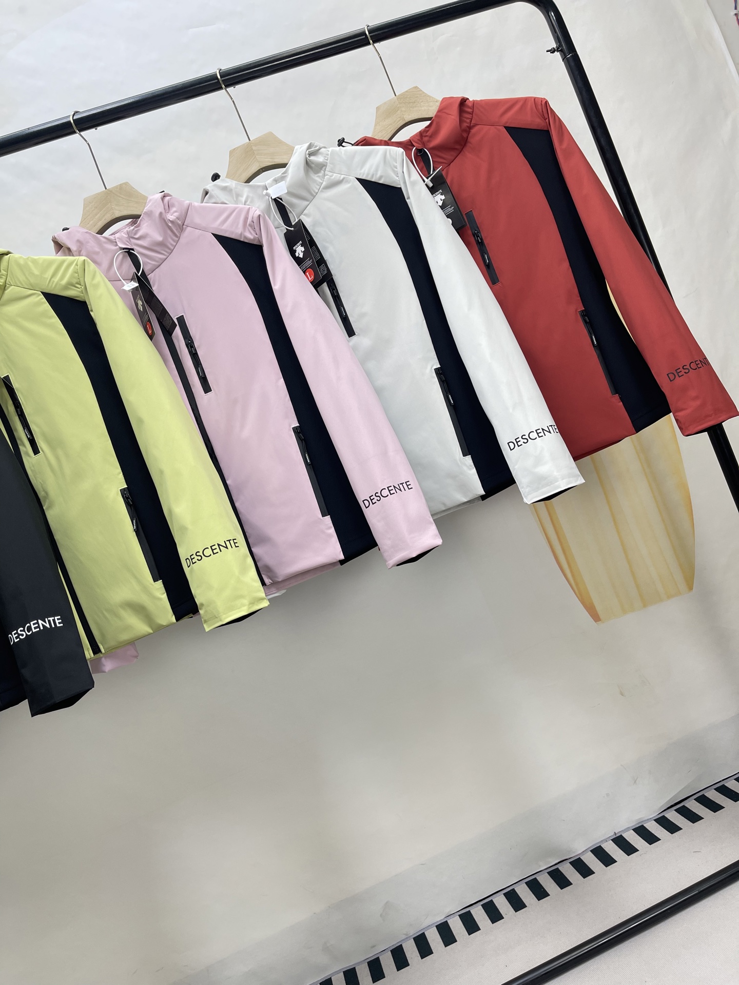 这款衣服是AAAAA 1:1 质量 (非常棒). 使用了和原版一模一样的材料. 商标部分也保持了和Descente一样. 图片拍摄是实物衣服拍摄, 您所收到的实物保证和我们图片一模一样.