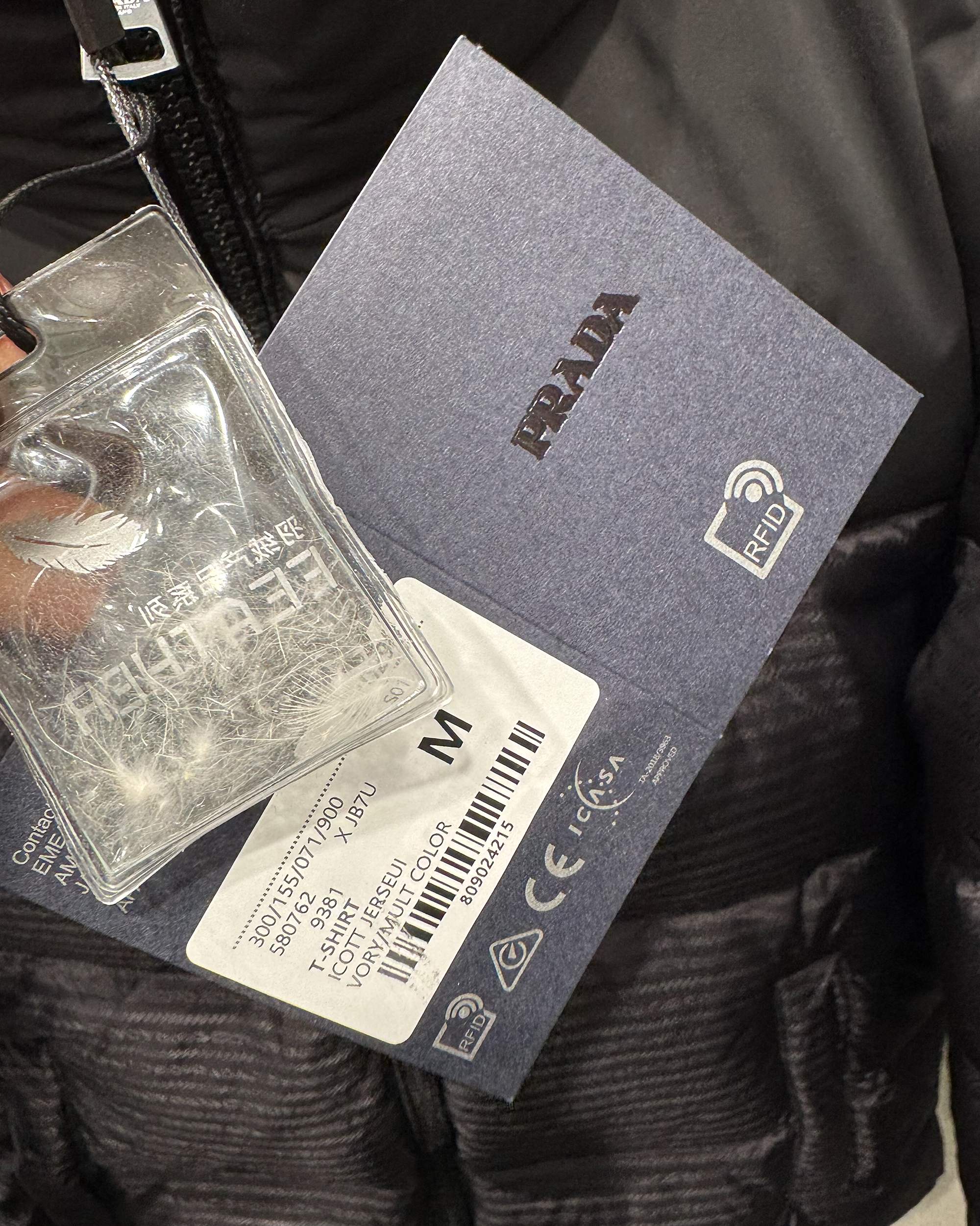 这款衣服是AAAAA 1:1 质量 (非常棒). 使用了和原版一模一样的材料. 商标部分也保持了和普拉达/Prada一样. 图片拍摄是实物衣服拍摄, 您所收到的实物保证和我们图片一模一样.