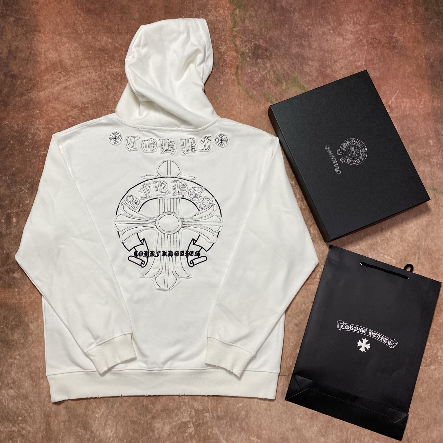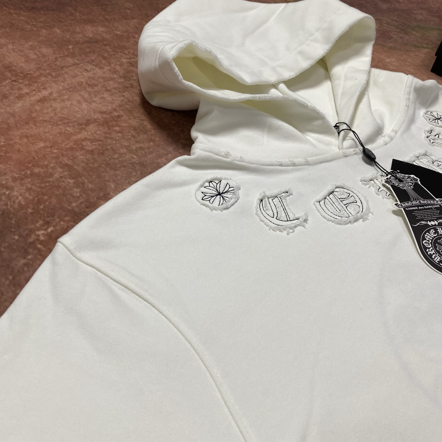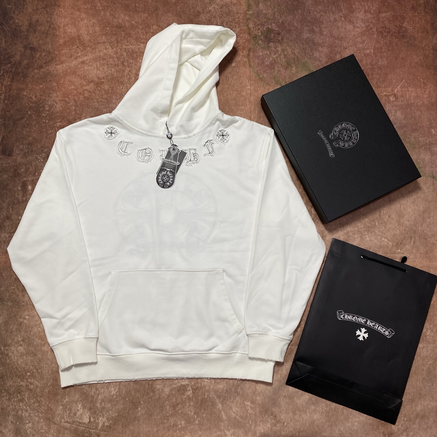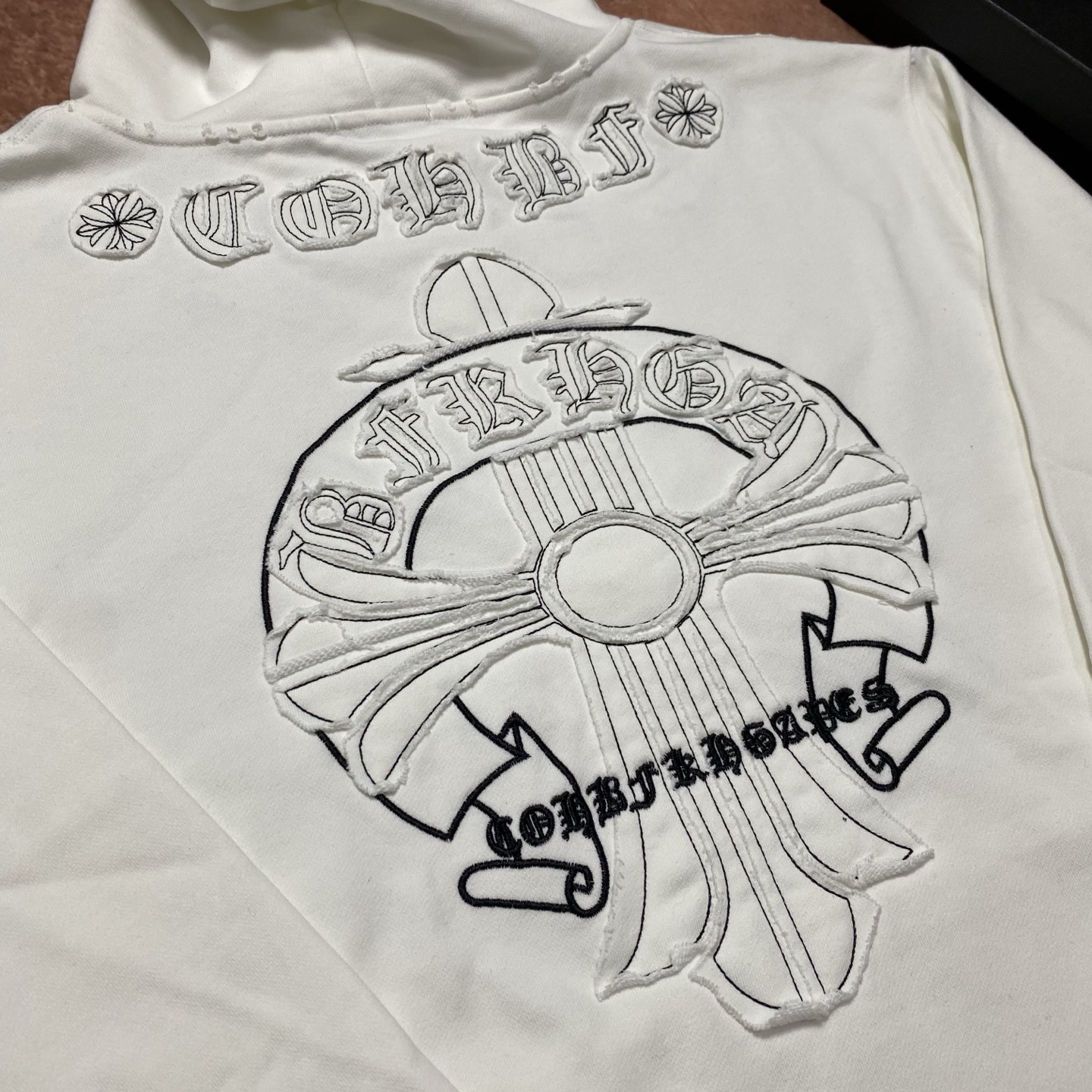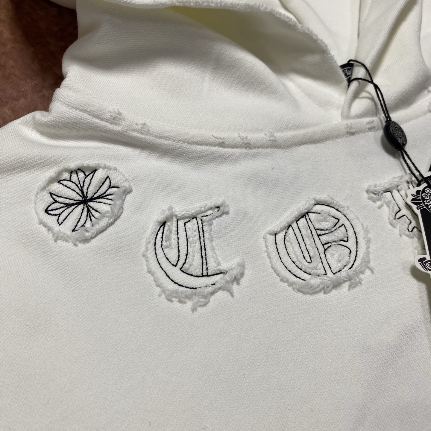 这款衣服是AAAAA 1:1 质量 (非常棒). 使用了和原版一模一样的材料. 商标部分也保持了和克罗心/Chrome Hearts一样. 图片拍摄是实物衣服拍摄, 您所收到的实物保证和我们图片一模一样.