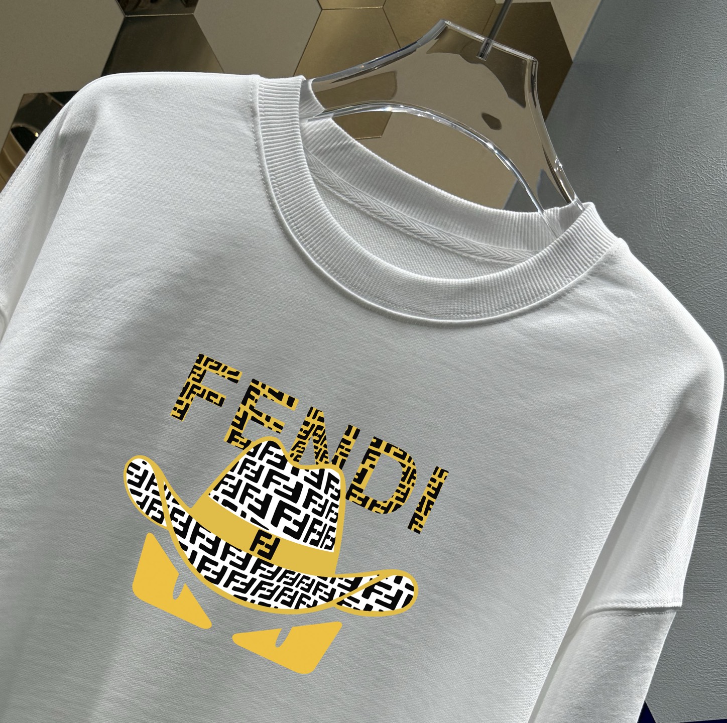这款衣服是AAAAA 1:1 质量 (非常棒). 使用了和原版一模一样的材料. 商标部分也保持了和芬迪/Fendi一样. 图片拍摄是实物衣服拍摄, 您所收到的实物保证和我们图片一模一样.