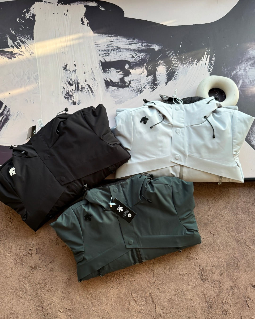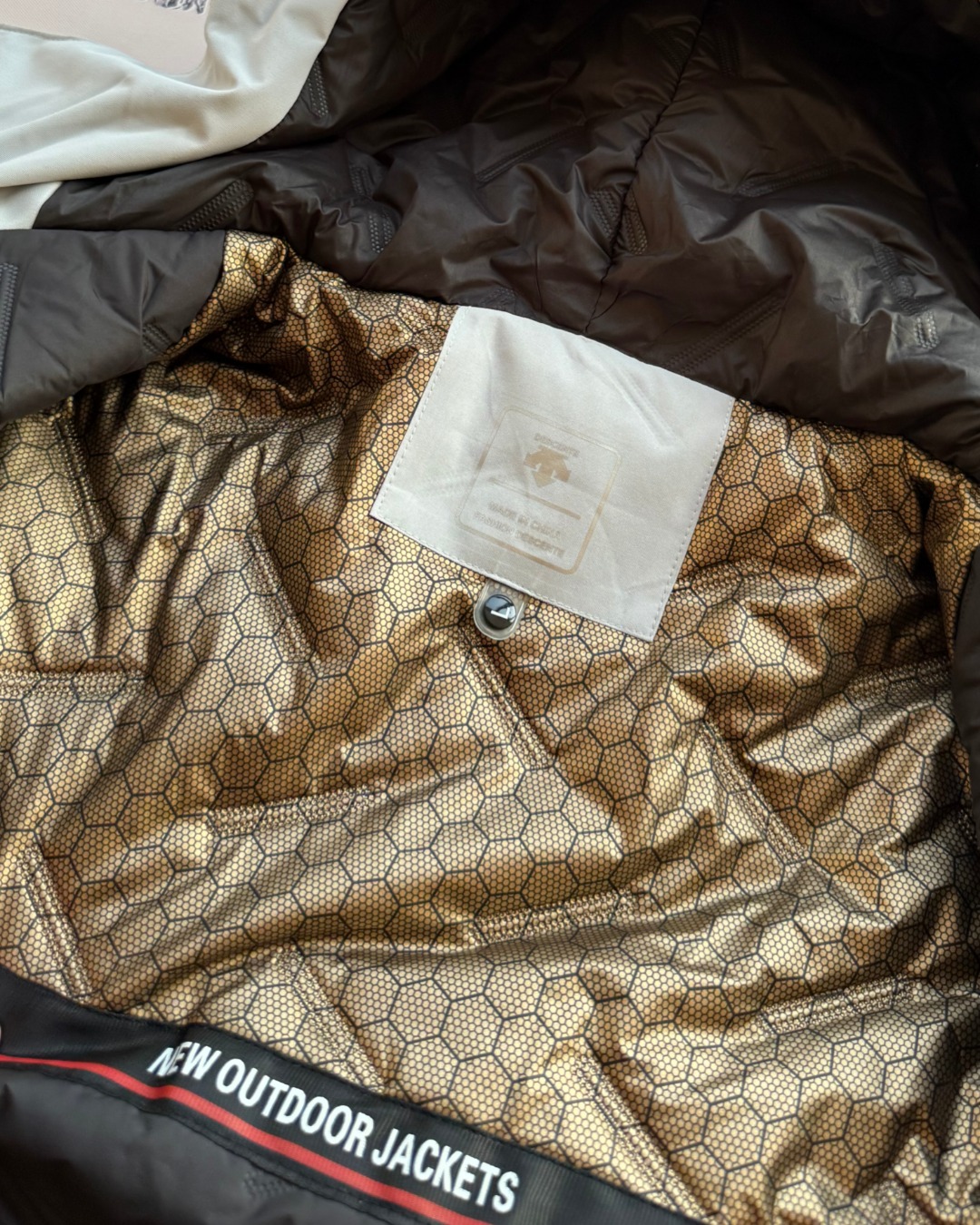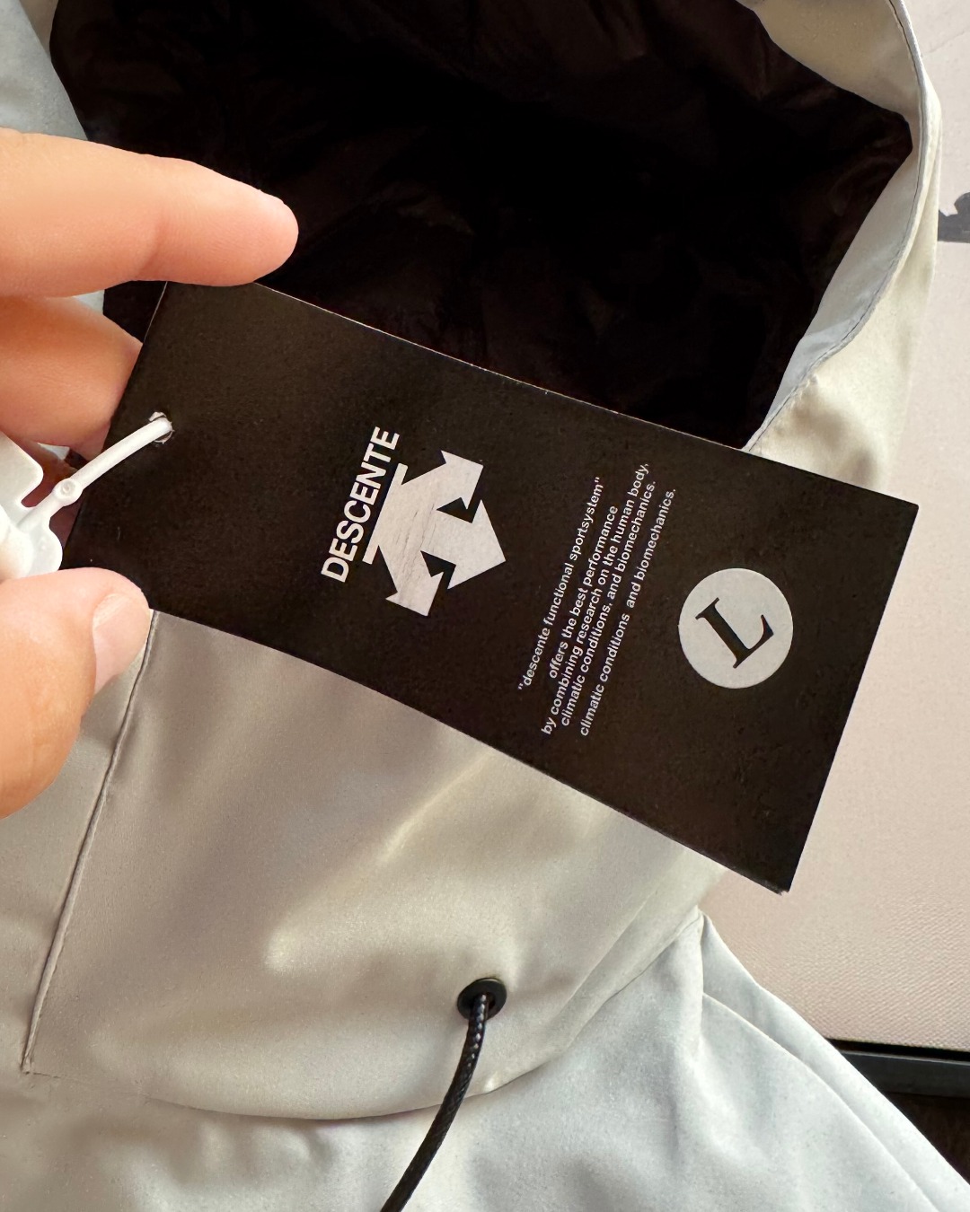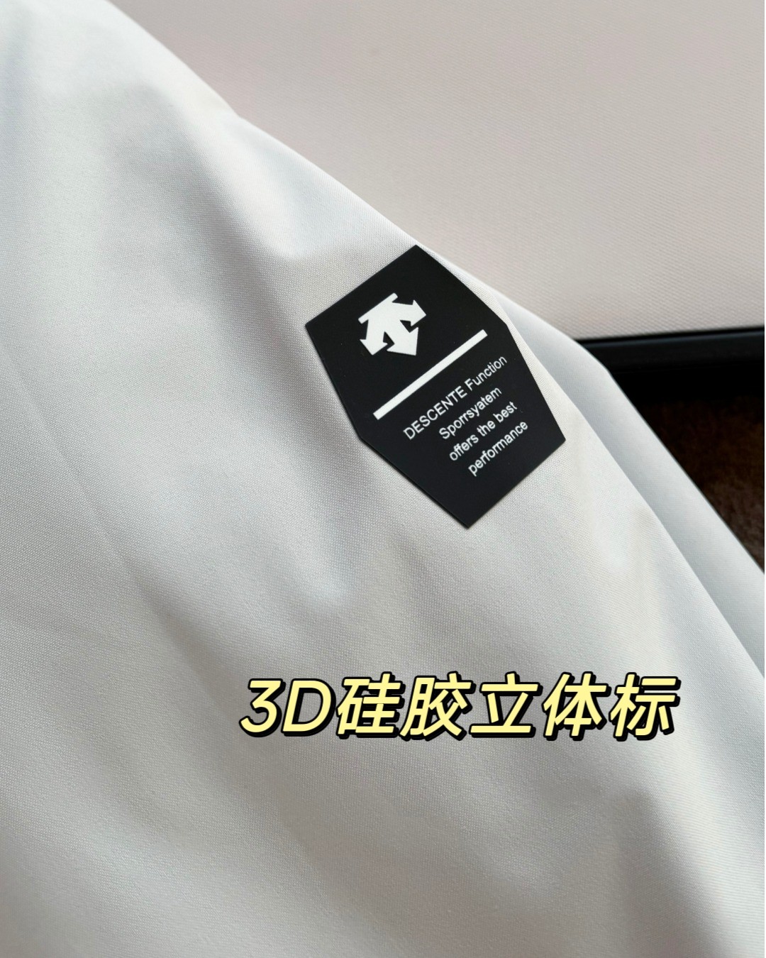 这款衣服是AAAAA 1:1 质量 (非常棒). 使用了和原版一模一样的材料. 商标部分也保持了和Descente一样. 图片拍摄是实物衣服拍摄, 您所收到的实物保证和我们图片一模一样.