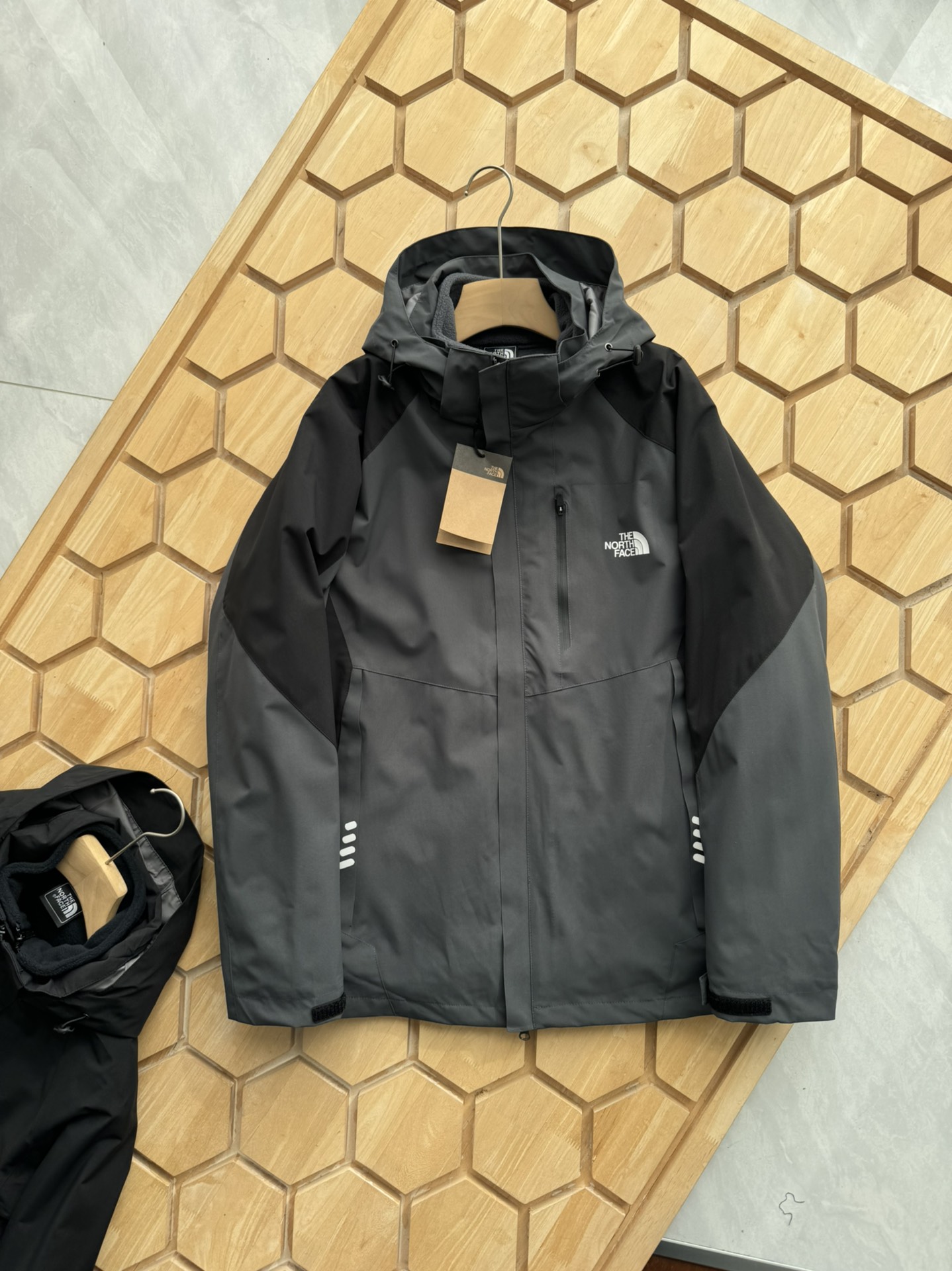 这款衣服是AAAAA 1:1 质量 (非常棒). 使用了和原版一模一样的材料. 商标部分也保持了和The North Face一样. 图片拍摄是实物衣服拍摄, 您所收到的实物保证和我们图片一模一样.