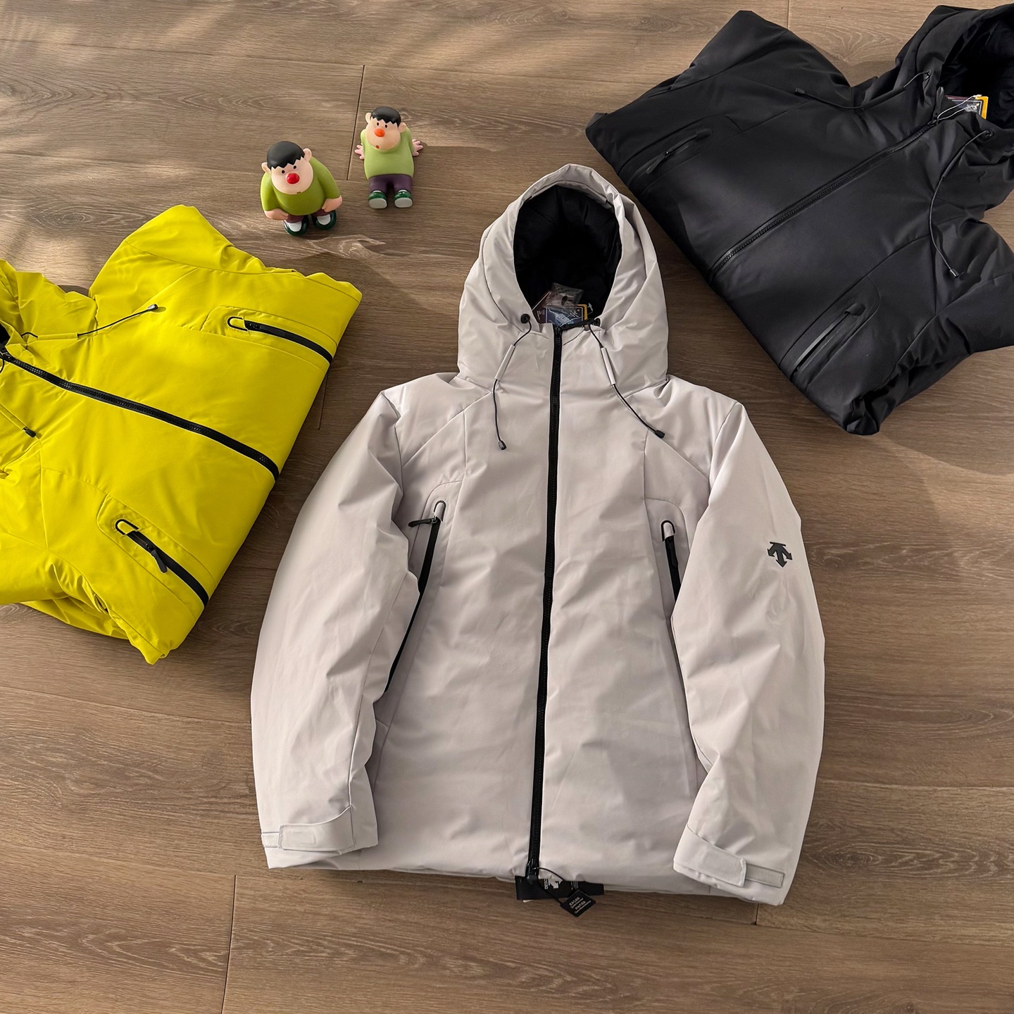 这款衣服是AAAAA 1:1 质量 (非常棒). 使用了和原版一模一样的材料. 商标部分也保持了和Descente一样. 图片拍摄是实物衣服拍摄, 您所收到的实物保证和我们图片一模一样.