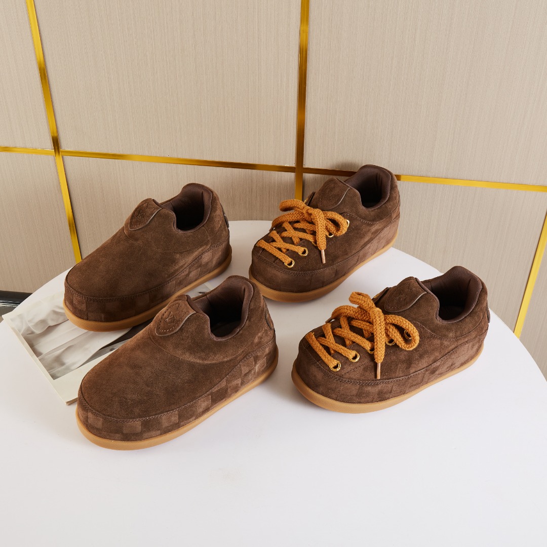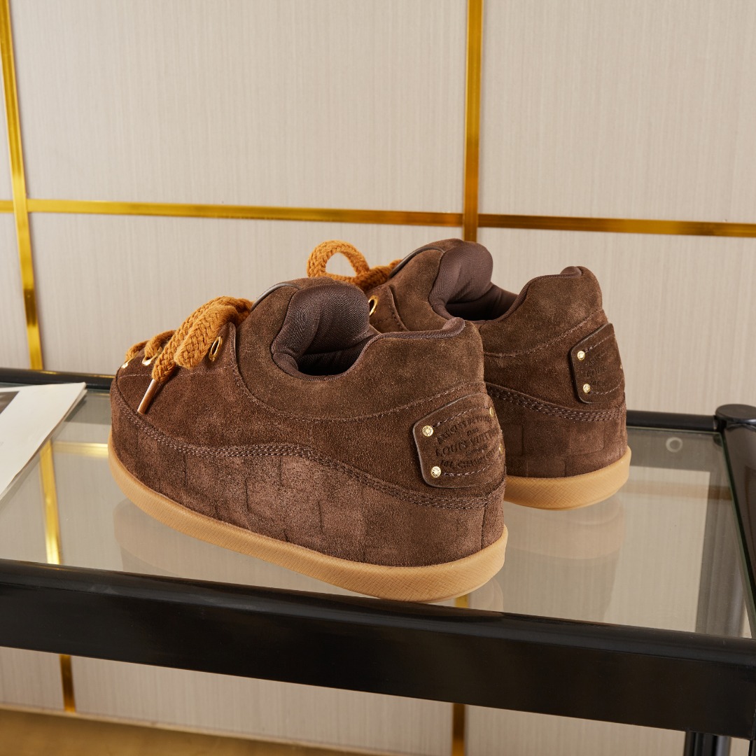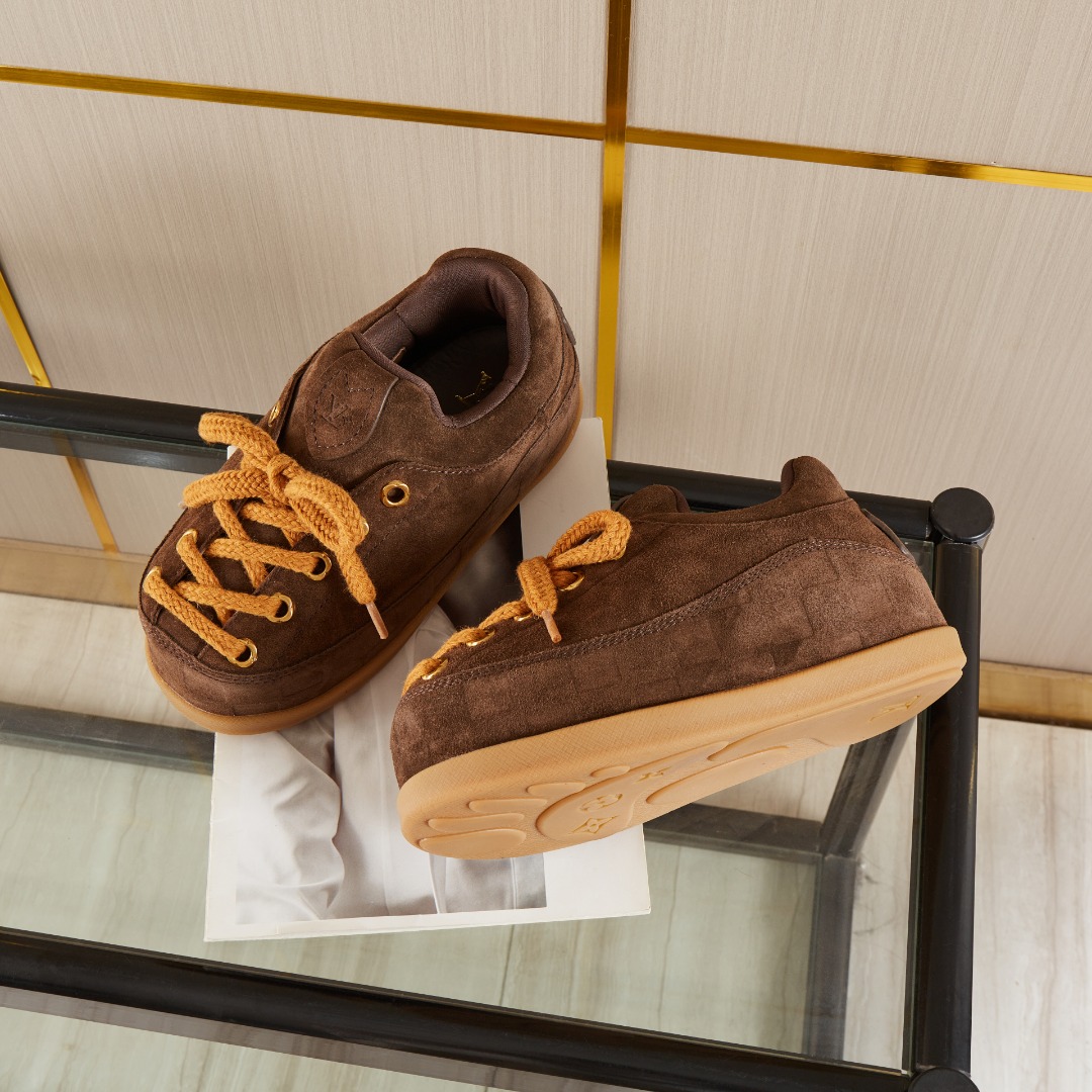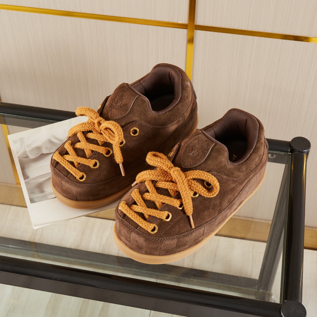 这款鞋子是AAAAA 1:1 质量 (非常棒). 使用了和原版一模一样的材料. 商标部分也保持了和路易威登/Louis Vuitton一样. 图片拍摄是实物鞋子拍摄, 您所收到的实物保证和我们图片一模一样.