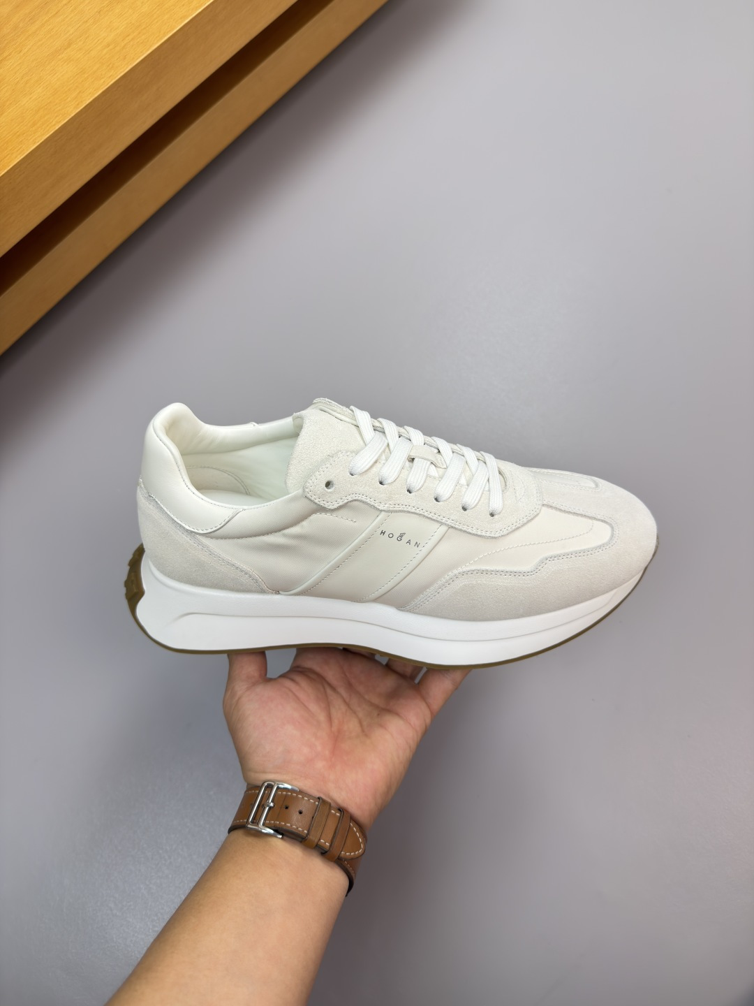 这款鞋子是AAAAA 1:1 质量 (非常棒). 使用了和原版一模一样的材料. 商标部分也保持了和Hogan一样. 图片拍摄是实物鞋子拍摄, 您所收到的实物保证和我们图片一模一样.