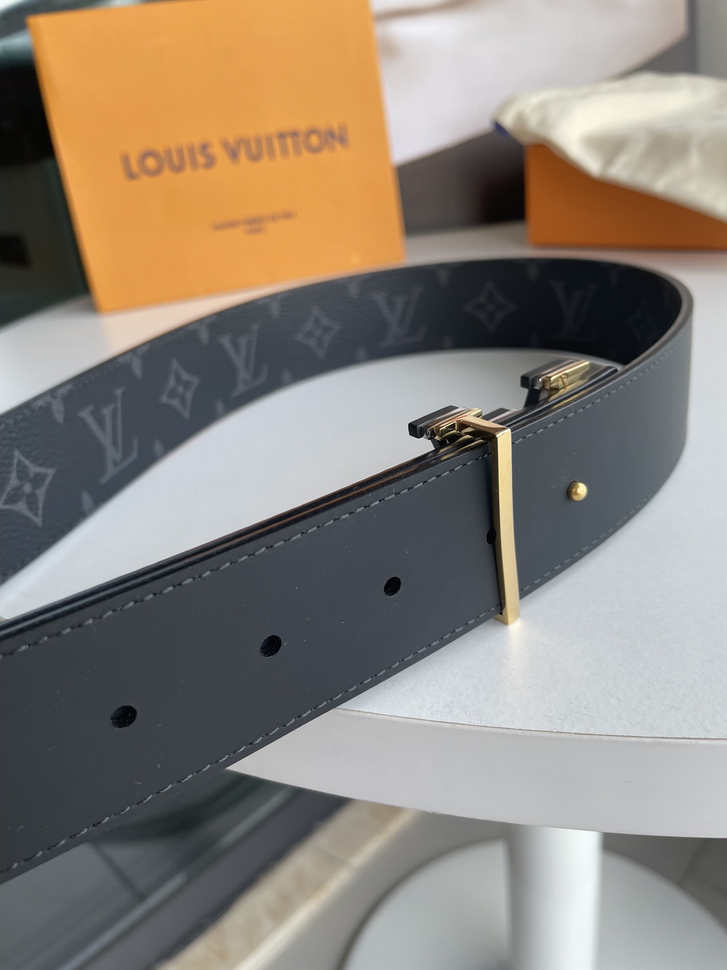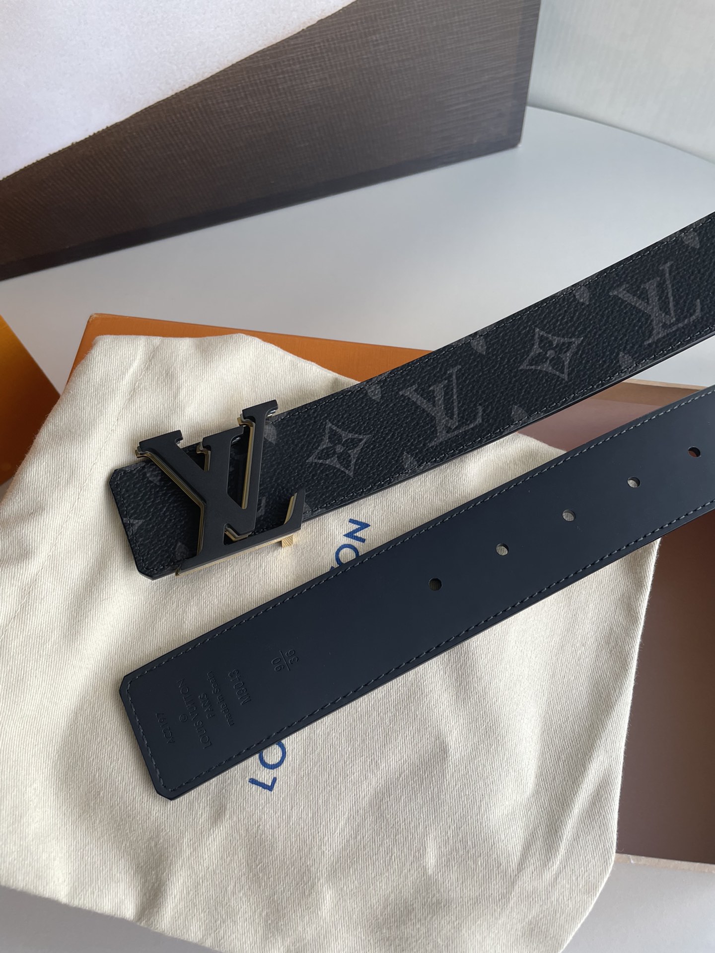 这款皮带是AAAAA 1:1 质量 (非常棒). 使用了和原版一模一样的材料. 商标部分也保持了和路易威登/Louis Vuitton一样. 图片拍摄是实物皮带拍摄, 您所收到的实物保证和我们图片一模一样.