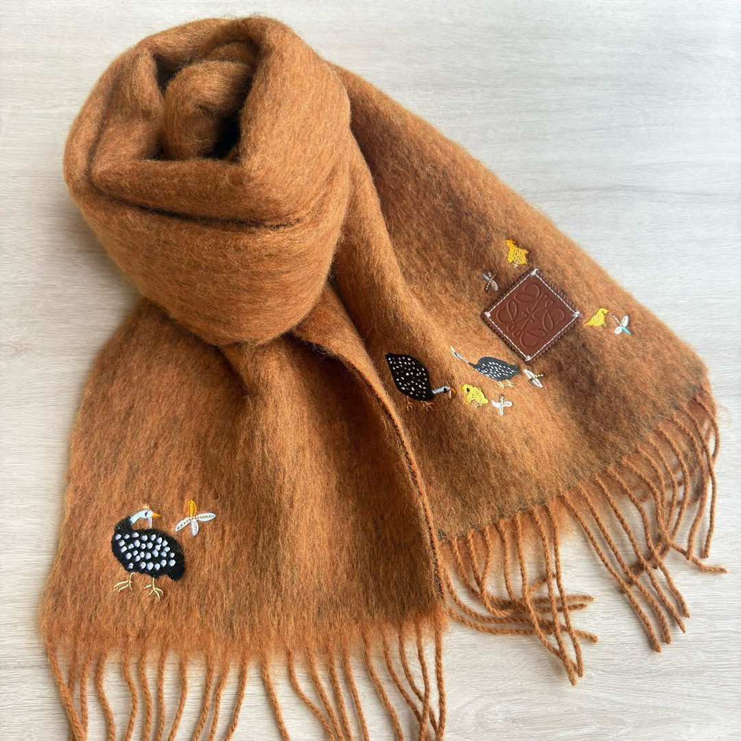 这款围巾是AAAAA 1:1 质量 (非常棒). 使用了和原版一模一样的材料. 商标部分也保持了和罗意威/Loewe一样. 图片拍摄是实物围巾拍摄, 您所收到的实物保证和我们图片一模一样.