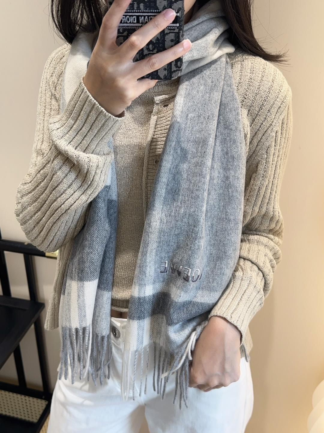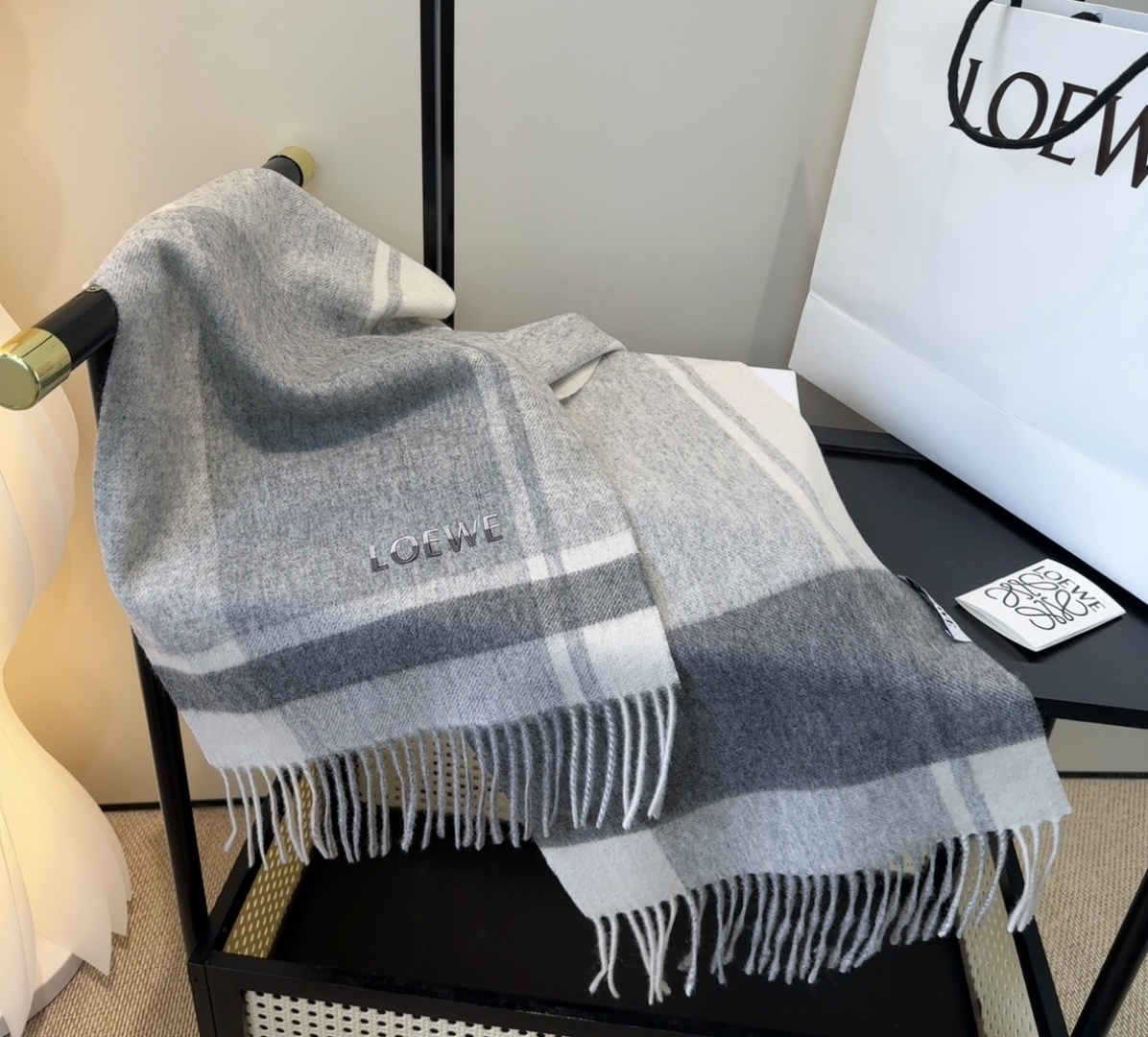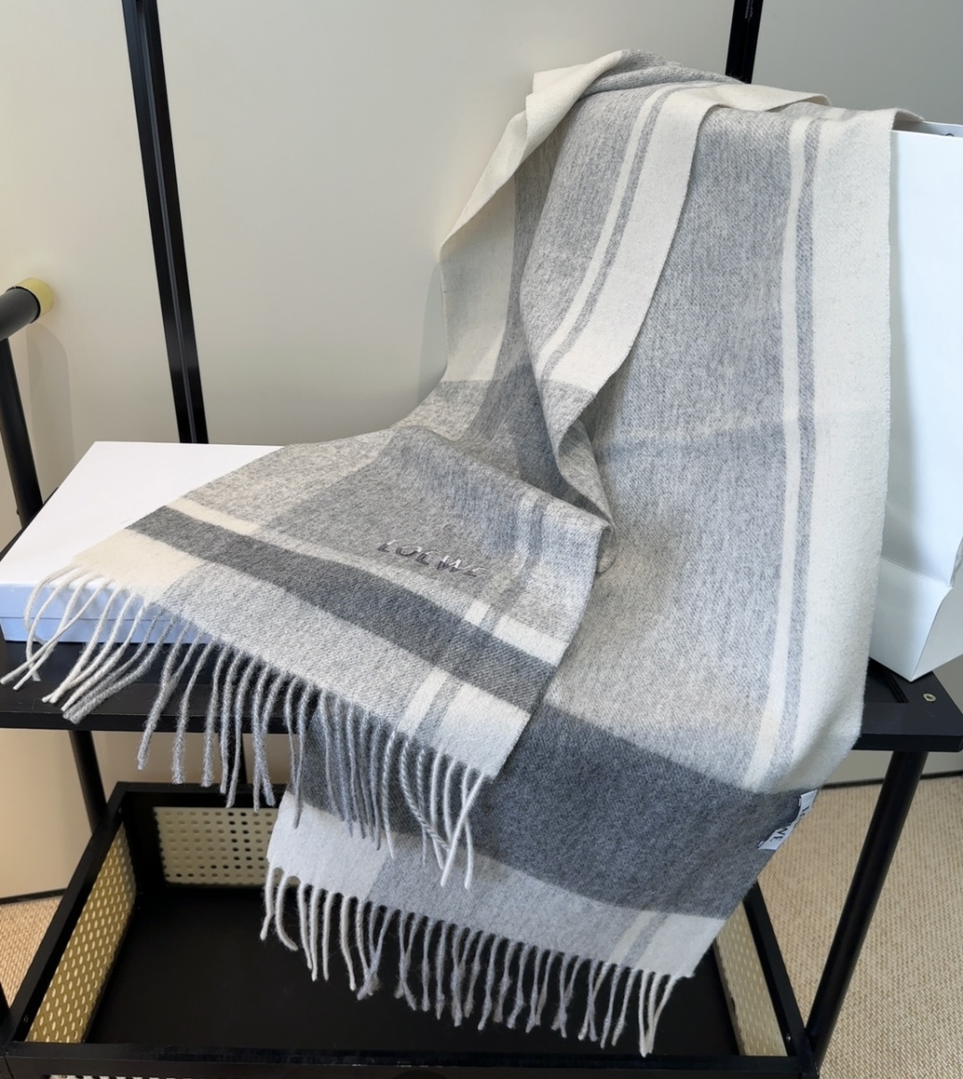 这款围巾是AAAAA 1:1 质量 (非常棒). 使用了和原版一模一样的材料. 商标部分也保持了和罗意威/Loewe一样. 图片拍摄是实物围巾拍摄, 您所收到的实物保证和我们图片一模一样.