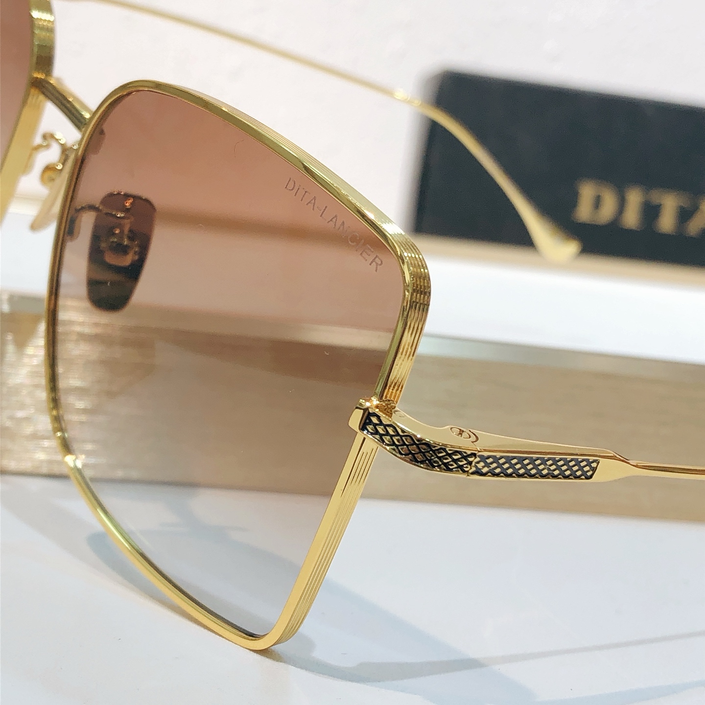这款太阳眼镜是AAAAA 1:1 质量 (非常棒). 使用了和原版一模一样的材料. 商标部分也保持了和迪塔/Dita一样. 图片拍摄是实物太阳眼镜拍摄, 您所收到的实物保证和我们图片一模一样.