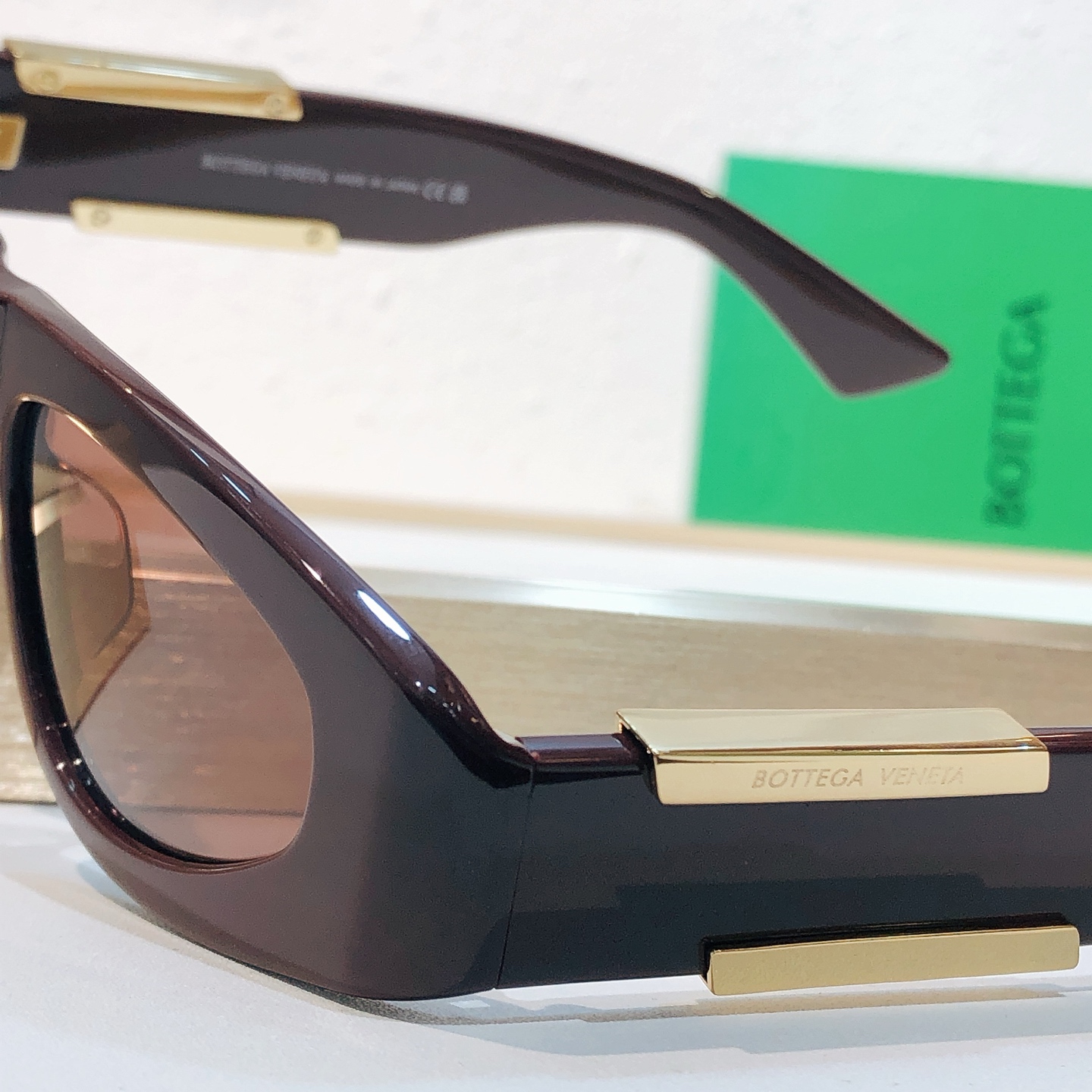 这款太阳眼镜是AAAAA 1:1 质量 (非常棒). 使用了和原版一模一样的材料. 商标部分也保持了和葆蝶家/Bottega Veneta一样. 图片拍摄是实物太阳眼镜拍摄, 您所收到的实物保证和我们图片一模一样.