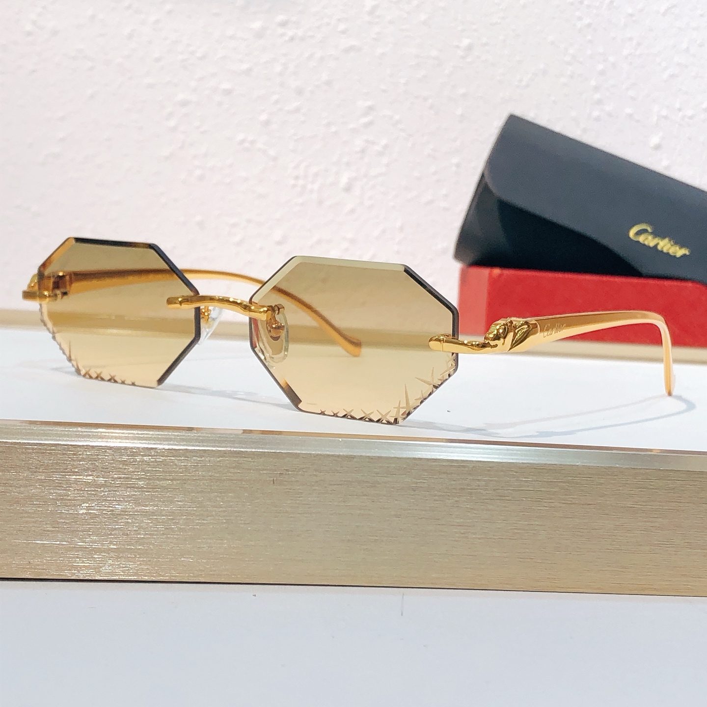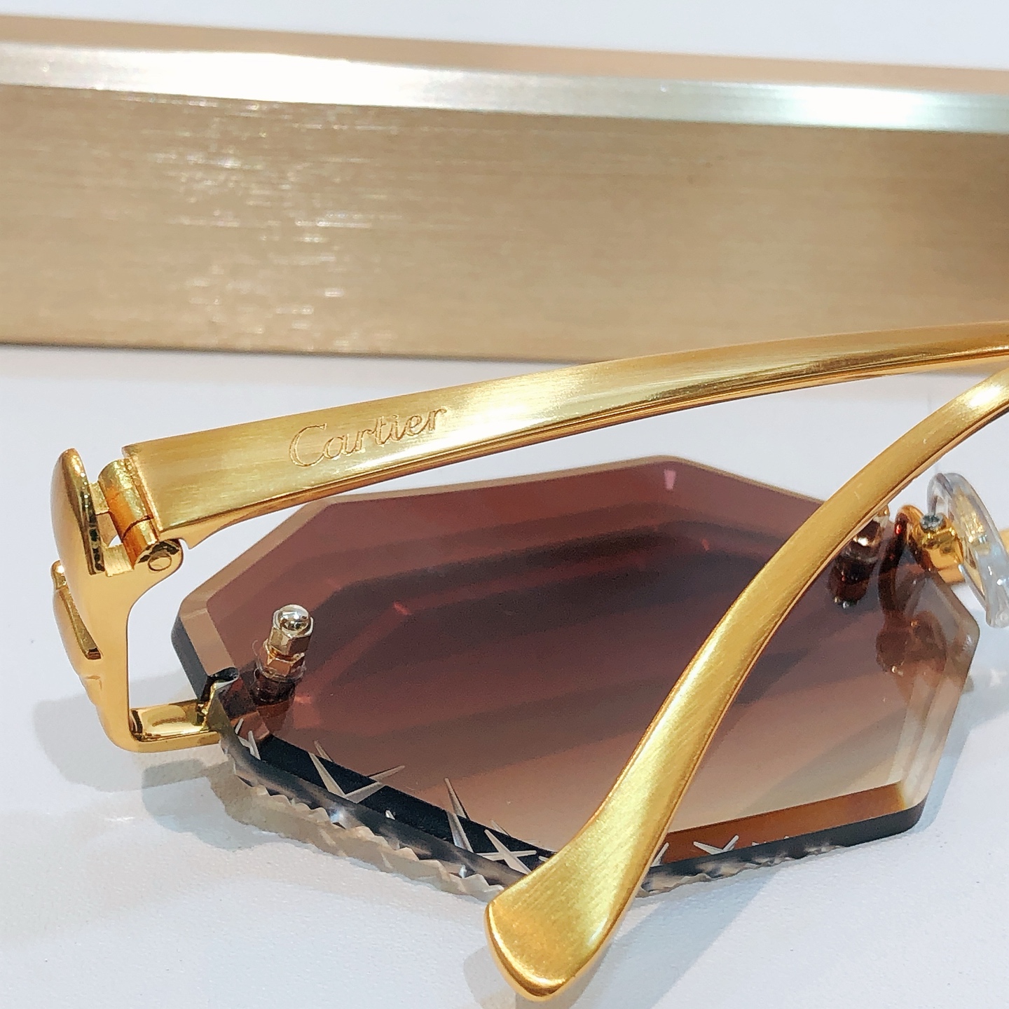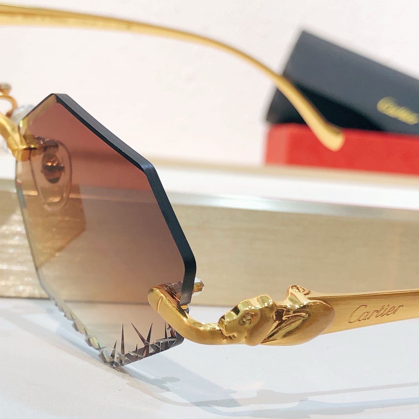 这款太阳眼镜是AAAAA 1:1 质量 (非常棒). 使用了和原版一模一样的材料. 商标部分也保持了和卡地亚/Cartier一样. 图片拍摄是实物太阳眼镜拍摄, 您所收到的实物保证和我们图片一模一样.