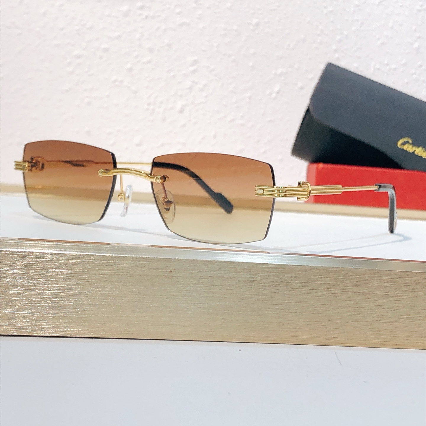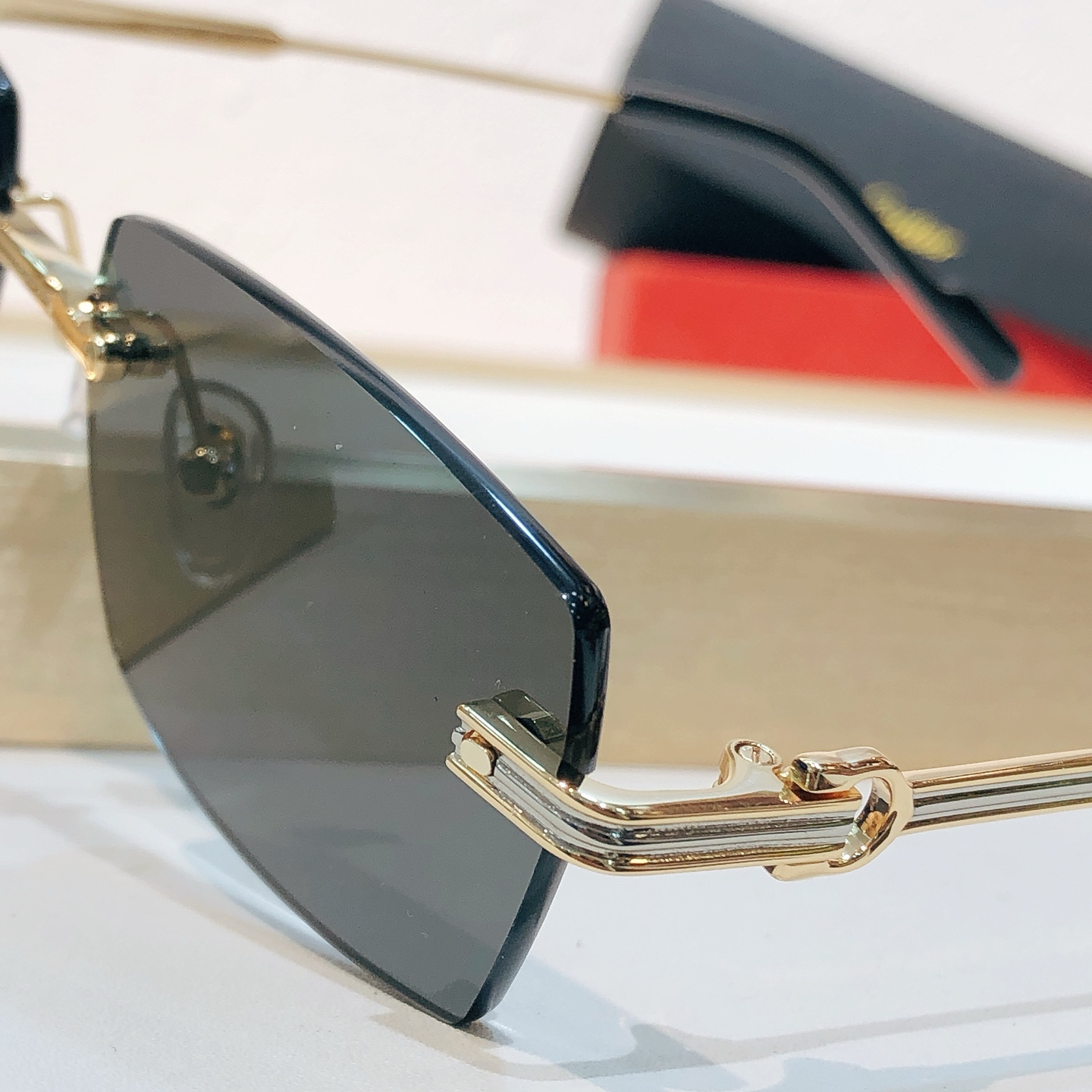 这款太阳眼镜是AAAAA 1:1 质量 (非常棒). 使用了和原版一模一样的材料. 商标部分也保持了和卡地亚/Cartier一样. 图片拍摄是实物太阳眼镜拍摄, 您所收到的实物保证和我们图片一模一样.