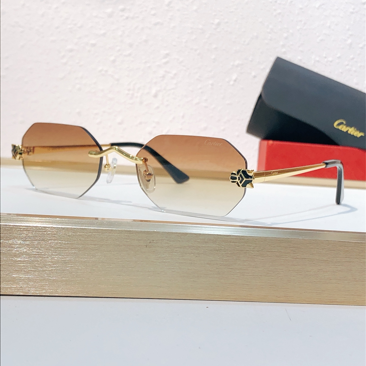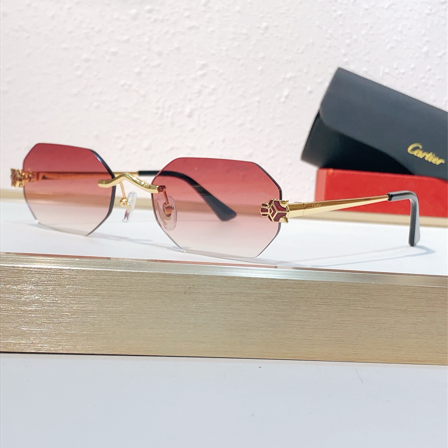 这款太阳眼镜是AAAAA 1:1 质量 (非常棒). 使用了和原版一模一样的材料. 商标部分也保持了和卡地亚/Cartier一样. 图片拍摄是实物太阳眼镜拍摄, 您所收到的实物保证和我们图片一模一样.