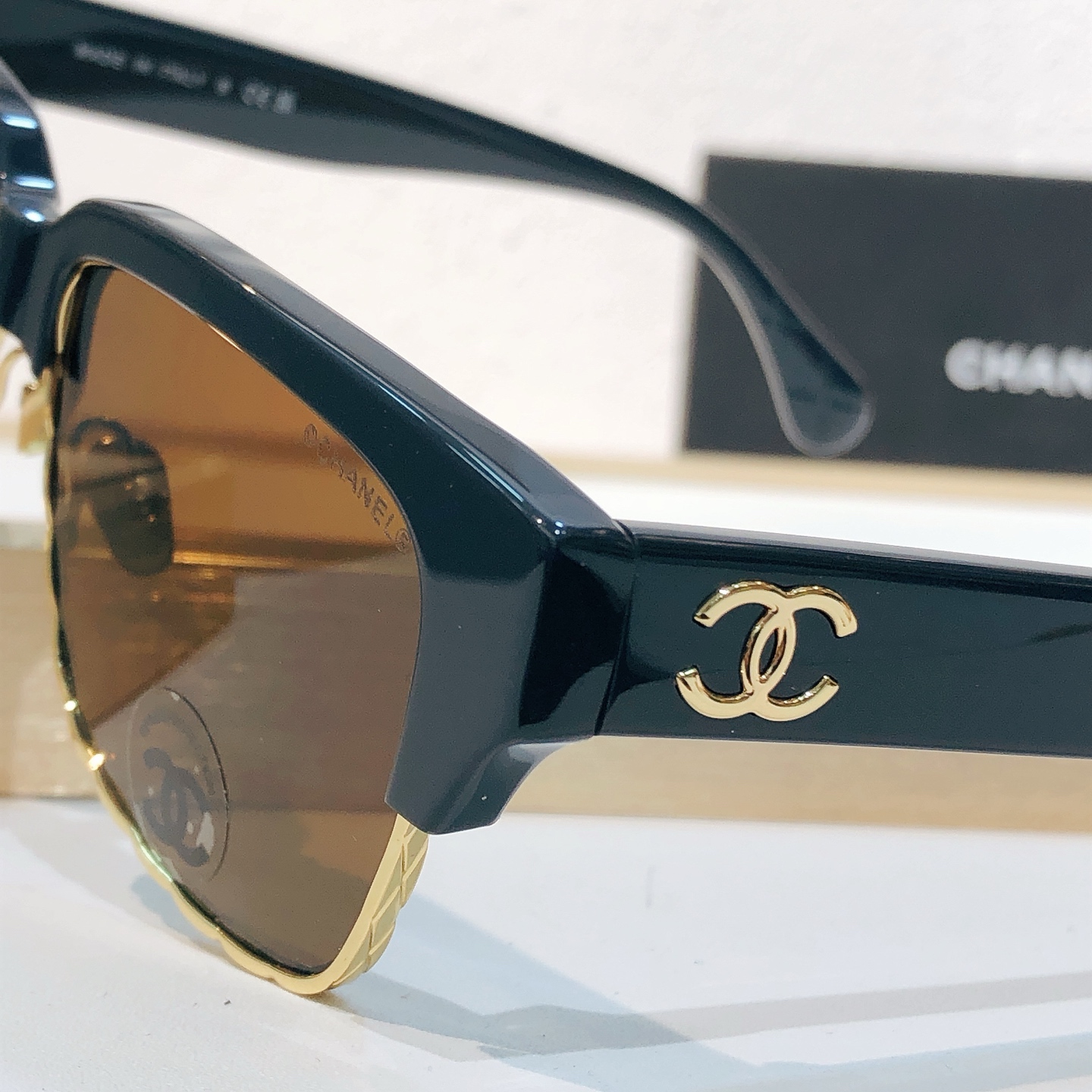 这款太阳眼镜是AAAAA 1:1 质量 (非常棒). 使用了和原版一模一样的材料. 商标部分也保持了和香奈儿/Chanel一样. 图片拍摄是实物太阳眼镜拍摄, 您所收到的实物保证和我们图片一模一样.