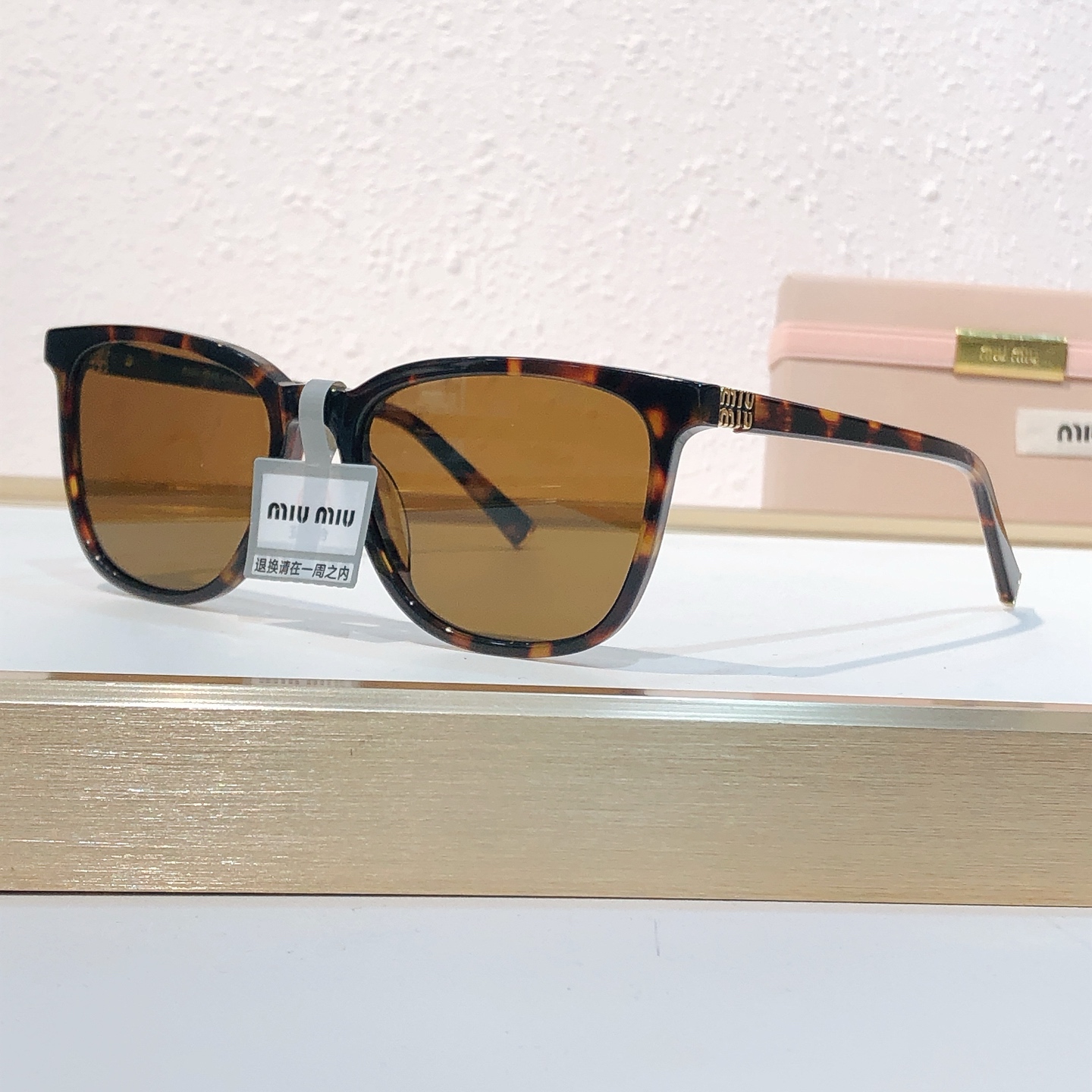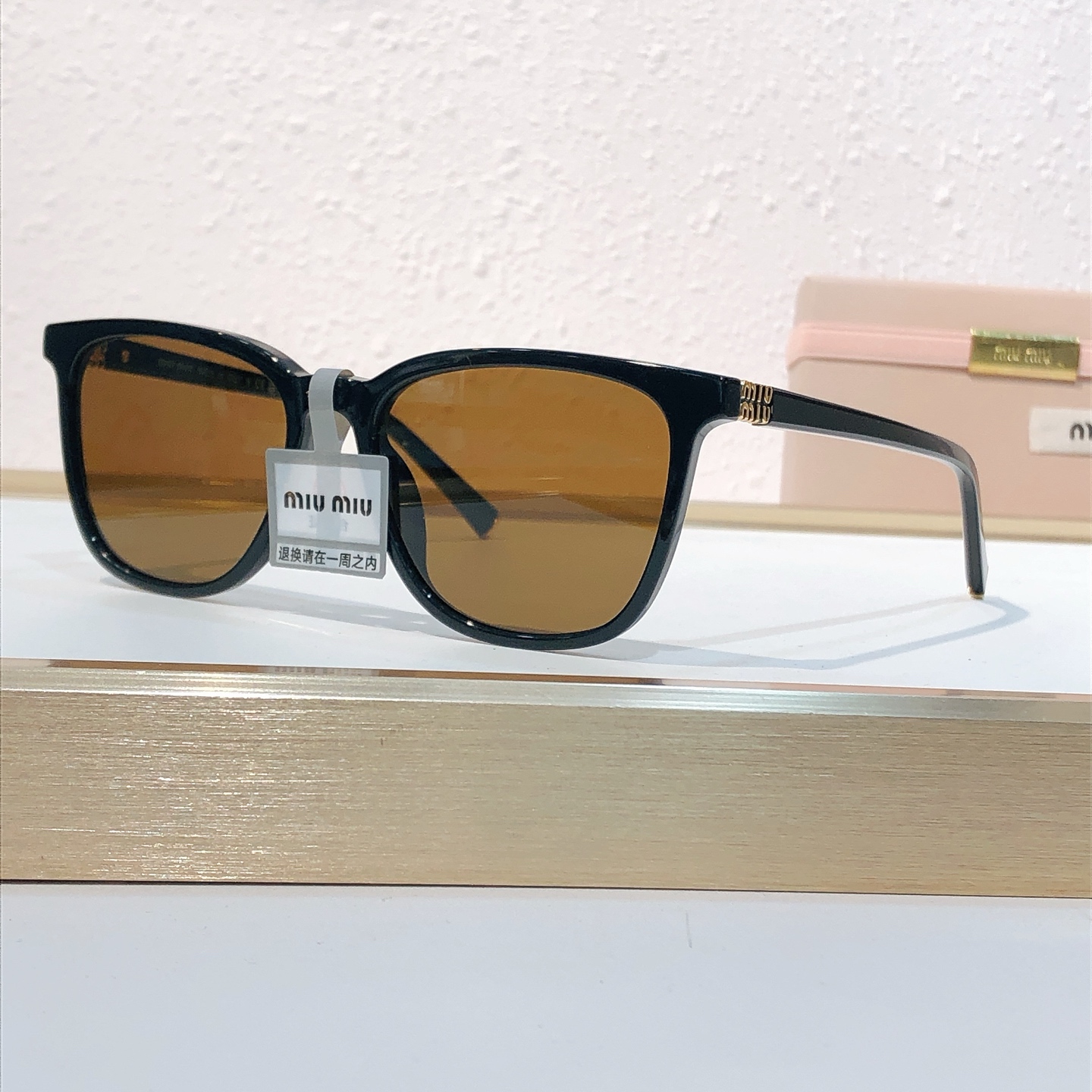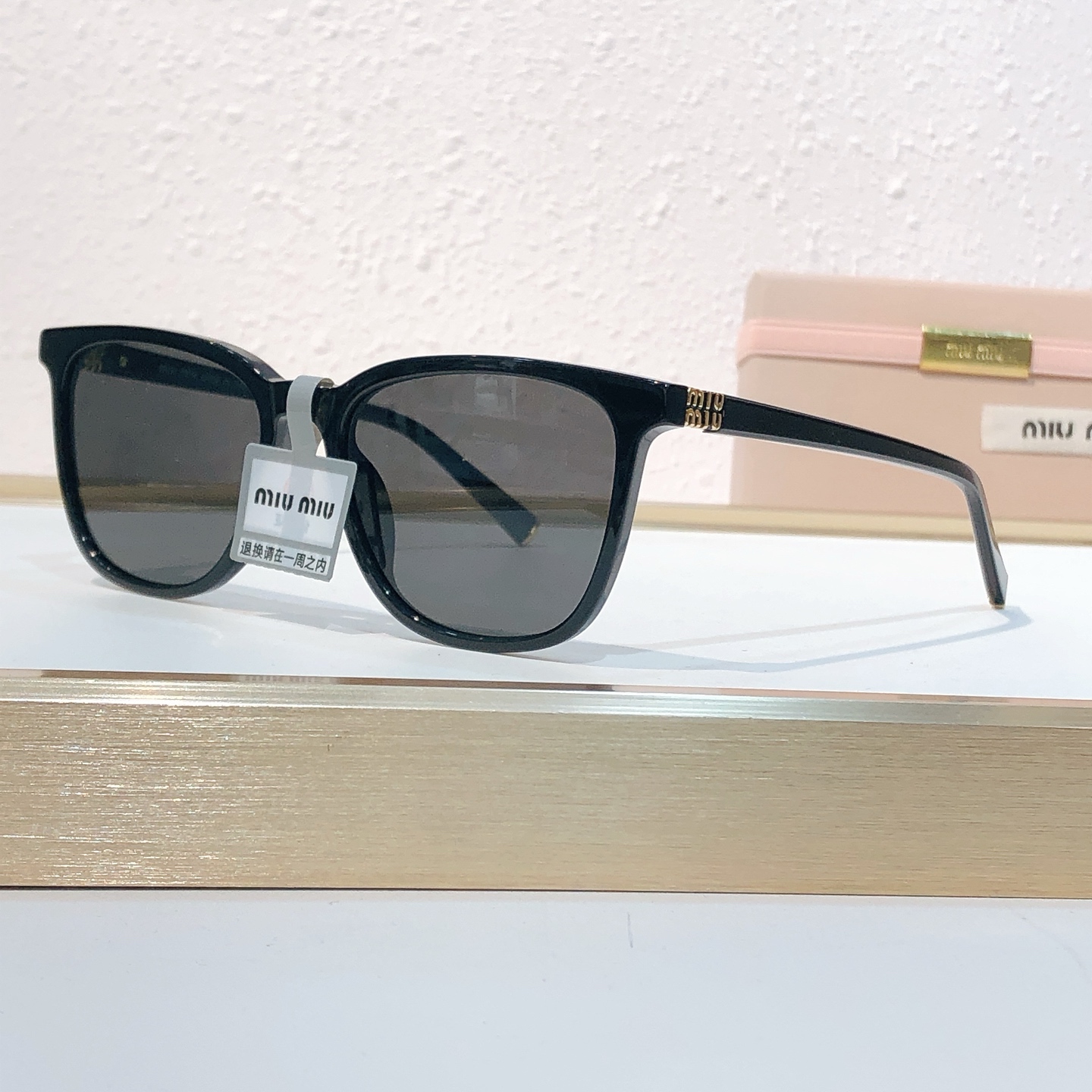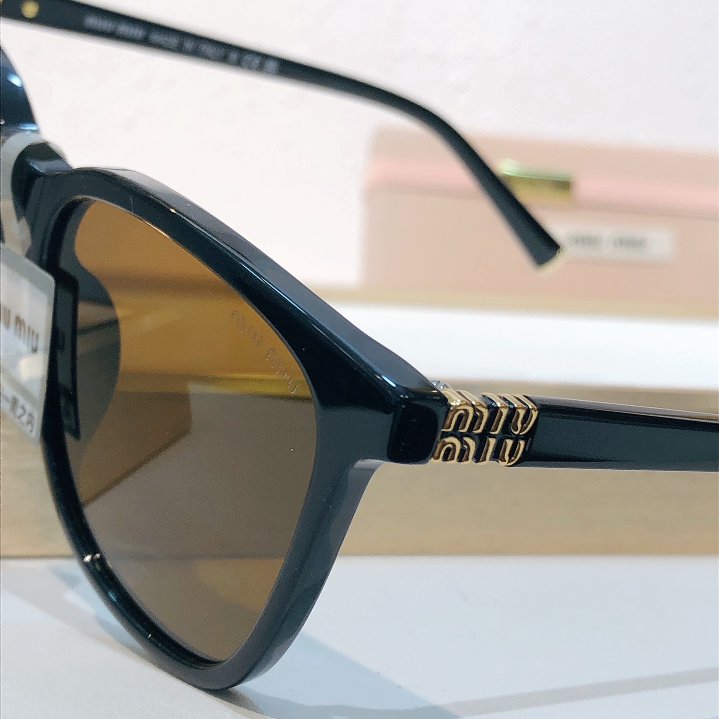 这款太阳眼镜是AAAAA 1:1 质量 (非常棒). 使用了和原版一模一样的材料. 商标部分也保持了和缪缪/Miu Miu一样. 图片拍摄是实物太阳眼镜拍摄, 您所收到的实物保证和我们图片一模一样.