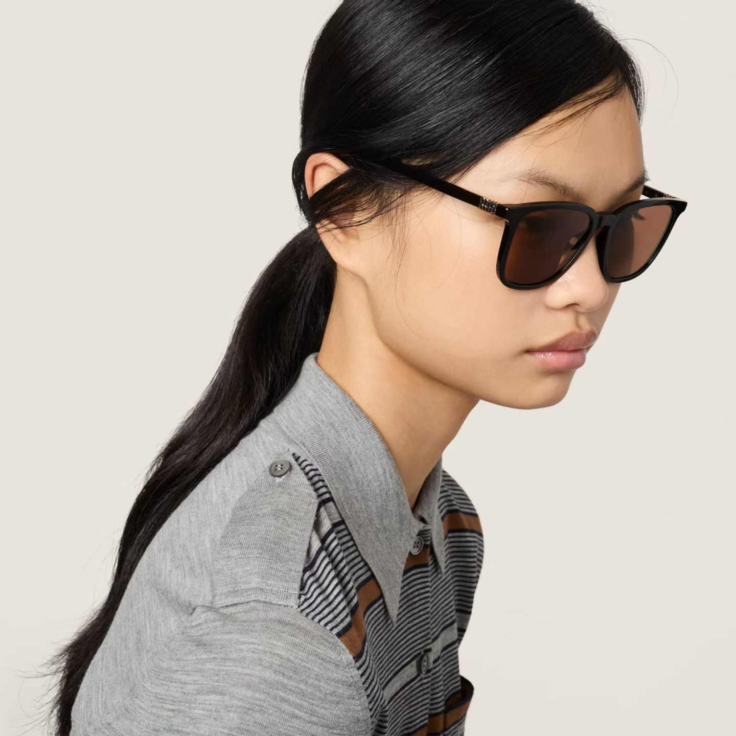 这款太阳眼镜是AAAAA 1:1 质量 (非常棒). 使用了和原版一模一样的材料. 商标部分也保持了和缪缪/Miu Miu一样. 图片拍摄是实物太阳眼镜拍摄, 您所收到的实物保证和我们图片一模一样.