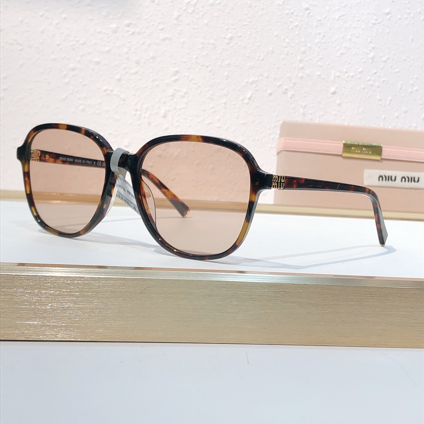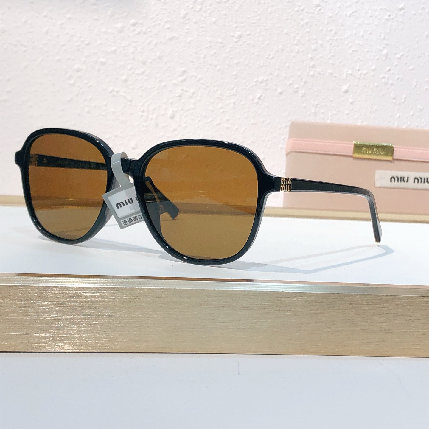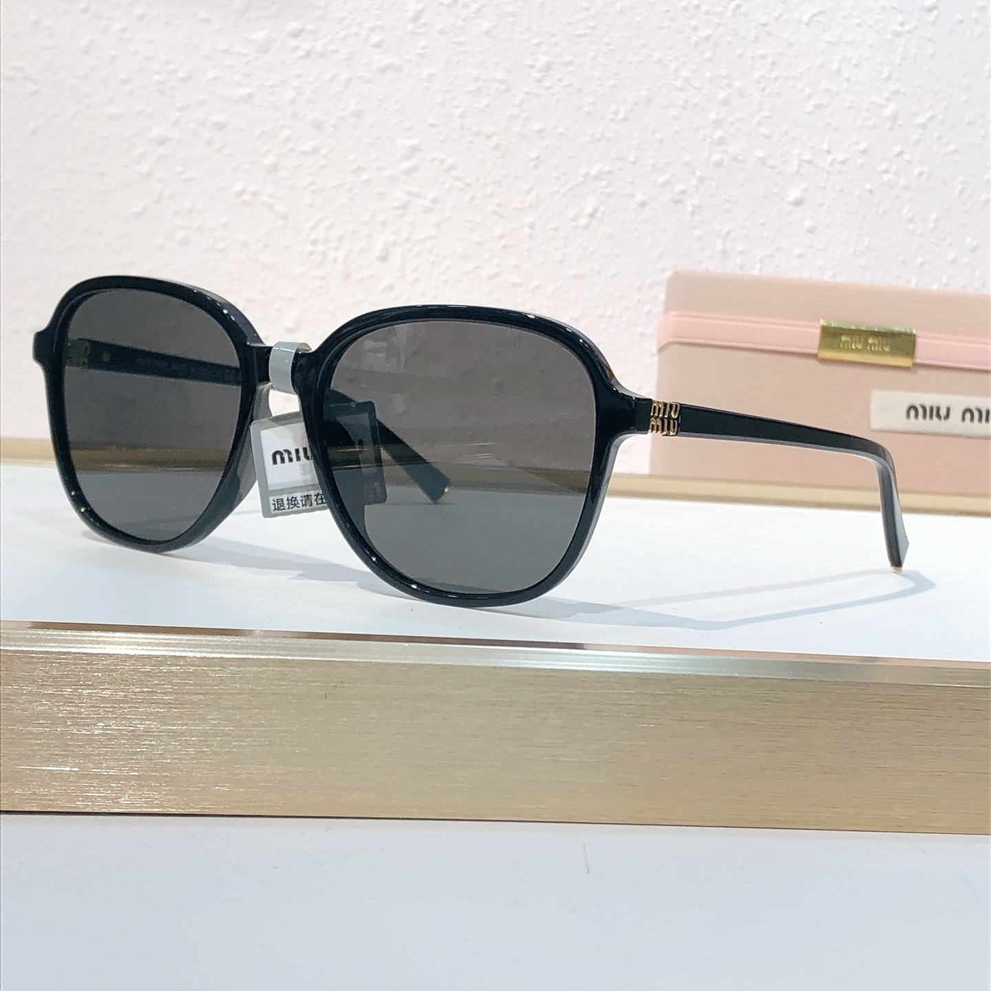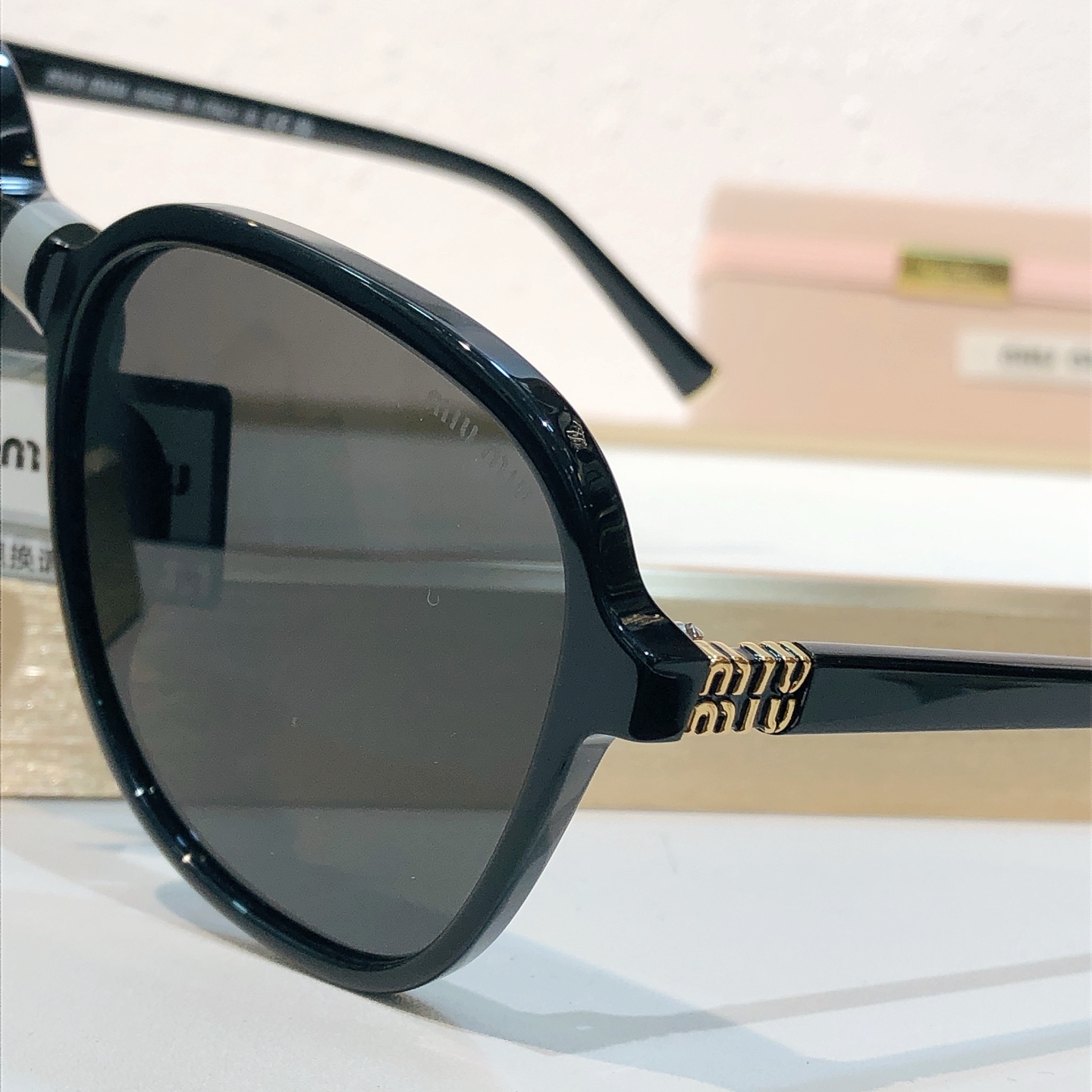 这款太阳眼镜是AAAAA 1:1 质量 (非常棒). 使用了和原版一模一样的材料. 商标部分也保持了和缪缪/Miu Miu一样. 图片拍摄是实物太阳眼镜拍摄, 您所收到的实物保证和我们图片一模一样.