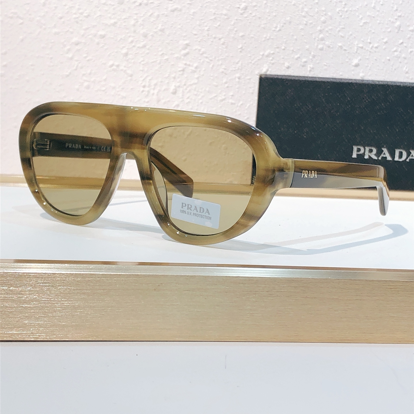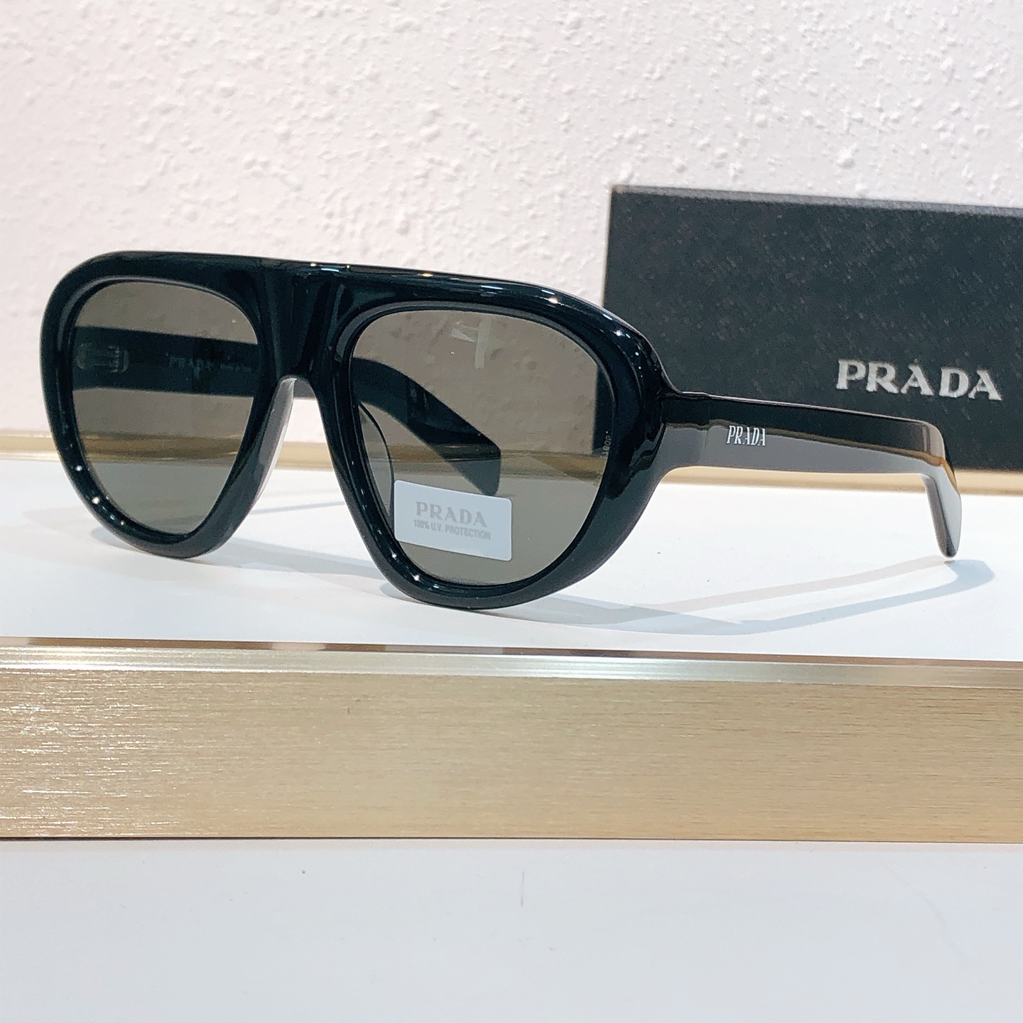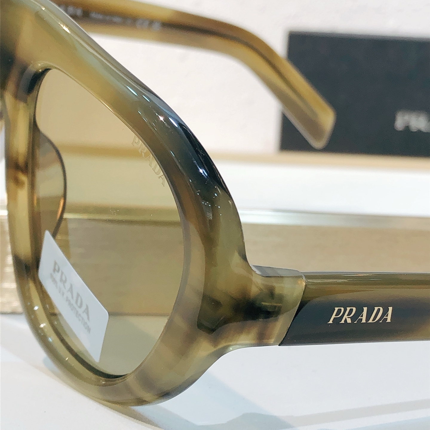 这款太阳眼镜是AAAAA 1:1 质量 (非常棒). 使用了和原版一模一样的材料. 商标部分也保持了和普拉达/Prada一样. 图片拍摄是实物太阳眼镜拍摄, 您所收到的实物保证和我们图片一模一样.