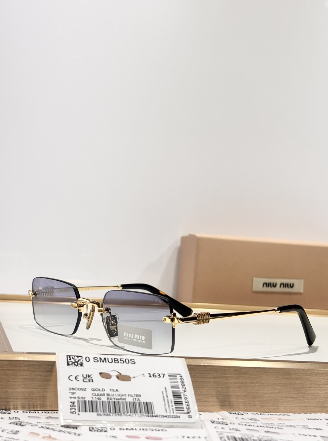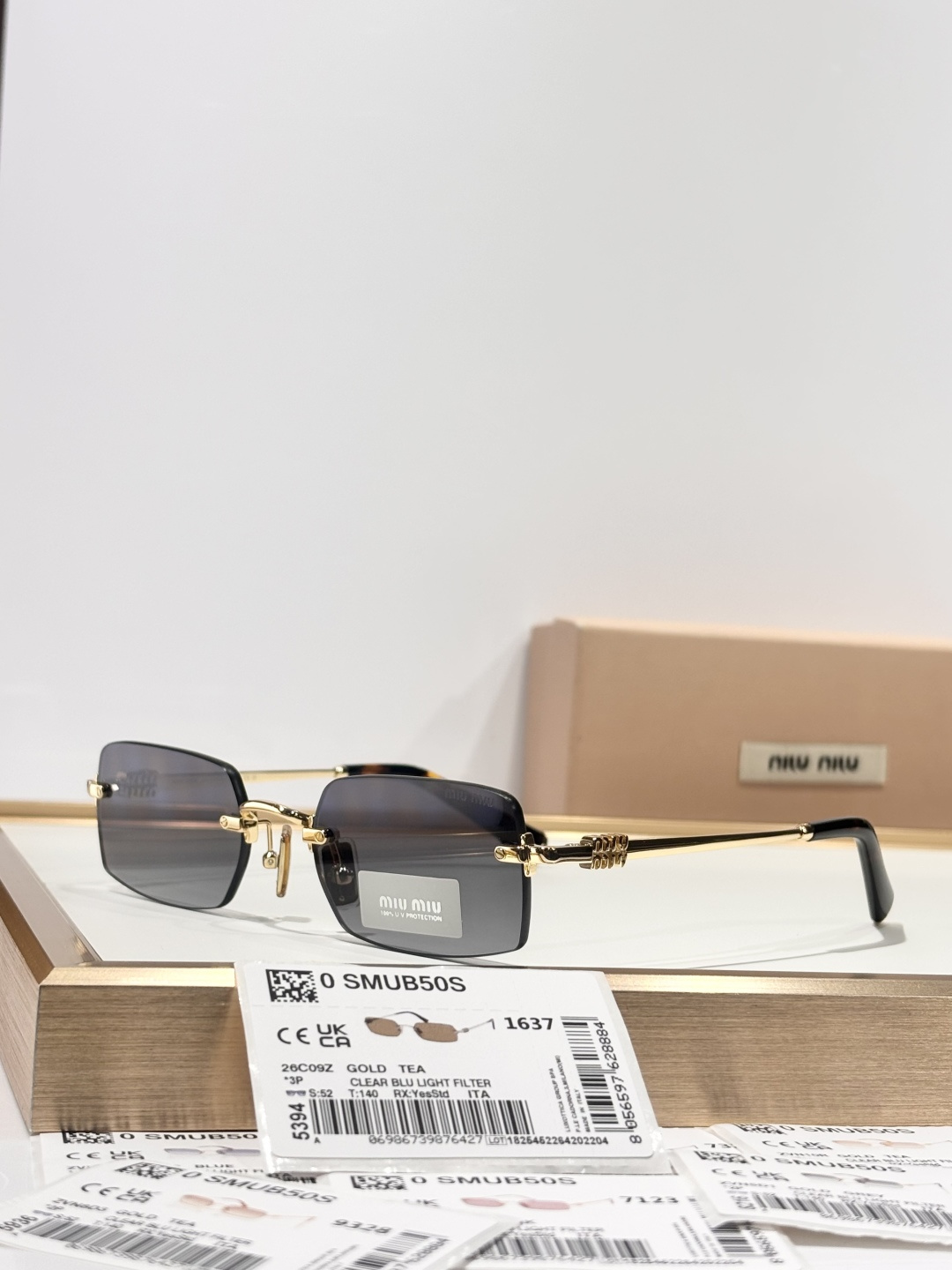 这款太阳眼镜是AAAAA 1:1 质量 (非常棒). 使用了和原版一模一样的材料. 商标部分也保持了和缪缪/Miu Miu一样. 图片拍摄是实物太阳眼镜拍摄, 您所收到的实物保证和我们图片一模一样.