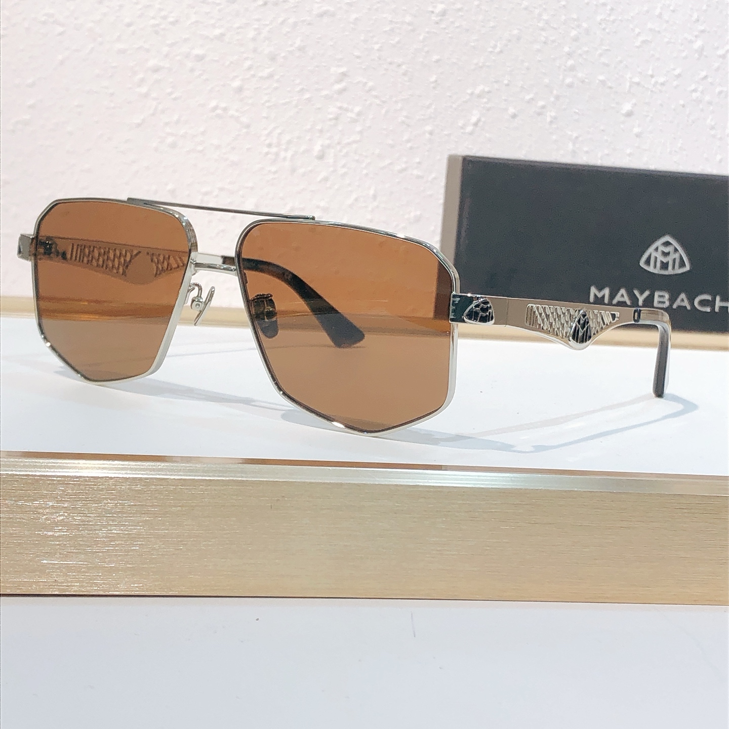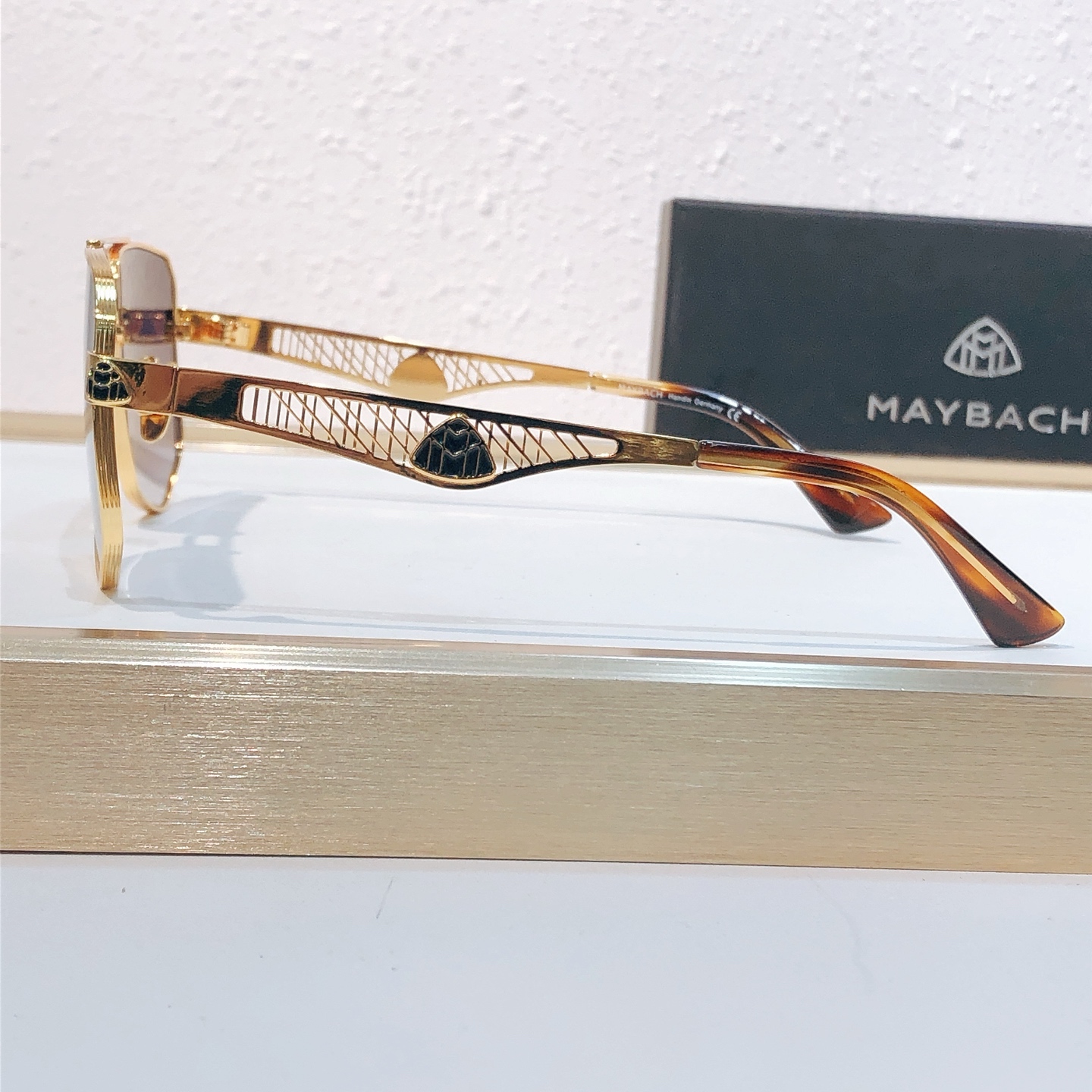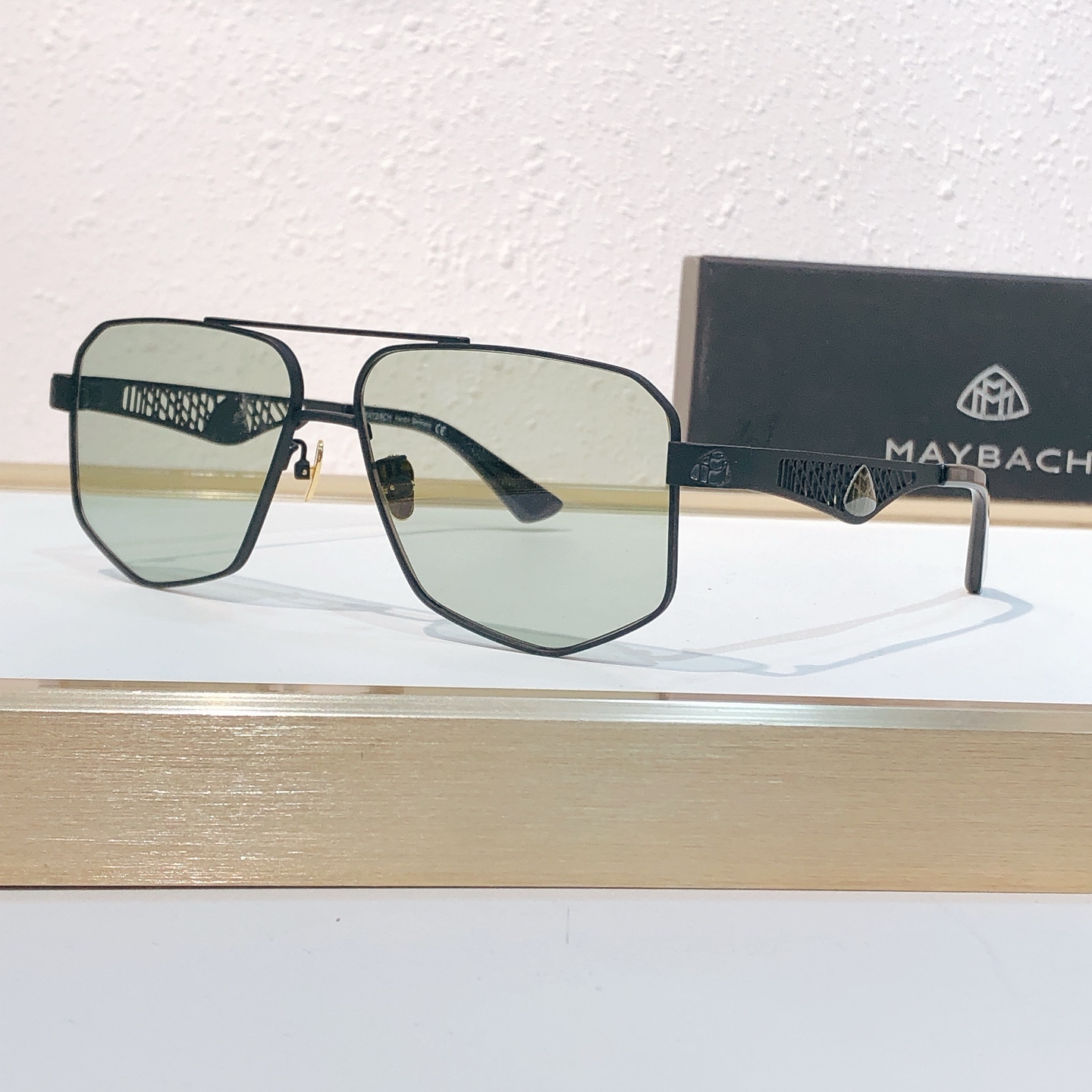 这款太阳眼镜是AAAAA 1:1 质量 (非常棒). 使用了和原版一模一样的材料. 商标部分也保持了和MAYBACH一样. 图片拍摄是实物太阳眼镜拍摄, 您所收到的实物保证和我们图片一模一样.