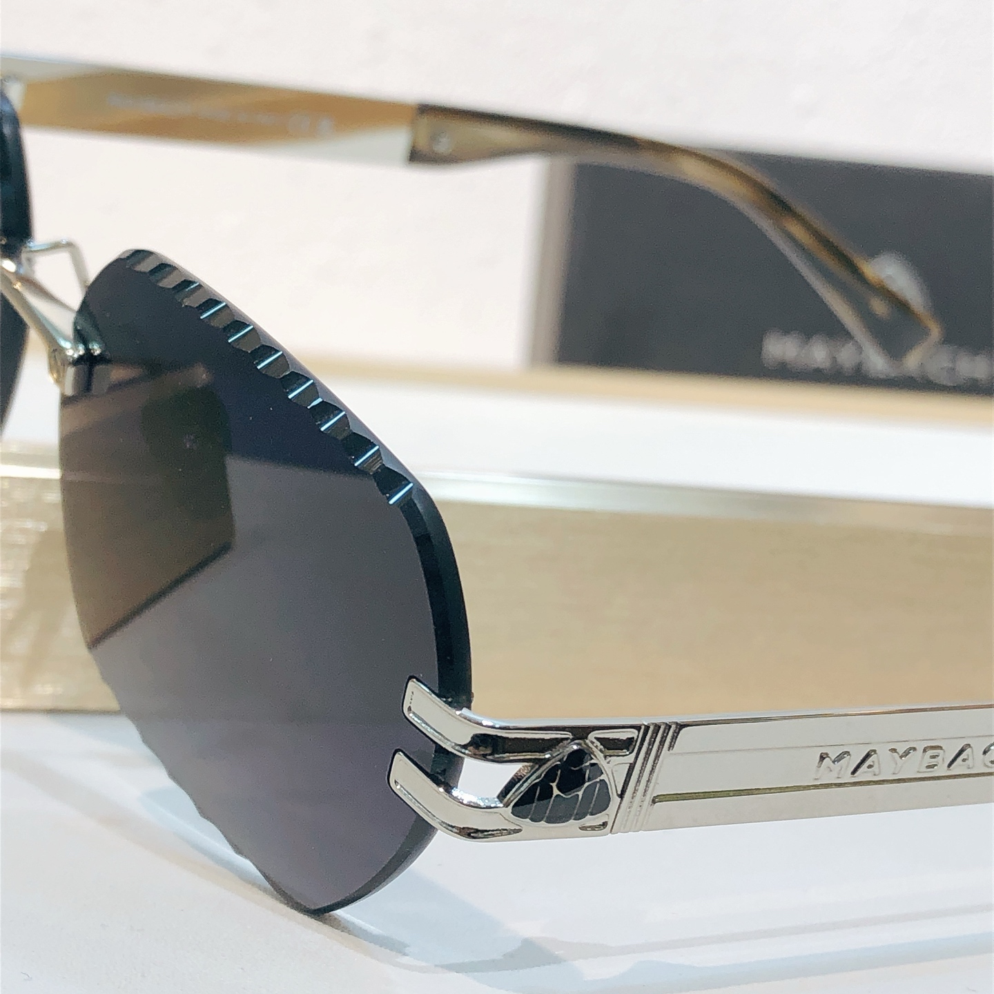 这款太阳眼镜是AAAAA 1:1 质量 (非常棒). 使用了和原版一模一样的材料. 商标部分也保持了和MAYBACH一样. 图片拍摄是实物太阳眼镜拍摄, 您所收到的实物保证和我们图片一模一样.