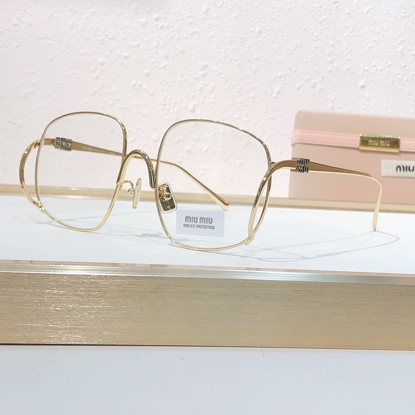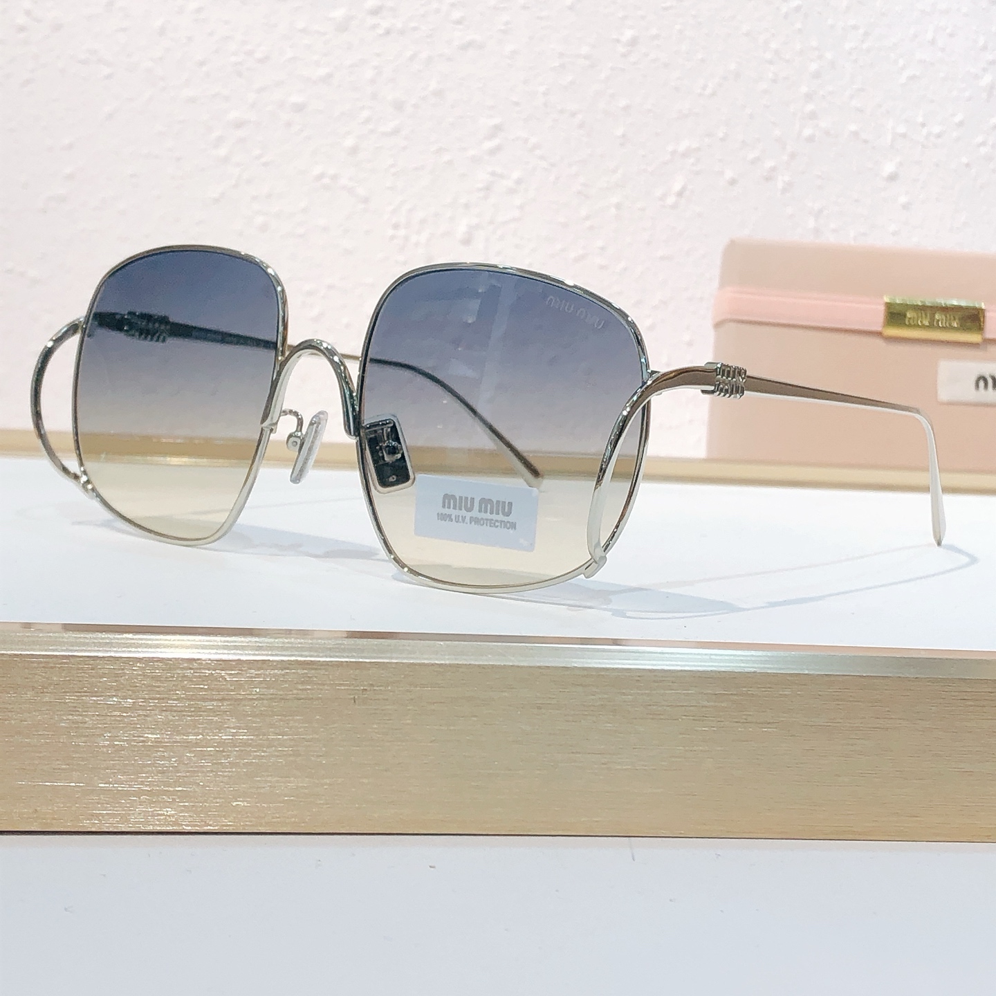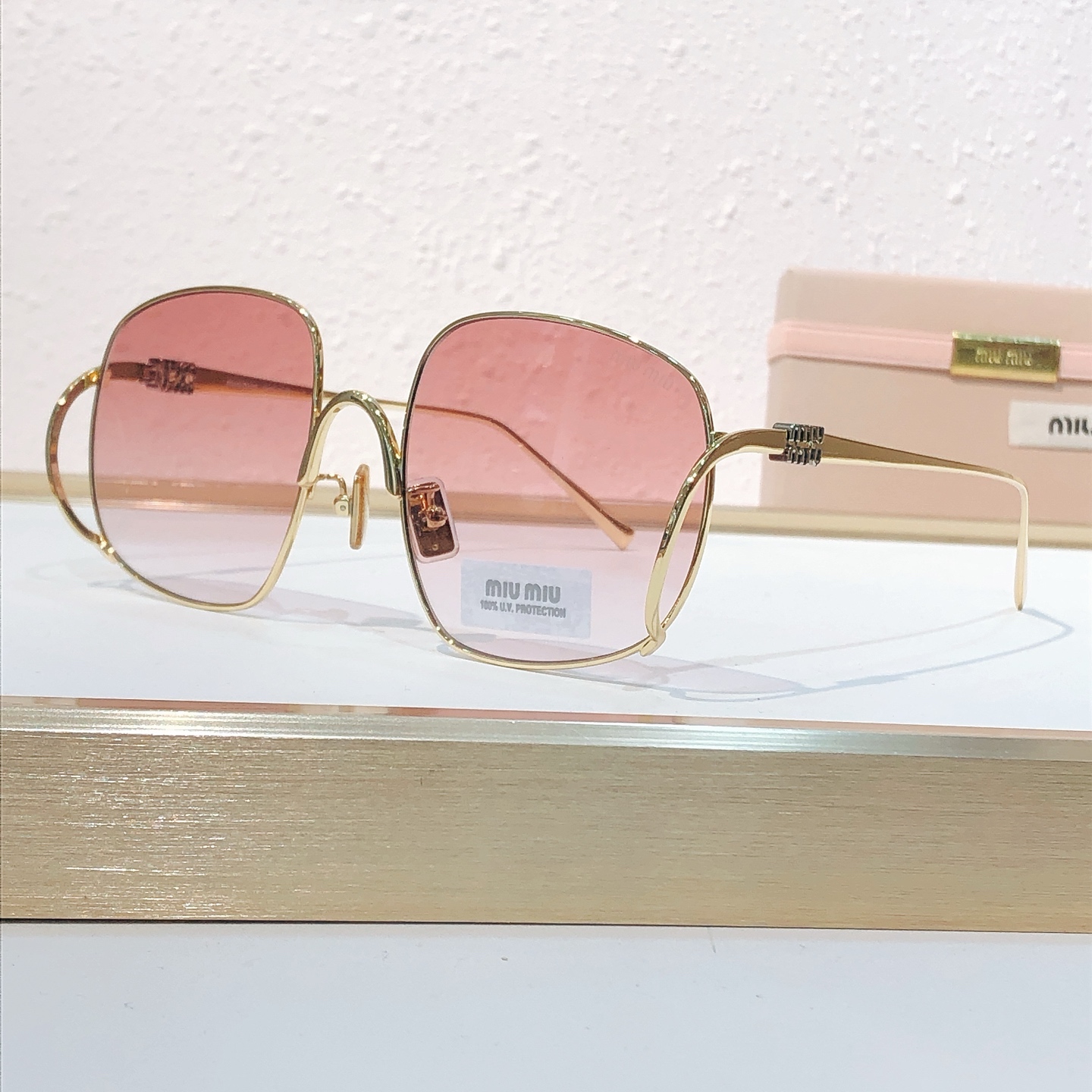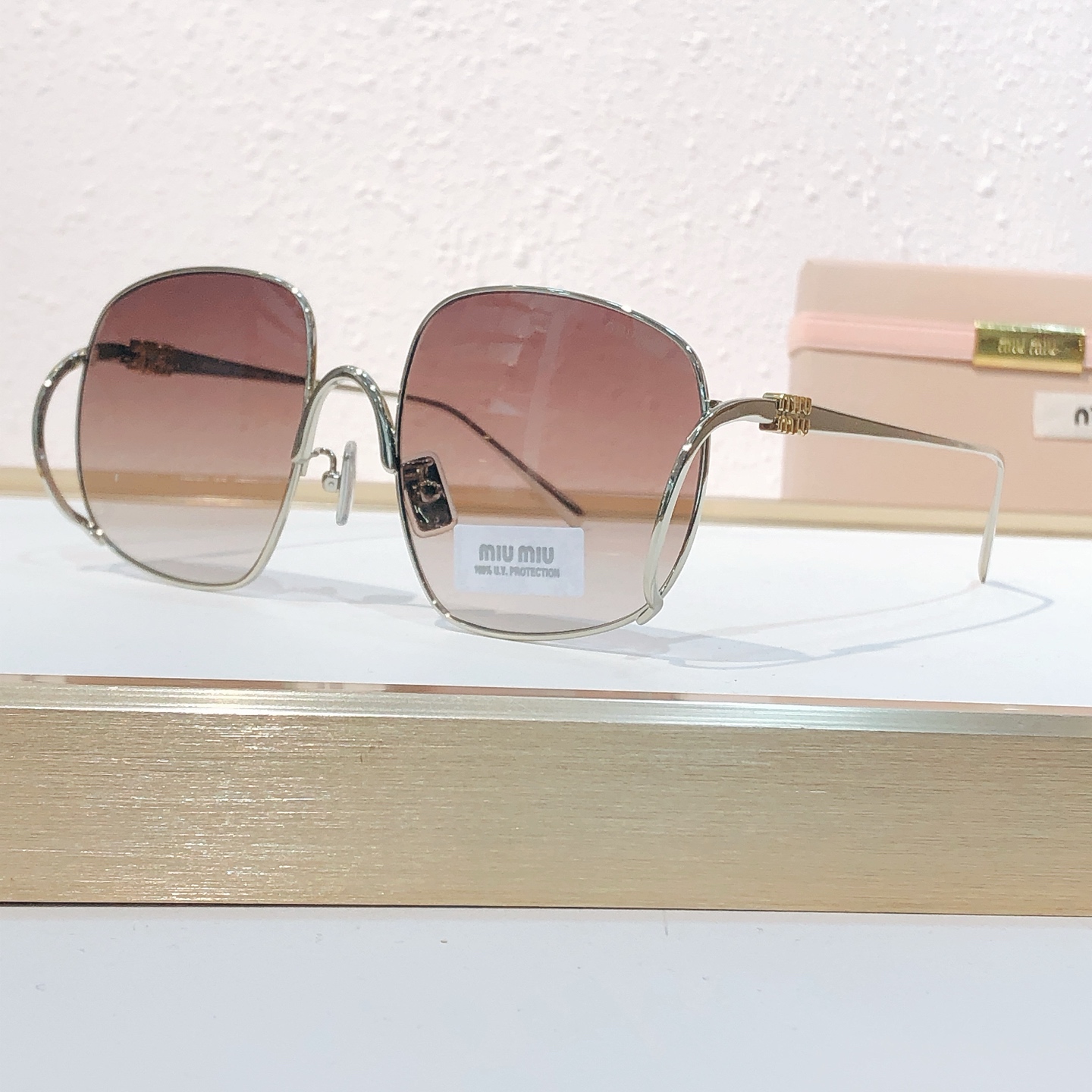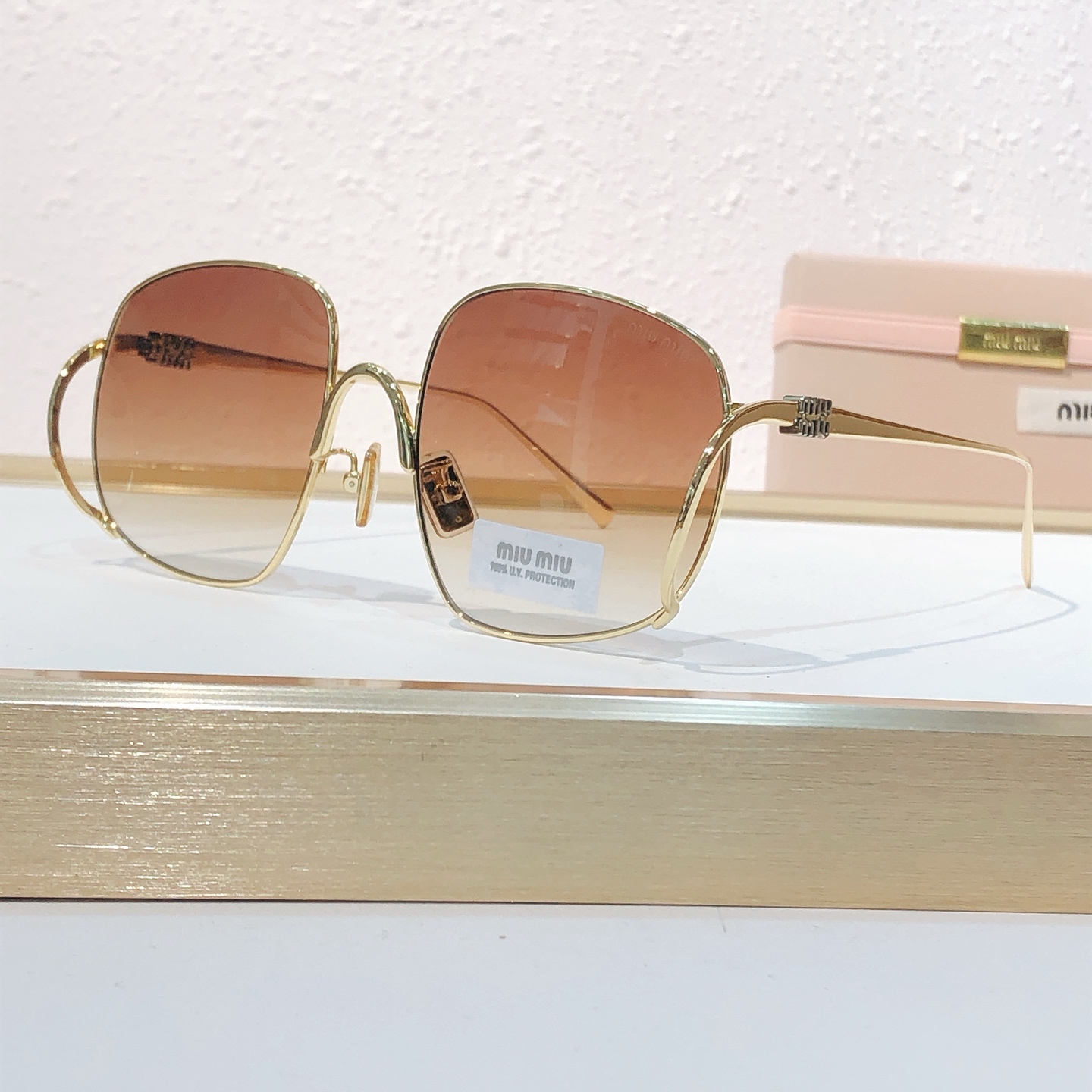这款太阳眼镜是AAAAA 1:1 质量 (非常棒). 使用了和原版一模一样的材料. 商标部分也保持了和缪缪/Miu Miu一样. 图片拍摄是实物太阳眼镜拍摄, 您所收到的实物保证和我们图片一模一样.