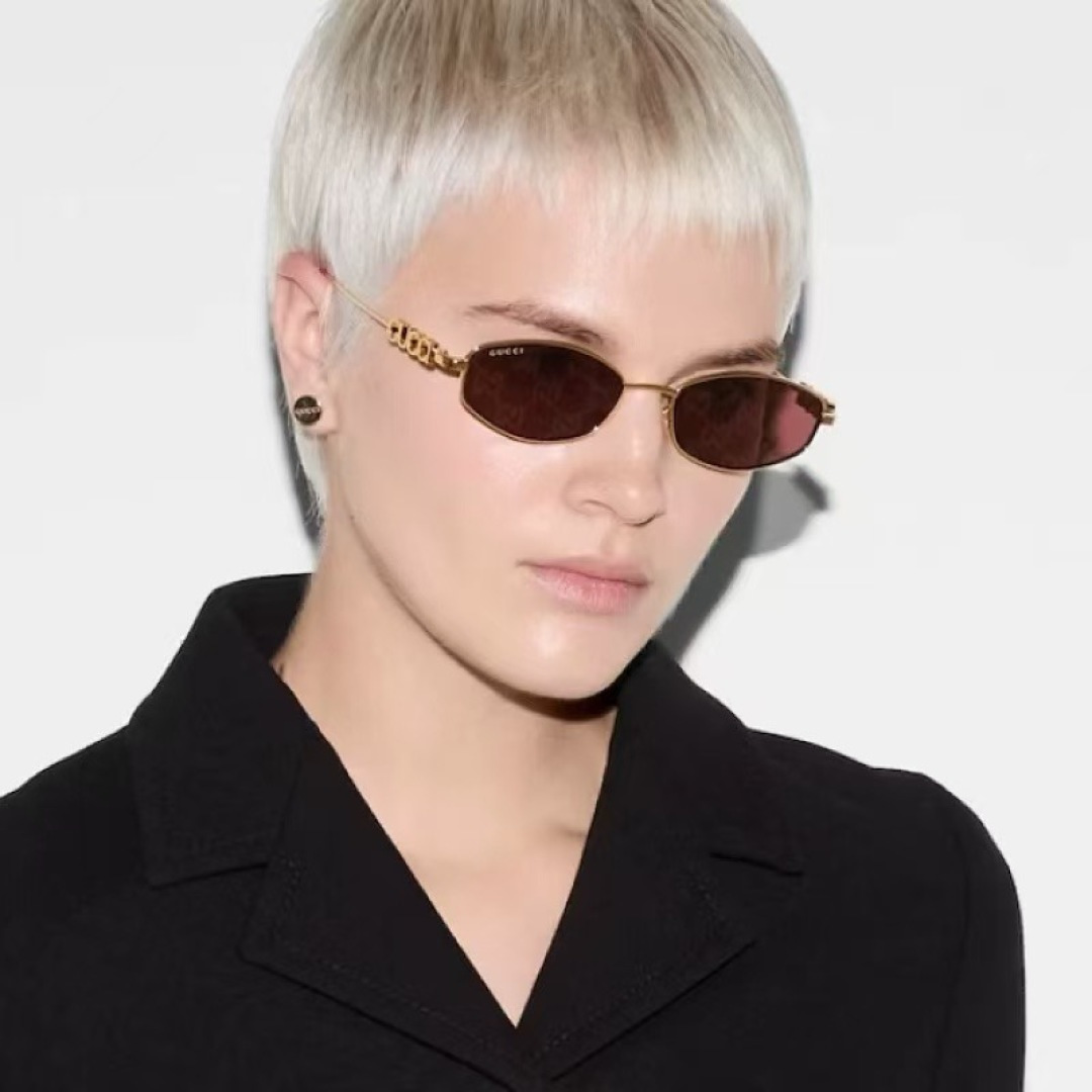 这款太阳眼镜是AAAAA 1:1 质量 (非常棒). 使用了和原版一模一样的材料. 商标部分也保持了和古奇/Gucci一样. 图片拍摄是实物太阳眼镜拍摄, 您所收到的实物保证和我们图片一模一样.