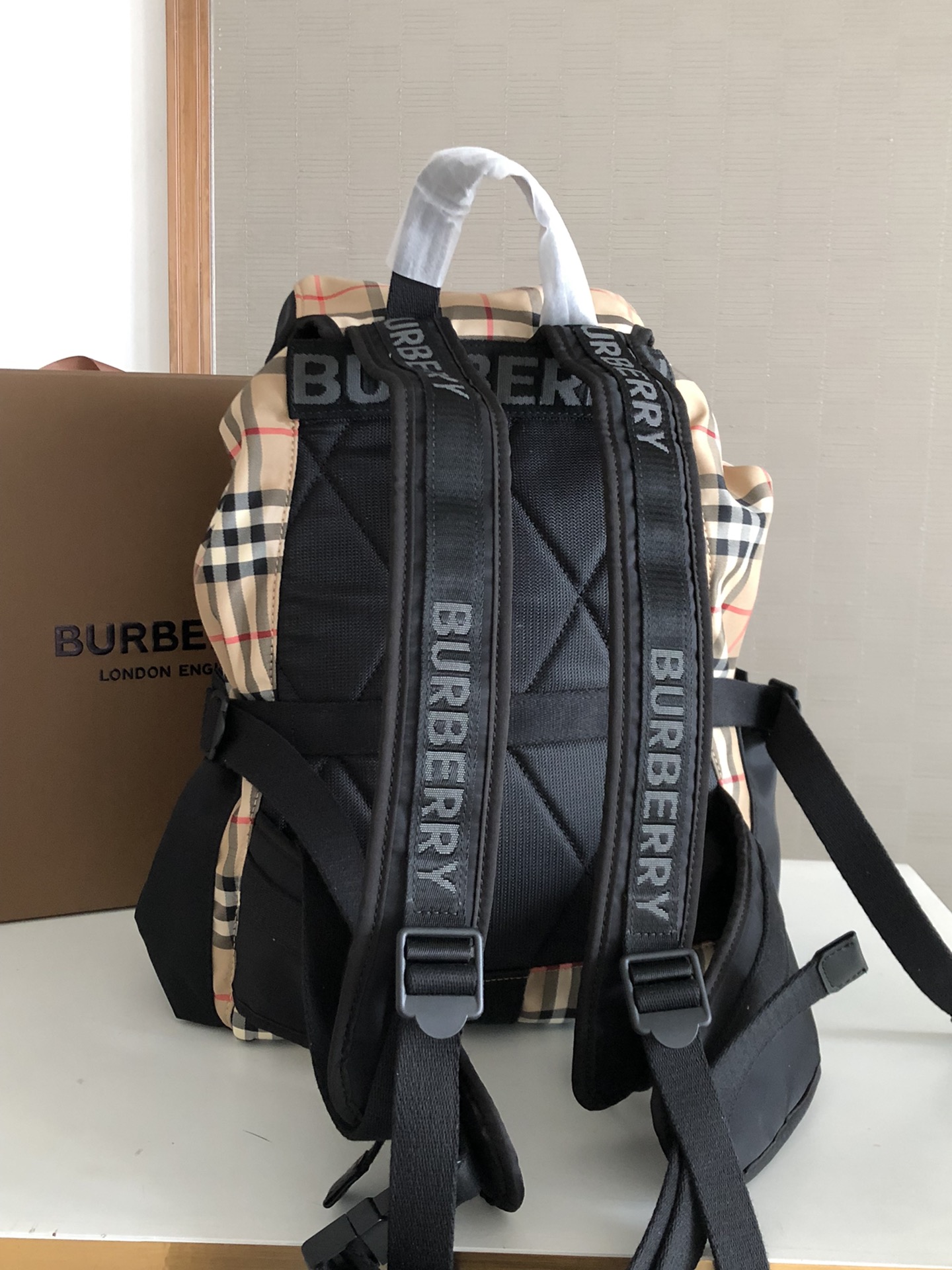 这款背包是AAAAA 1:1 质量 (非常棒). 使用了和原版一模一样的材料. 商标部分也保持了和巴宝莉/Burberry一样. 图片拍摄是实物背包拍摄, 您所收到的实物保证和我们图片一模一样.