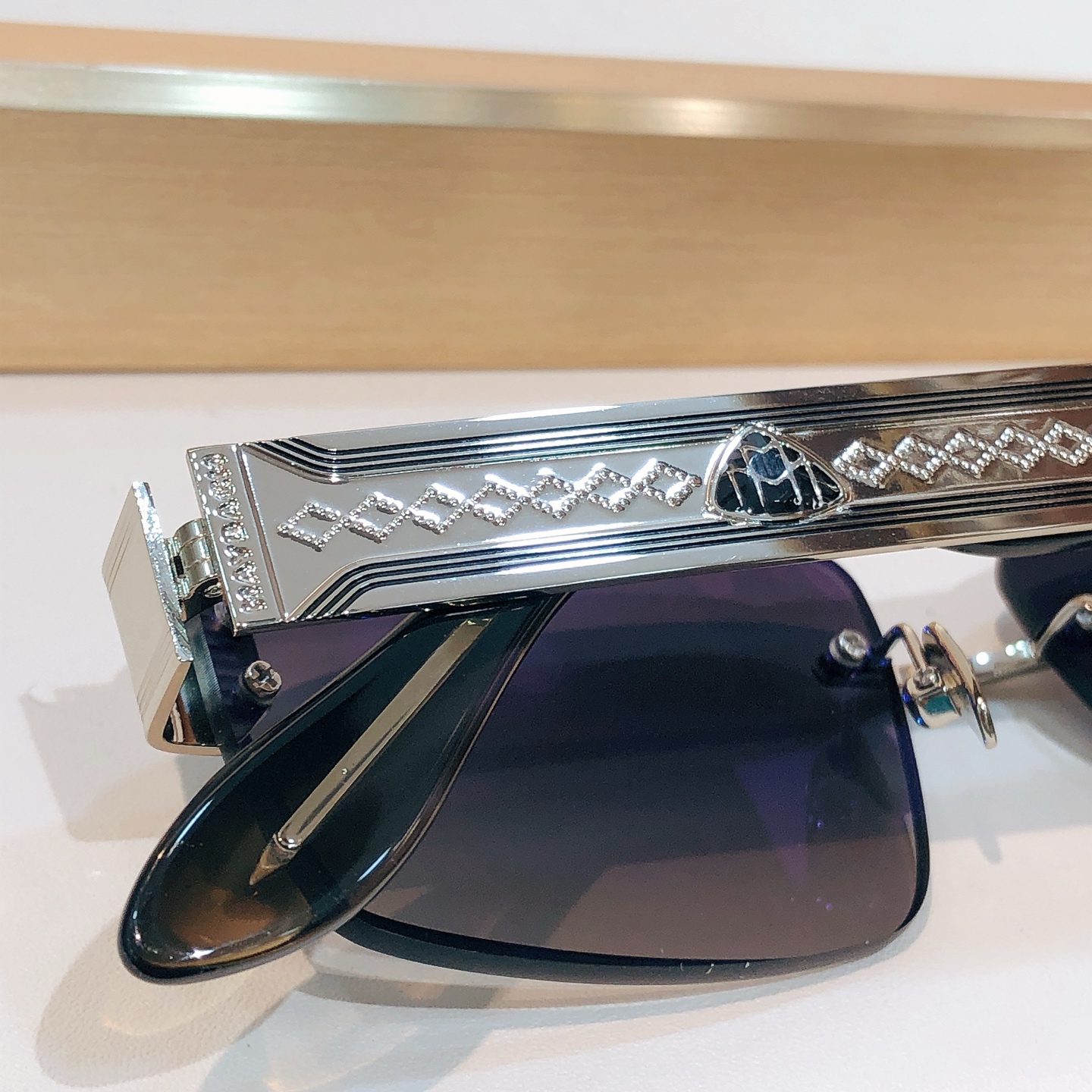 这款太阳眼镜是AAAAA 1:1 质量 (非常棒). 使用了和原版一模一样的材料. 商标部分也保持了和MAYBACH一样. 图片拍摄是实物太阳眼镜拍摄, 您所收到的实物保证和我们图片一模一样.