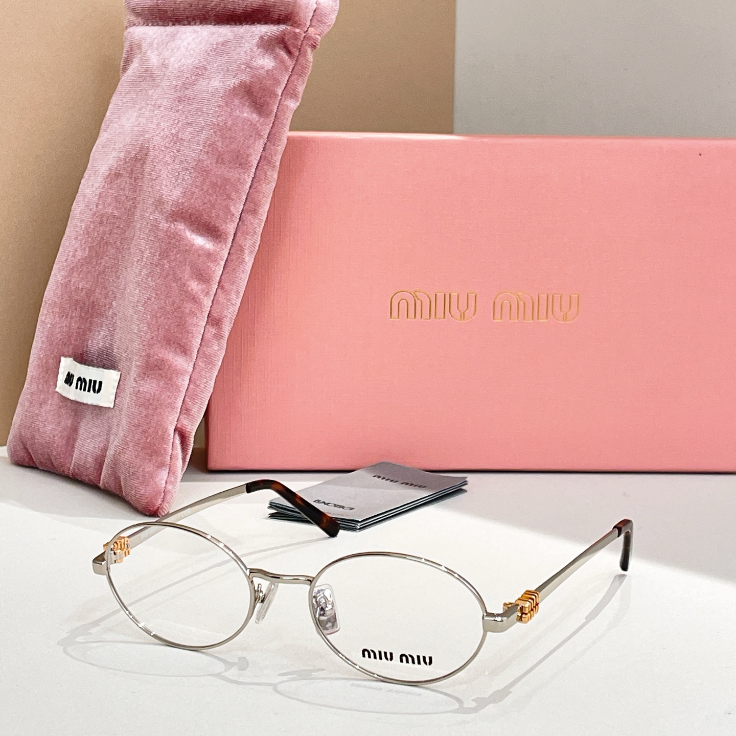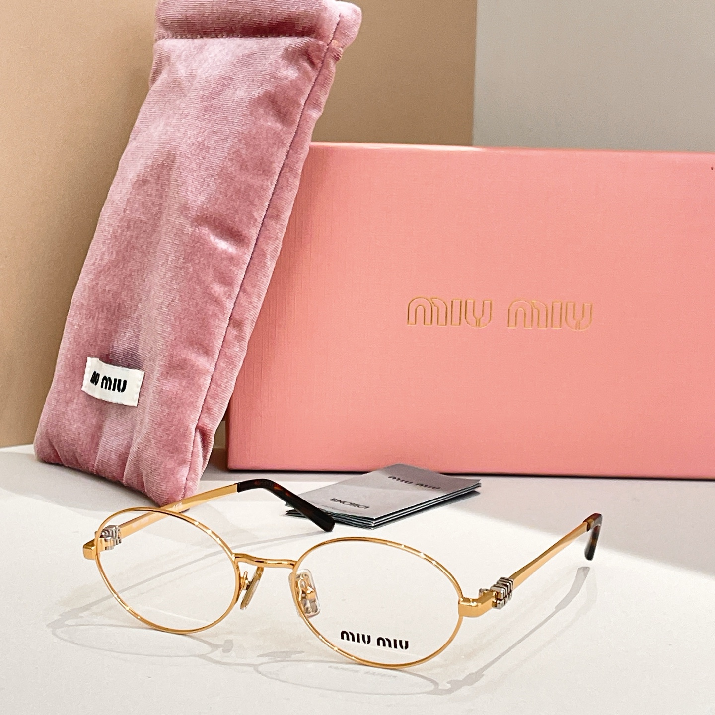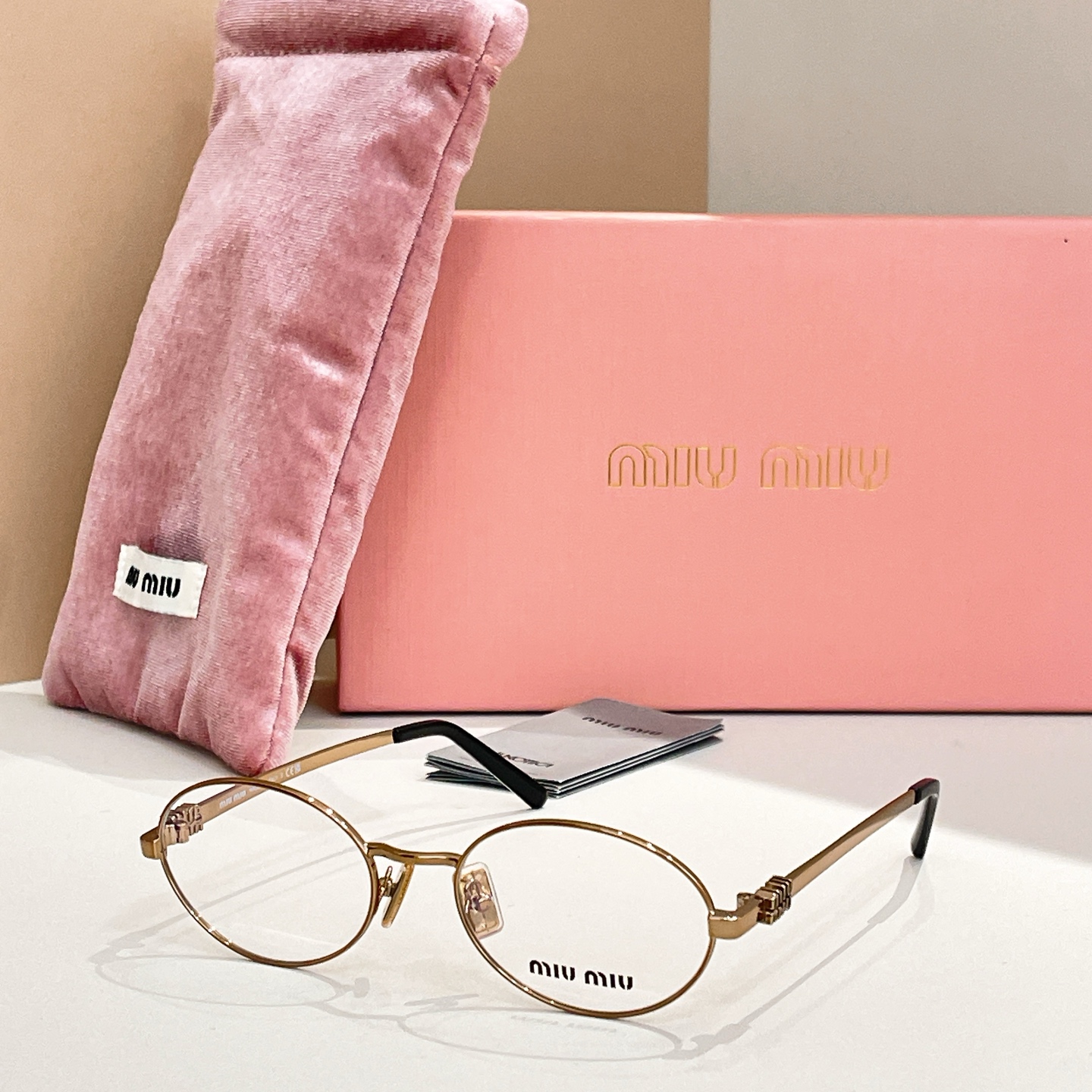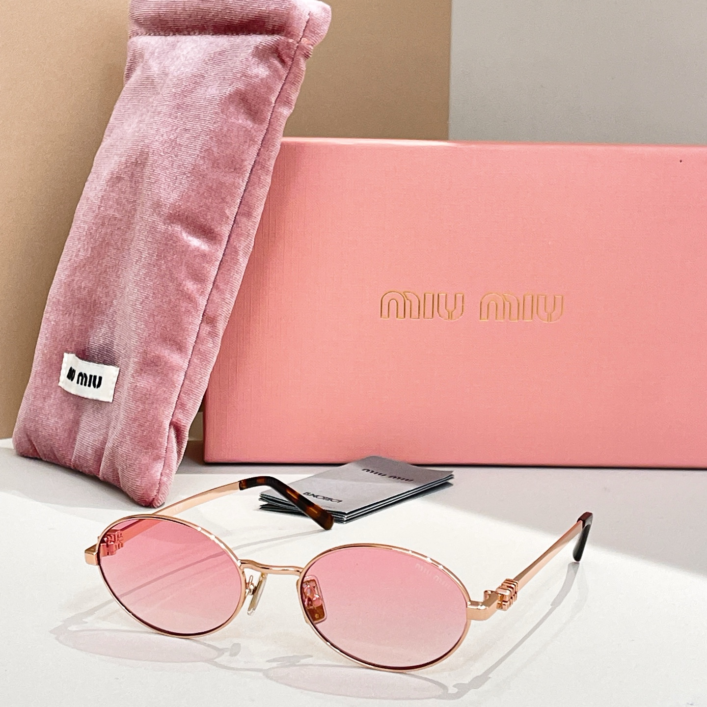 这款太阳眼镜是AAAAA 1:1 质量 (非常棒). 使用了和原版一模一样的材料. 商标部分也保持了和缪缪/Miu Miu一样. 图片拍摄是实物太阳眼镜拍摄, 您所收到的实物保证和我们图片一模一样.