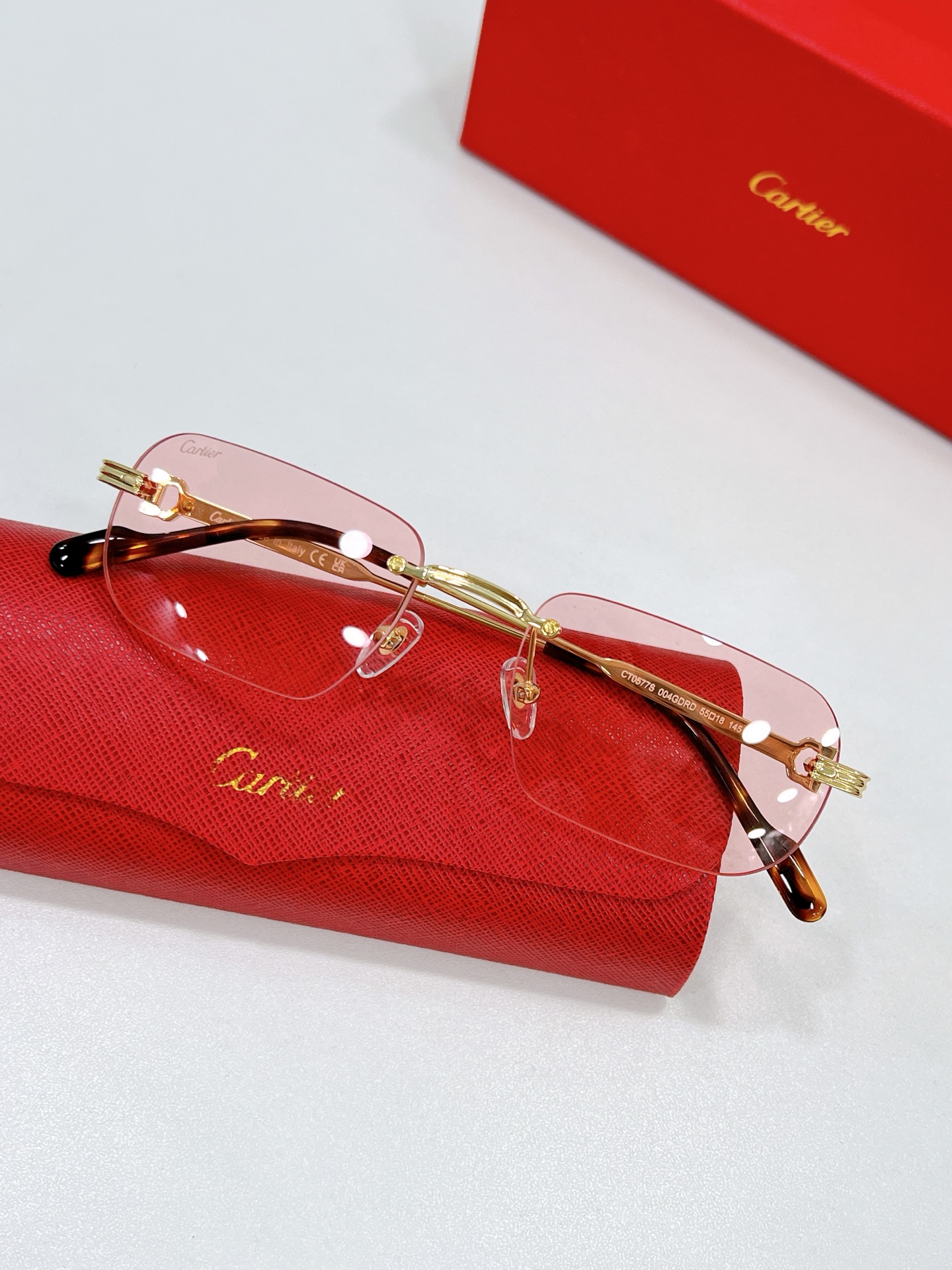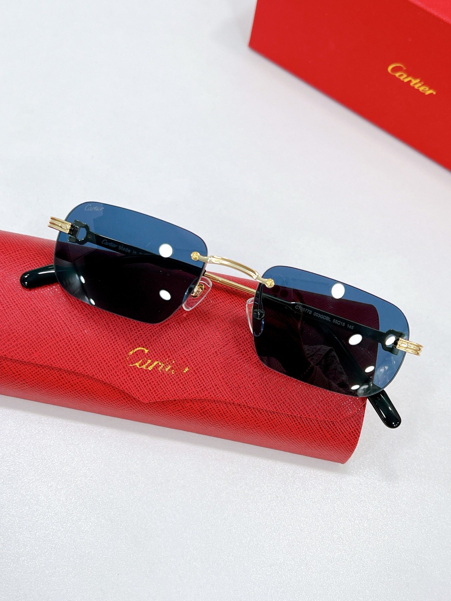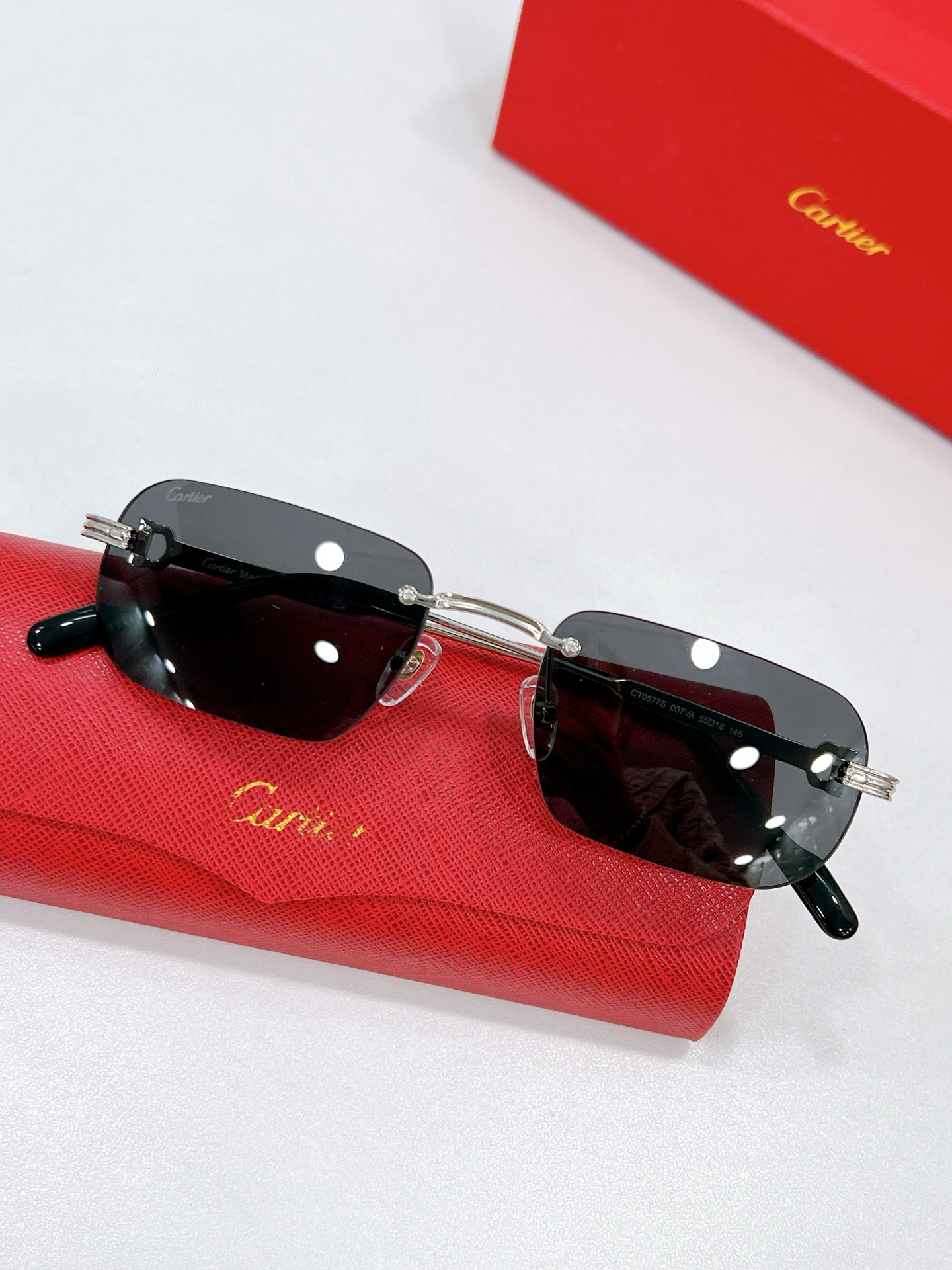 这款太阳眼镜是AAAAA 1:1 质量 (非常棒). 使用了和原版一模一样的材料. 商标部分也保持了和卡地亚/Cartier一样. 图片拍摄是实物太阳眼镜拍摄, 您所收到的实物保证和我们图片一模一样.