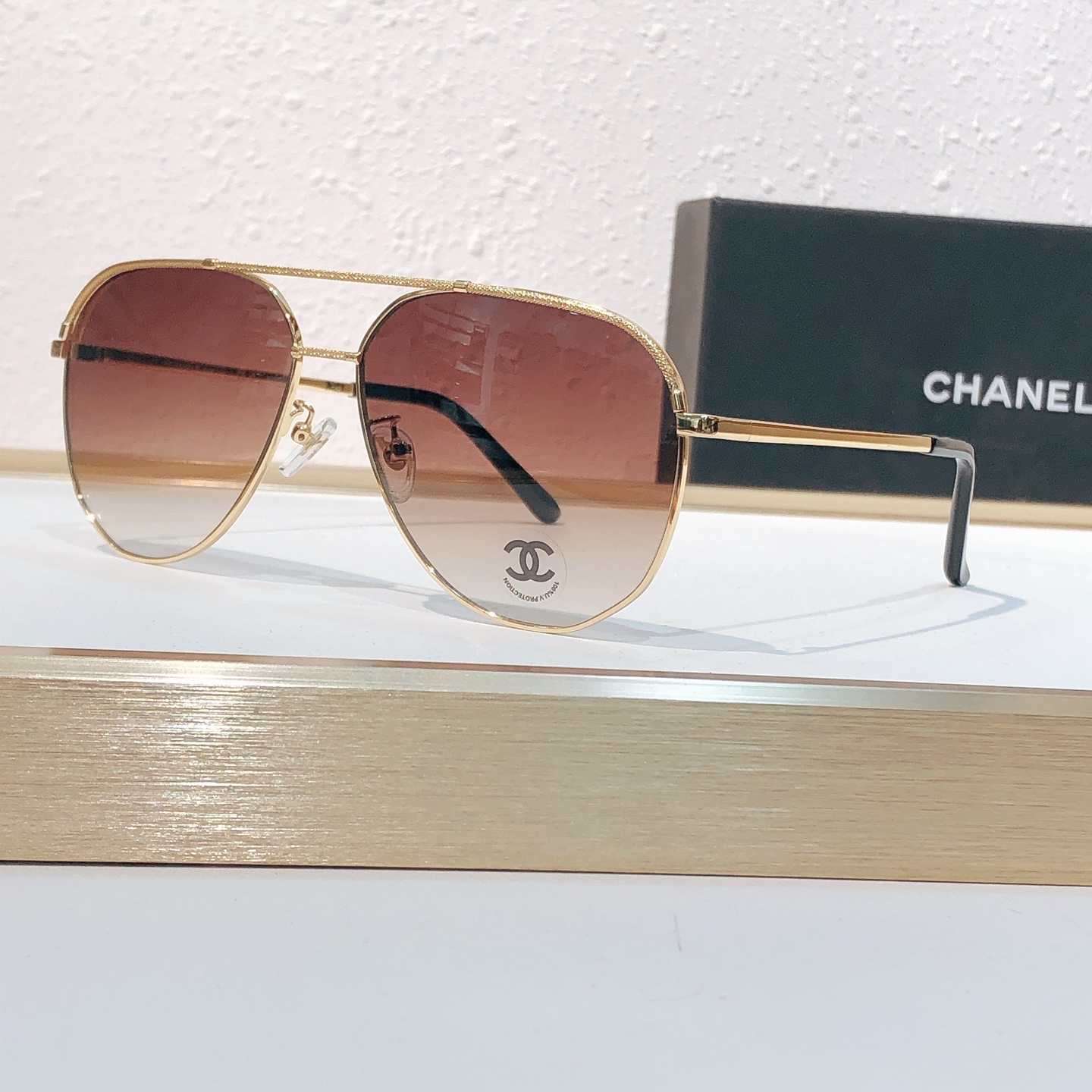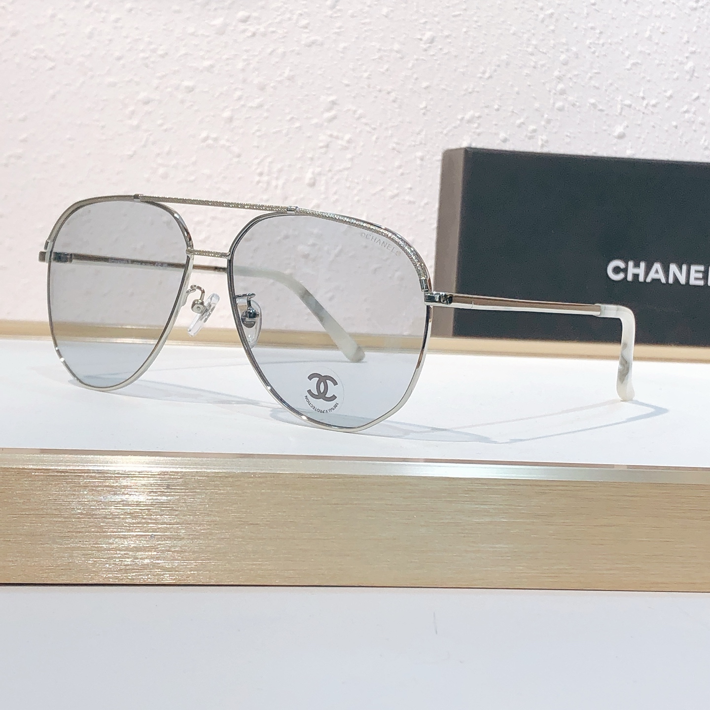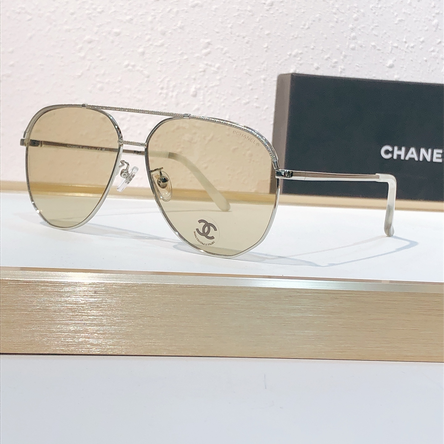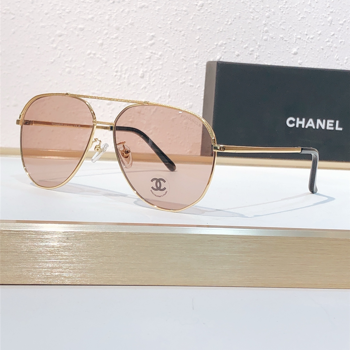 这款太阳眼镜是AAAAA 1:1 质量 (非常棒). 使用了和原版一模一样的材料. 商标部分也保持了和香奈儿/Chanel一样. 图片拍摄是实物太阳眼镜拍摄, 您所收到的实物保证和我们图片一模一样.