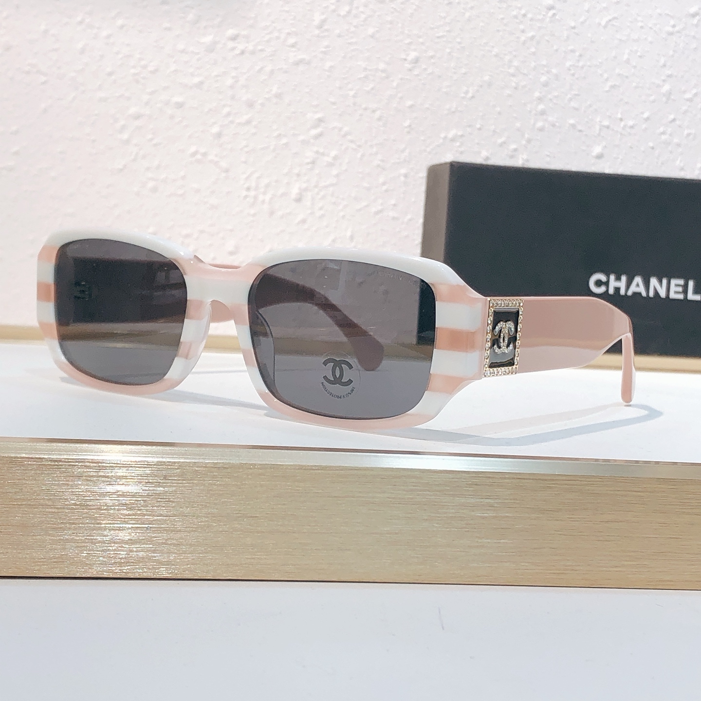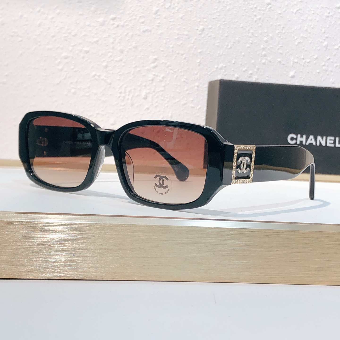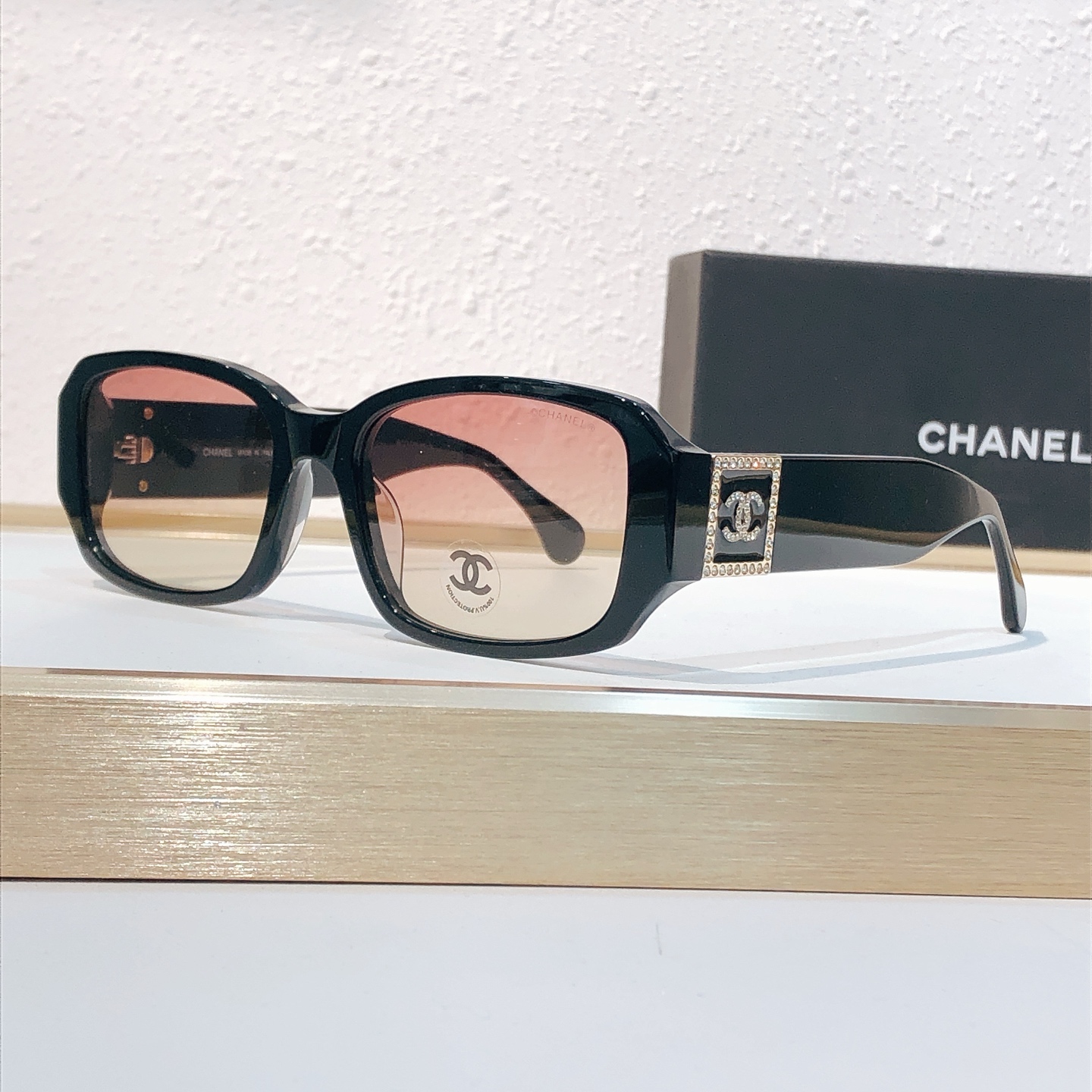 这款太阳眼镜是AAAAA 1:1 质量 (非常棒). 使用了和原版一模一样的材料. 商标部分也保持了和香奈儿/Chanel一样. 图片拍摄是实物太阳眼镜拍摄, 您所收到的实物保证和我们图片一模一样.
